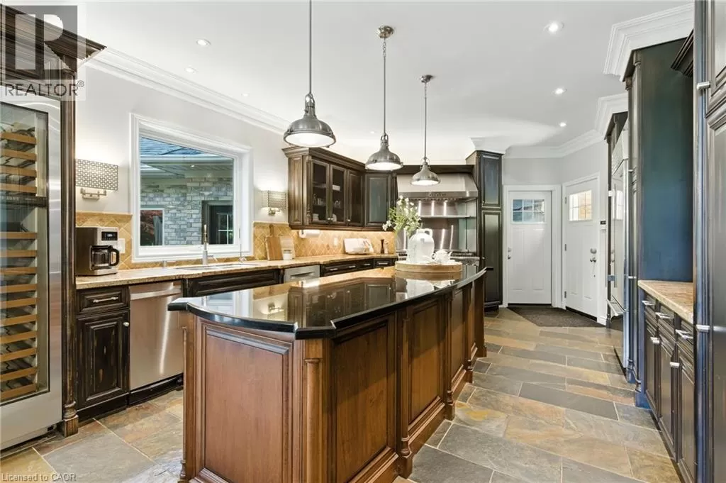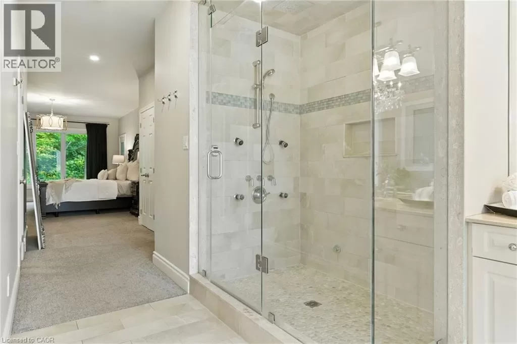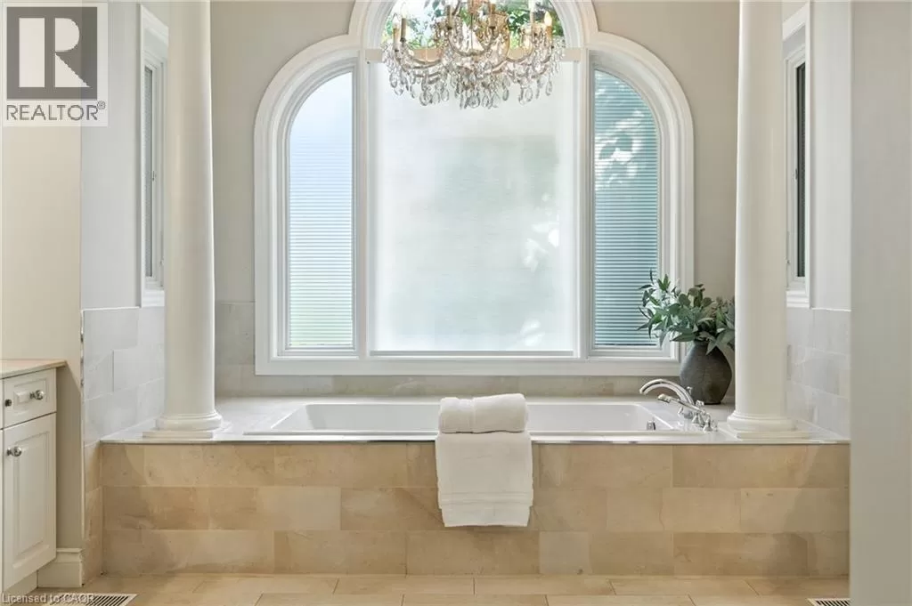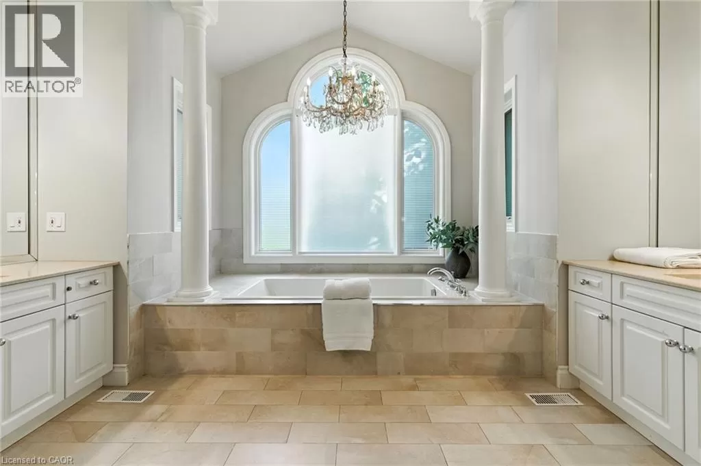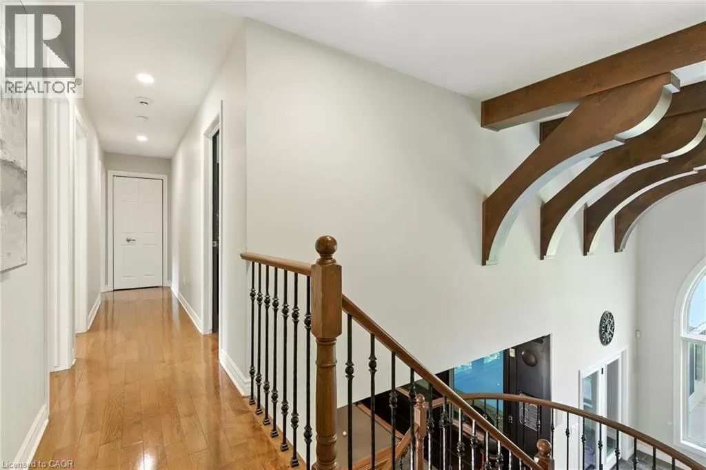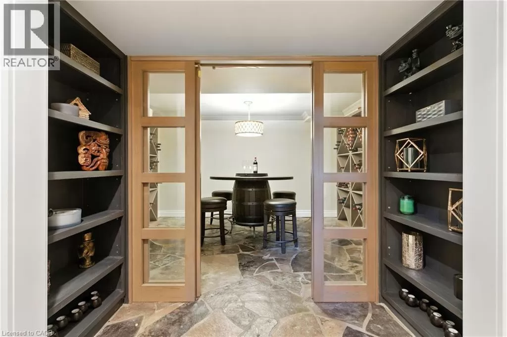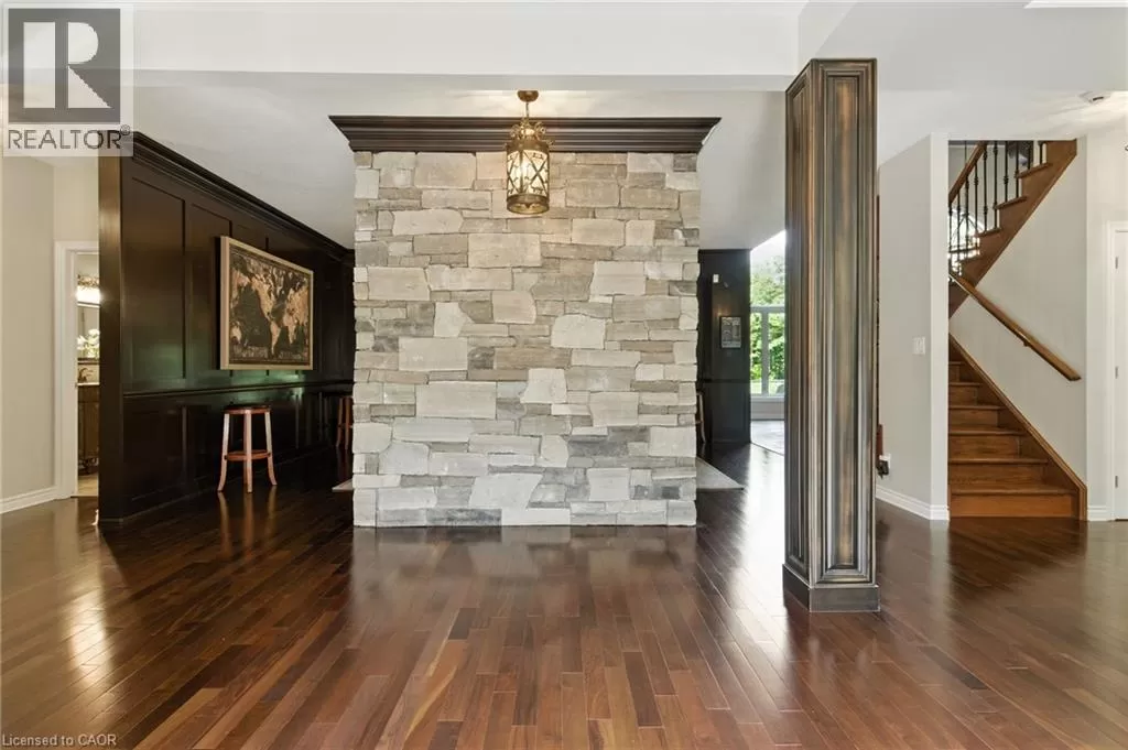 Carlisle Rd and Centre Rd Timeless elegance awaits in the heart of Carlisle. This extraordinary estate blends refined sophistication with European charm, offering a lifestyle defined by comfort, craftsmanship, and distinction. From the moment you enter, you're greeted by soaring ceilings, rich stone accents, and a stunning great room with intricate beamed detailing. The chefâs kitchen exudes traditional warmth, featuring top-of-the-line built-in appliances and thoughtful design for both everyday living and entertaining.At the heart of the home lies a vast Betz indoor pool and spa, framed by expansive windows that invite natural light and showcase serene views. The main floor also includes a tranquil primary suite oasis, designed for ultimate relaxation. Upstairs, four generously sized bedrooms are complemented by three full ensuites and a convenient laundry room, offering space and privacy for family and guests alike. The grand custom staircase leads to a fully finished lower level, complete with a kitchenette, wine tasting room, spacious recreation area, a fabulous gym, a three-piece bath, and an additional bedroom or flexible living space. Set on a breathtaking two-acre property surrounded by mature trees, this home offers a private composite deck perfect for enjoying morning coffee or evening cocktails in peaceful seclusion. A heated four-car garage adds practicality and luxury to the package. This is more than a homeâitâs a true cottage alternative, combining rural tranquillity with refined living. Letâs get you home! (id:27476)