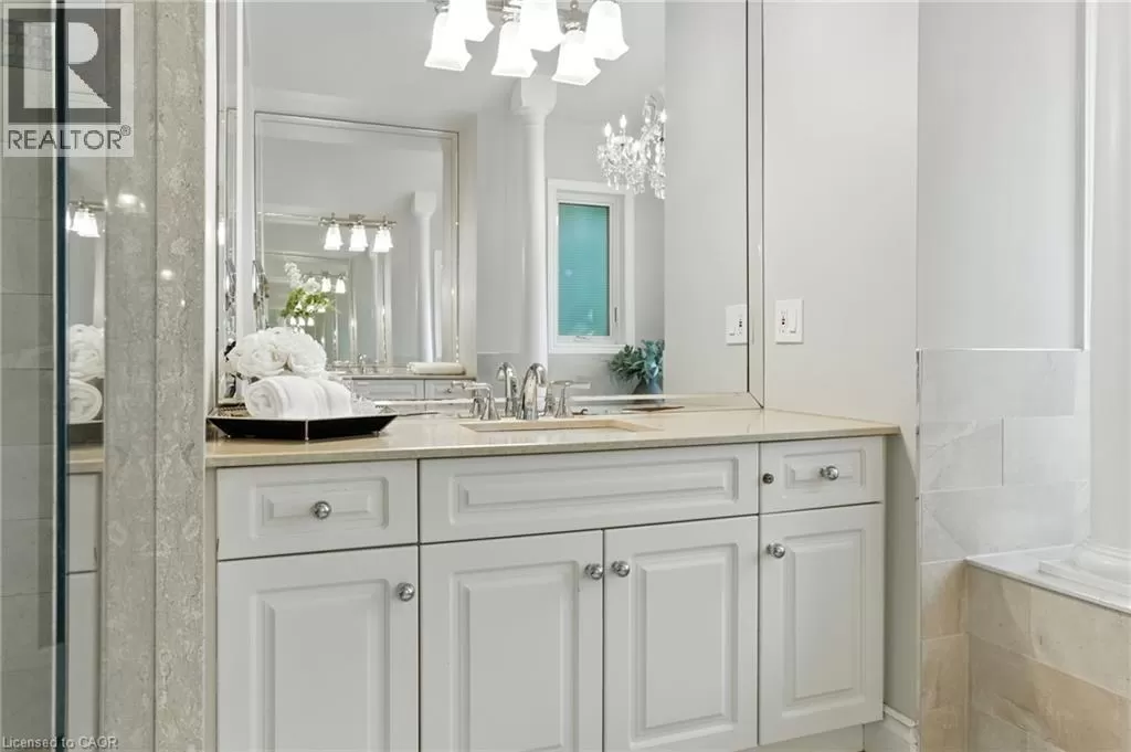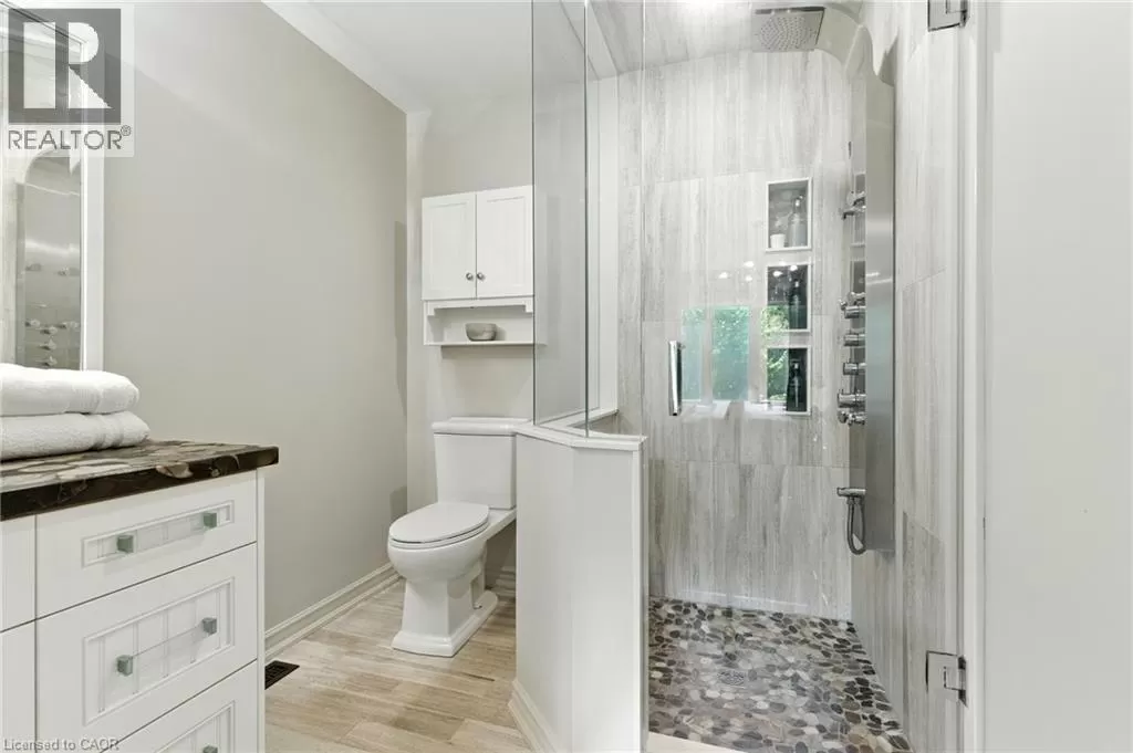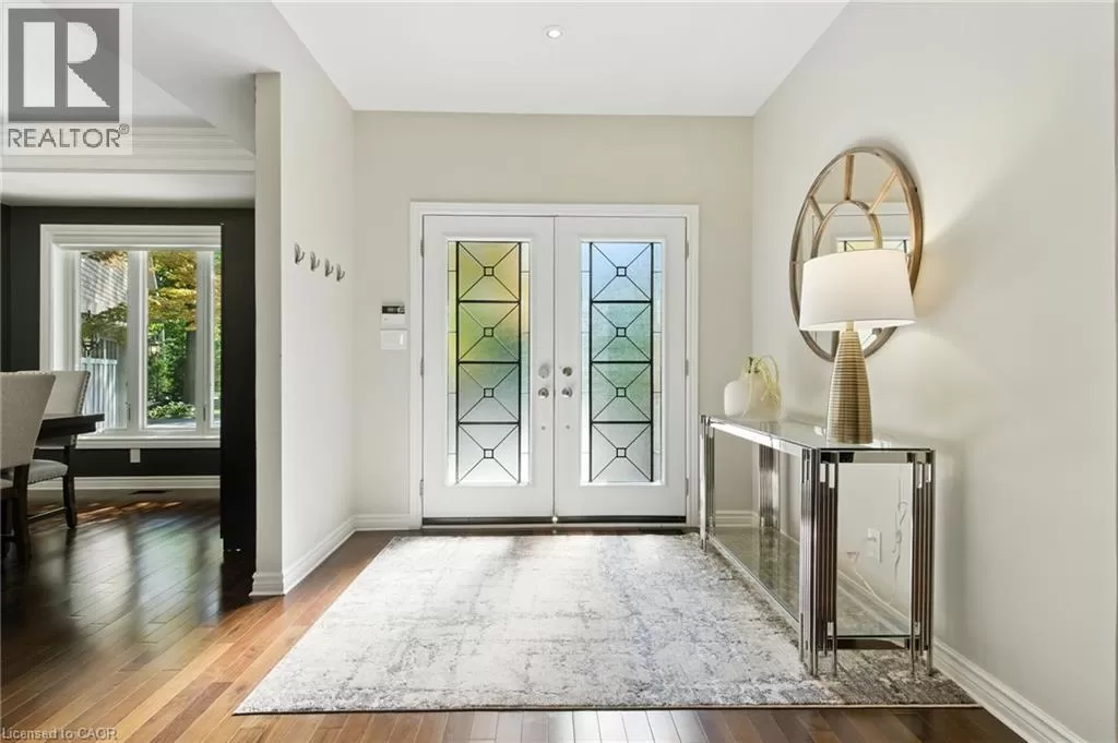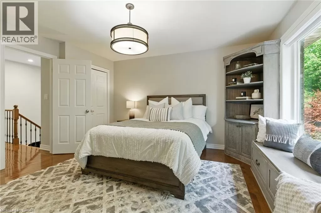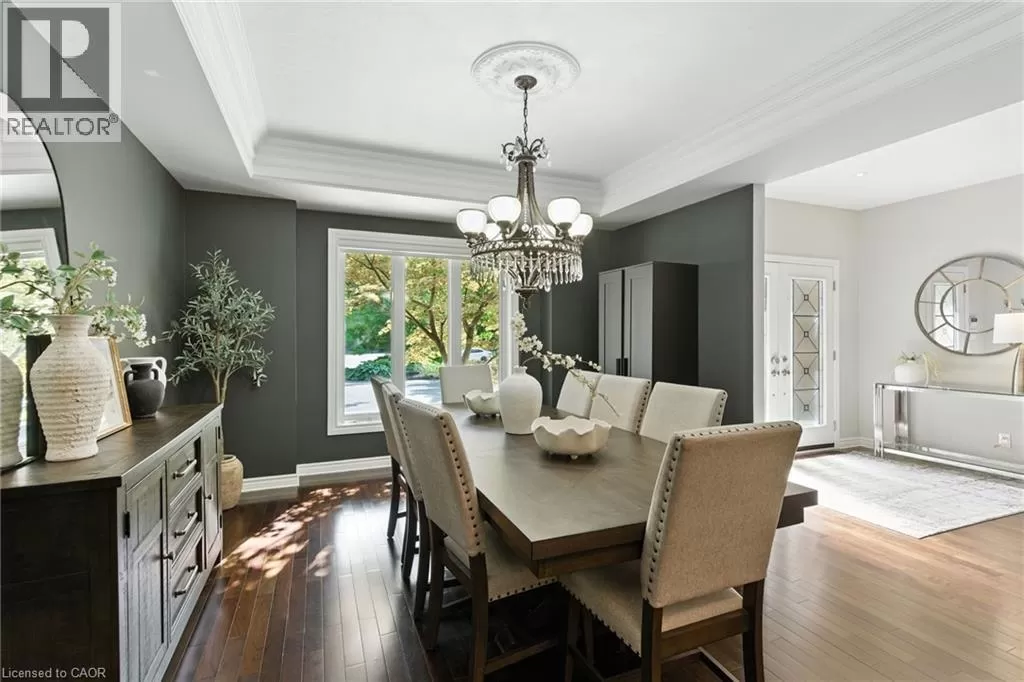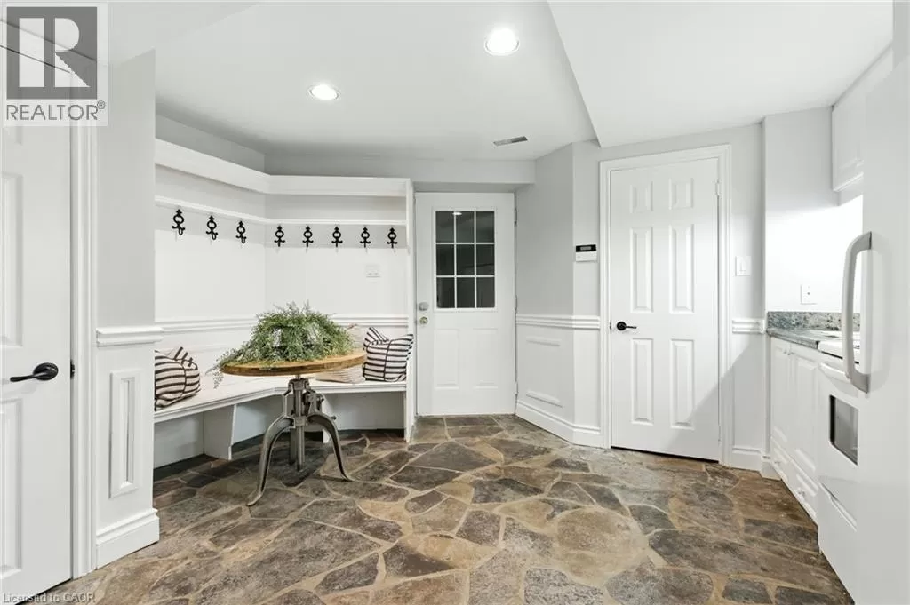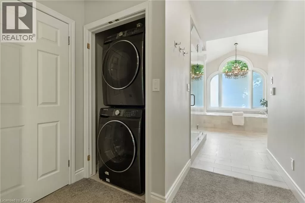 Carlisle Rd and Centre Rd Timeless elegance awaits in the heart of Carlisle. This extraordinary estate blends refined sophistication with European charm, offering a lifestyle defined by comfort, craftsmanship, and distinction. From the moment you enter, you're greeted by soaring ceilings, rich stone accents, and a stunning great room with intricate beamed detailing. The chefâs kitchen exudes traditional warmth, featuring top-of-the-line built-in appliances and thoughtful design for both everyday living and entertaining.At the heart of the home lies a vast Betz indoor pool and spa, framed by expansive windows that invite natural light and showcase serene views. The main floor also includes a tranquil primary suite oasis, designed for ultimate relaxation. Upstairs, four generously sized bedrooms are complemented by three full ensuites and a convenient laundry room, offering space and privacy for family and guests alike. The grand custom staircase leads to a fully finished lower level, complete with a kitchenette, wine tasting room, spacious recreation area, a fabulous gym, a three-piece bath, and an additional bedroom or flexible living space. Set on a breathtaking two-acre property surrounded by mature trees, this home offers a private composite deck perfect for enjoying morning coffee or evening cocktails in peaceful seclusion. A heated four-car garage adds practicality and luxury to the package. This is more than a homeâitâs a true cottage alternative, combining rural tranquillity with refined living. Letâs get you home! (id:27476)