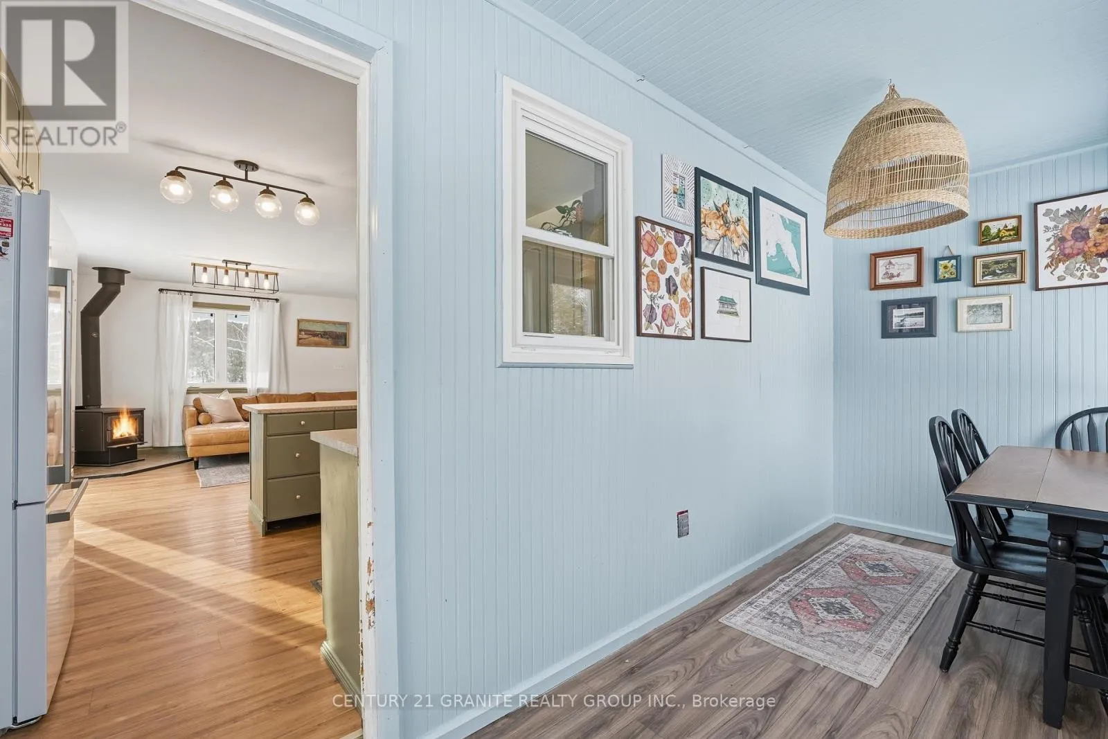 Cross Streets: Boulter Rd. ** Directions: From Bancroft take Hwy 28 East to Boulter Rd, follow to the community of Boulter, turn left onto Kuno Rd. See signs. This lovingly cared for 2-bedroom home was solidly constructed in 2008 with an ICF foundation, R-40 attic insulation, and a dry crawl space. Step inside to a warm, welcoming interior that has been thoughtfully updated since 2022. A cozy WETT certified wood stove anchors the living space, complemented by an efficient electric forced-air furnace for effortless year-round comfort. Living here is easy with the all main floor design and extremely affordable monthly costs. At the back of the home, a sun-filled sunroom invites slow mornings overlooking farm fields. While the front covered, screened porch is the perfect spot to sip coffee and enjoy the sounds of a summer rainstorm. Out back, open farm field views stretch beyond the fence line, offering ever-changing scenery in every season. A wired, drywalled bunkie with new flooring sits perched above with panoramic views of the Boulter Hills-ideal for guests, a studio, or a peaceful retreat, you will not believe the views here! The expansive concrete block workshop allows your hobbies and room for all the extra stuff! Charming chicken coop, landscaped Pinterest worthy firepit, newly built woodshed and thoughtfully kept grounds complete the picture of relaxation. With a scenic drive home and a setting that feels a world away from the hustle and bustle. You will not have to give up the modern lifestyle with high speed internet, Generlink, a year round township maintained road and the community of Boulter only a short drive away. Picture your spring or summer here, book your showing today! (id:27476)