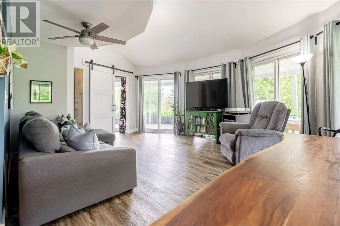 Your Private Lakefront Paradise Awaits on Geneva Lake. Welcome to a retreat like no other! Nestled on over 1.5 acres of private paradise with an astounding 696 feet of shoreline, this custom-built masterpiece delivers the ultimate lakefront lifestyle. Backing onto endless hectares of untouched Crown land, itâs a haven for nature lovers, outdoor enthusiasts, and anyone craving true peace and privacy. Arrive with ease on the paved year-round road and step into a world where every detail is designed for unforgettable moments. A brand-new composite staircase invites you down to the sparkling waters of Geneva Lake, perfect for lazy afternoons on the dock, refreshing swims, or evenings under the stars. Inside, youâre welcomed by soaring light-filled spaces and panoramic nature views from nearly every room. The dramatic half-circle wall of patio doors opens the home to the lake, while the west-facing covered deck provides the perfect front-row seat to golden sunsets. The updated kitchen, luxurious master suite with walk-in closet, and a show-stopping tower room with 360-degree views make this home truly one of a kind. With countless upgradesânew windows, shingles, septic, bathroom, water treatment system, and a high-efficiency heat pump with propane furnaceâthis is a turnkey escape built for year-round comfort. Best of all? Located in an unorganized township, youâll enjoy the freedom of waterfront living without the typical high taxes. This is more than a home, itâs your own slice of heaven on Geneva Lake. (id:27476)
