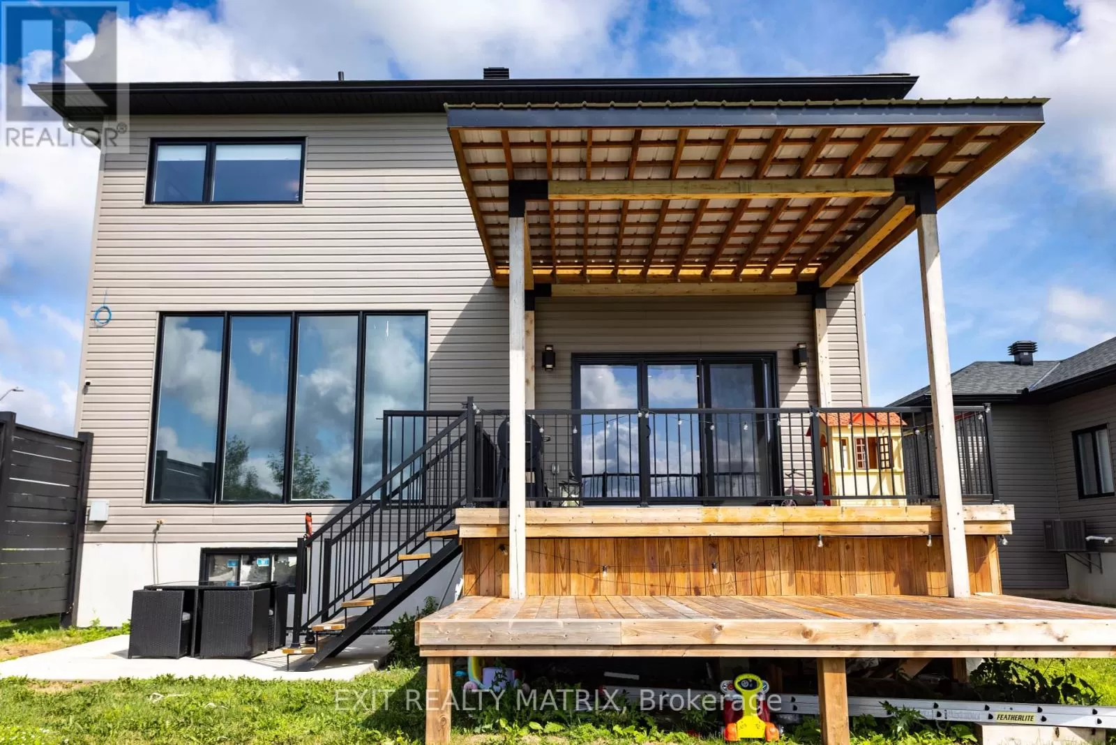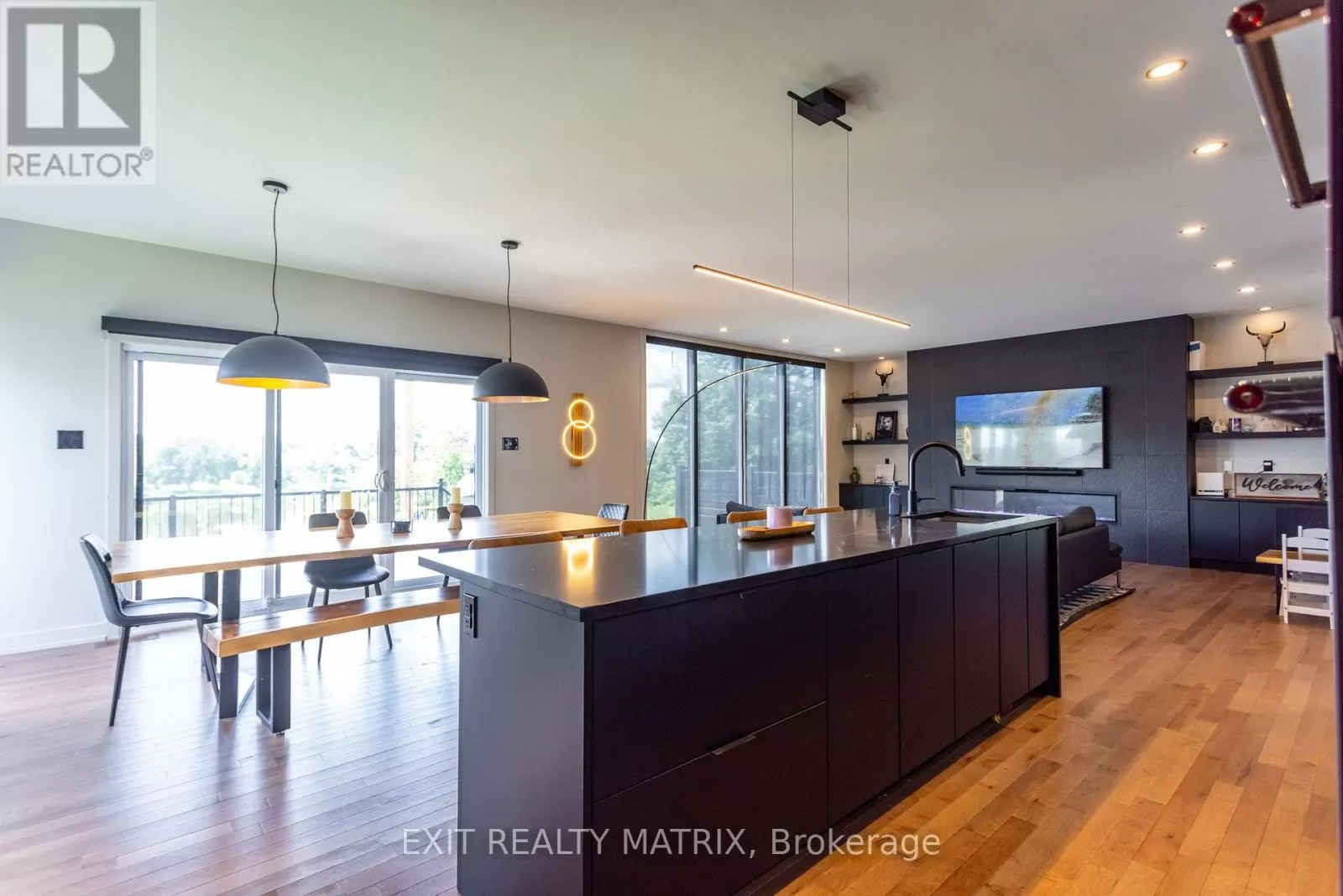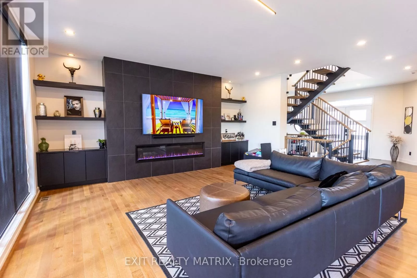 Cross Streets: Argile St. ** Directions: Head east on Rte 500 W. Turn right onto Lafontaine Sideroad. Turn left onto Doré St. Turn left onto Argile St. Turn right onto Barrage St. Destination will be on the right. This is more than a home, it's a lifestyle. Nestled on the serene South Nation River, this stunning masterpiece blends sleek modern design with the natural beauty of the water. From the moment you enter, the space captivates with gleaming hardwood floors that flow seamlessly through the expansive, open-concept living areas. The dream floor to ceiling windows flood the space in natural light and breathtaking views, while the fireplace creates a cozy atmosphere, perfect for family gatherings or relaxed evenings. The custom chefs kitchen is a vision of elegance, featuring waterfall countertops, high-end appliances, and a custom walk-in pantry with a beer fridge, a true entertainer's paradise. The dining space opens through patio doors to a spacious back deck, bringing the outdoors in and offering the perfect setting for alfresco dining with stunning river views. On the main level, you'll find a sleek two-piece bathroom, laundry room, and easy access to the large garage. Electric blinds provide effortless control over light and privacy. Upstairs, the primary bedroom is your personal oasis, offering river views and an ensuite designed for indulgence, complete with a soaking tub, glass shower, and double sinks. The walk-in closet is a masterpiece in itself, large and luxurious. The fully finished lower level is all about relaxation and recreation, featuring a home gym, a spacious family room, and a sauna for the ultimate unwinding experience. Step outside to your covered back deck, overlooking the river, where you can enjoy serene moments or entertain guests. With river access, a spacious yard, and an extended driveway, this home offers everything you need for a dream lifestyle. This is your forever sanctuary, luxurious, sexy, and unforgettable. Welcome to your dream home on the South Nation River. (id:27476)