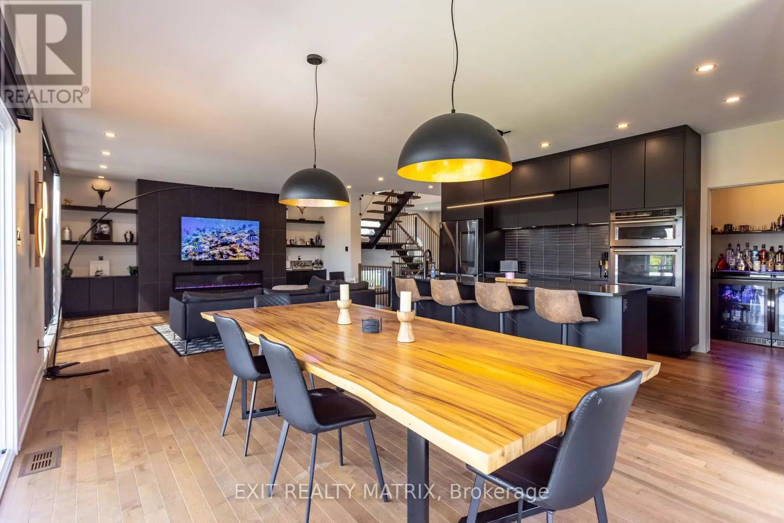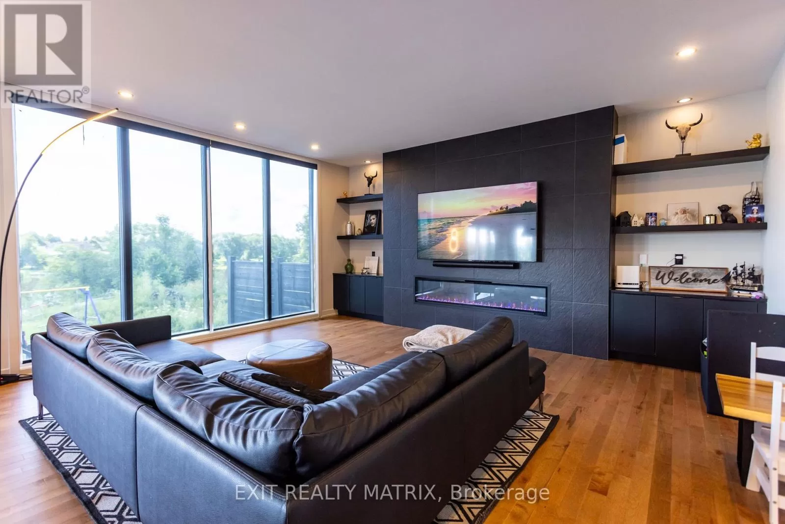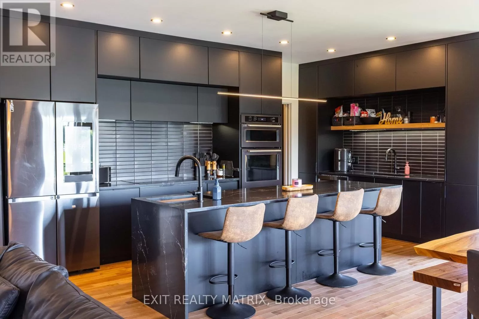 Cross Streets: Argile St. ** Directions: Head east on Rte 500 W. Turn right onto Lafontaine Sideroad. Turn left onto Doré St. Turn left onto Argile St. Turn right onto Barrage St. Destination will be on the right. This is more than a home, it's a lifestyle. Nestled on the serene South Nation River, this stunning masterpiece blends sleek modern design with the natural beauty of the water. From the moment you enter, the space captivates with gleaming hardwood floors that flow seamlessly through the expansive, open-concept living areas. The dream floor to ceiling windows flood the space in natural light and breathtaking views, while the fireplace creates a cozy atmosphere, perfect for family gatherings or relaxed evenings. The custom chefs kitchen is a vision of elegance, featuring waterfall countertops, high-end appliances, and a custom walk-in pantry with a beer fridge, a true entertainer's paradise. The dining space opens through patio doors to a spacious back deck, bringing the outdoors in and offering the perfect setting for alfresco dining with stunning river views. On the main level, you'll find a sleek two-piece bathroom, laundry room, and easy access to the large garage. Electric blinds provide effortless control over light and privacy. Upstairs, the primary bedroom is your personal oasis, offering river views and an ensuite designed for indulgence, complete with a soaking tub, glass shower, and double sinks. The walk-in closet is a masterpiece in itself, large and luxurious. The fully finished lower level is all about relaxation and recreation, featuring a home gym, a spacious family room, and a sauna for the ultimate unwinding experience. Step outside to your covered back deck, overlooking the river, where you can enjoy serene moments or entertain guests. With river access, a spacious yard, and an extended driveway, this home offers everything you need for a dream lifestyle. This is your forever sanctuary, luxurious, sexy, and unforgettable. Welcome to your dream home on the South Nation River. (id:27476)