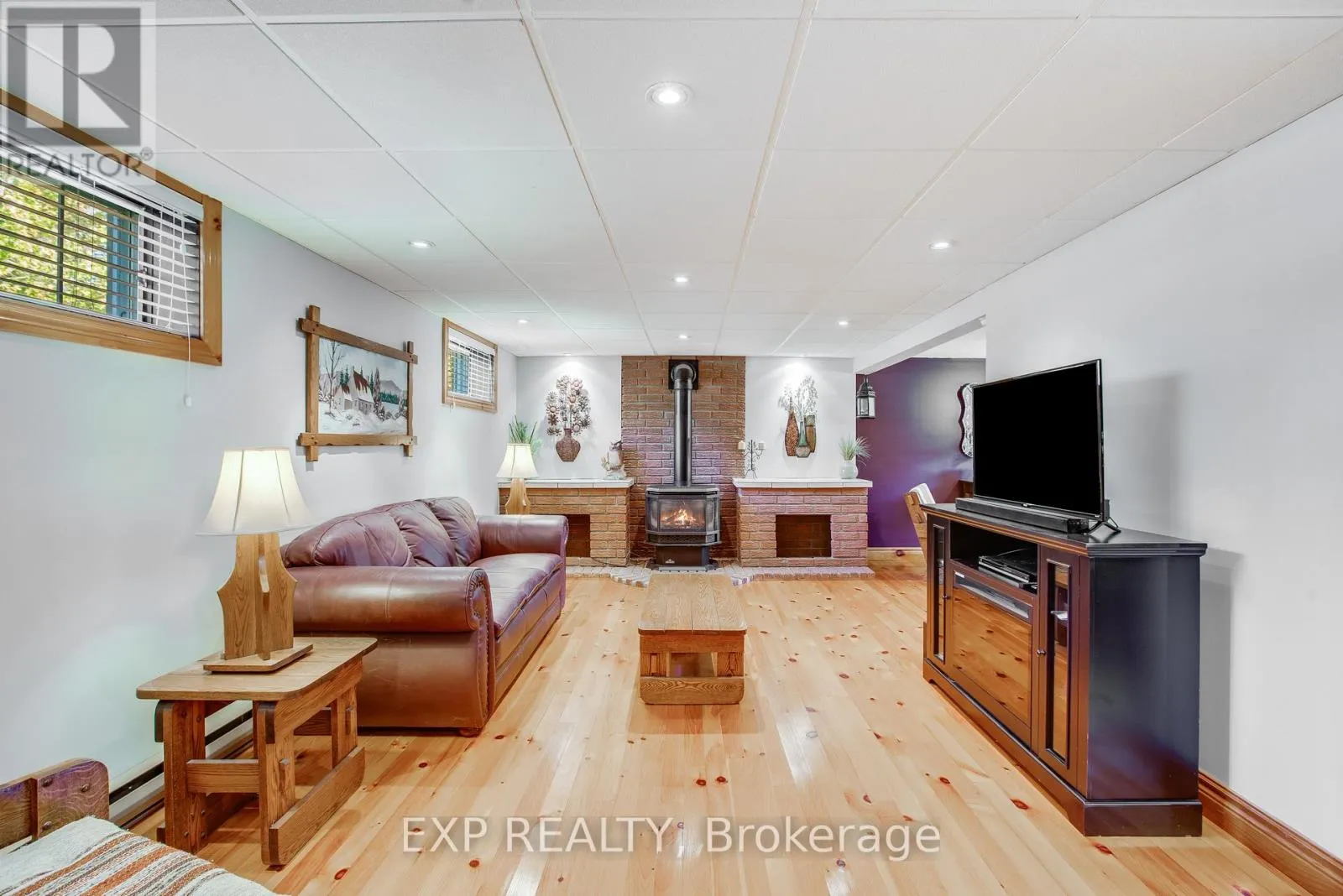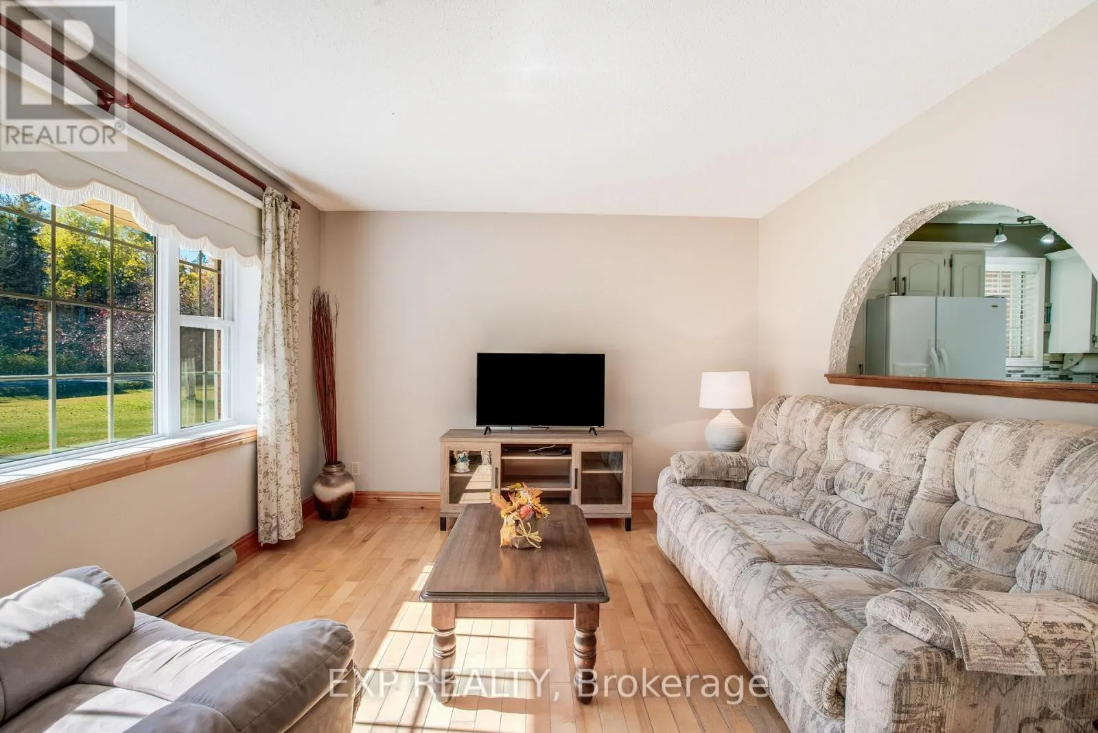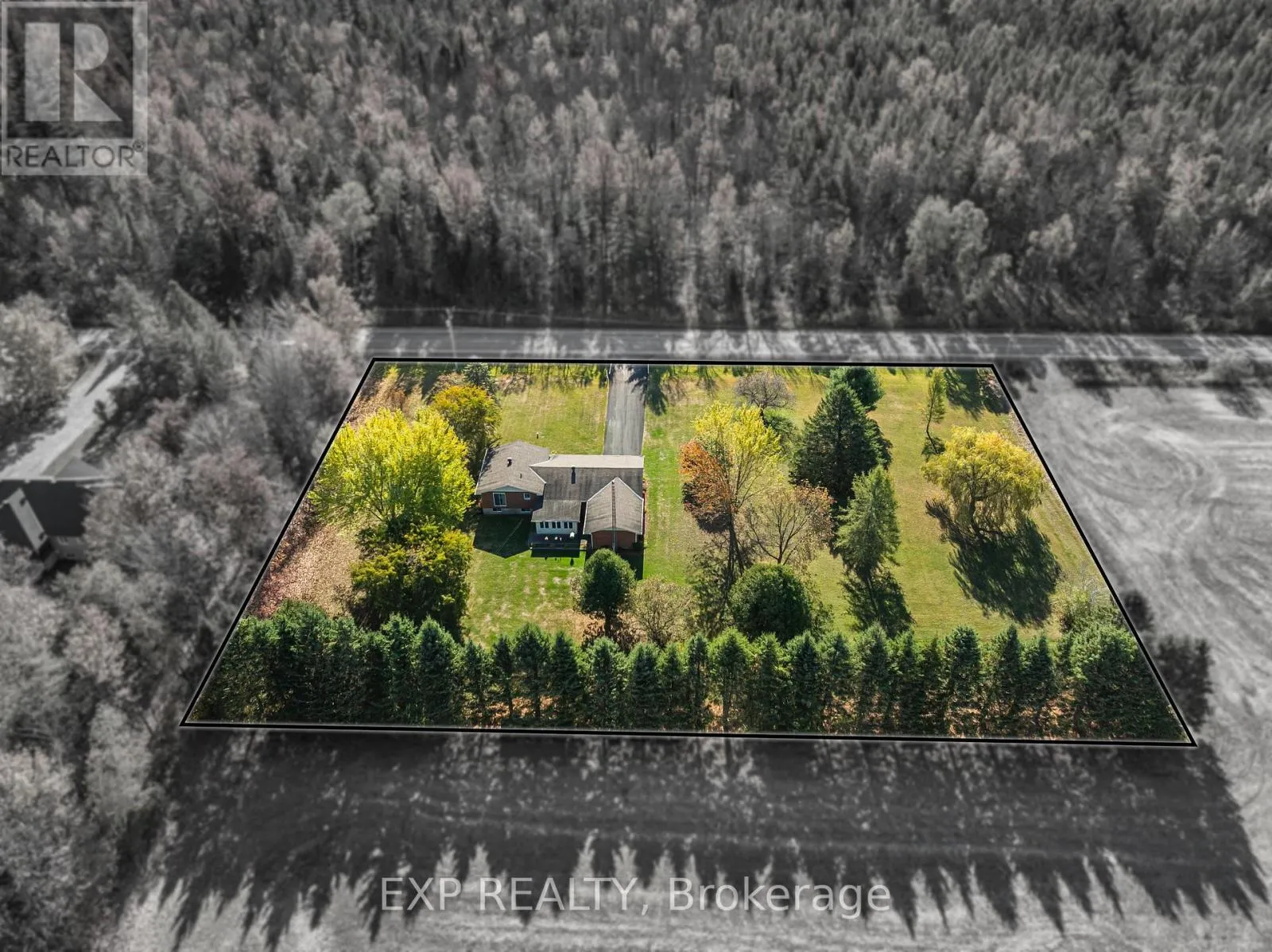 Cross Streets: Lemieux. ** Directions: Turn into Laurier street from St. Isidore until it turns into Route 200. Welcome to your own private retreat on a beautiful 1.4-acre lot surrounded by mature trees and nature. Tucked away in a quiet, family-friendly area with no front or rear neighbors - and only one side neighbor - this property offers the peace and privacy you've been looking for. The brick exterior gives the home timeless curb appeal, complemented by a freshly paved driveway (2023), a deep garage with inside entry, and an additional carport for extra parking or covered storage. Step inside to find a bright and inviting living room with large windows and warm hardwood floors that flow throughout the main spaces. A spacious sunroom overlooks the private backyard and can also be accessed from the garden through a patio door - the perfect place to gather with family, unwind, or enjoy morning coffee while taking in the view. The landscaped yard offers plenty of room for kids to play, family barbecues, or growing your own garden, and includes a practical shed for tools and equipment. This well-maintained split-level home features three comfortable bedrooms, a large full bathroom, and a fully finished basement with a cozy gas stove - an ideal space for family movie nights, a play area, or a home office. With generous storage throughout and pride of ownership from the original owner, this home is move-in ready and filled with potential. If you've been dreaming of a peaceful country lifestyle with room for your family to grow and explore, this property is the perfect match. (id:27476)
