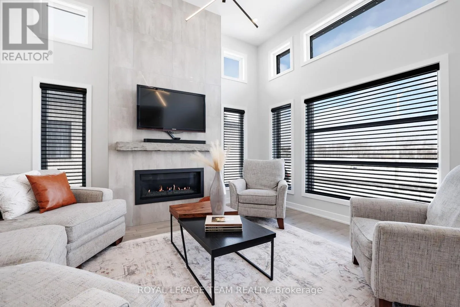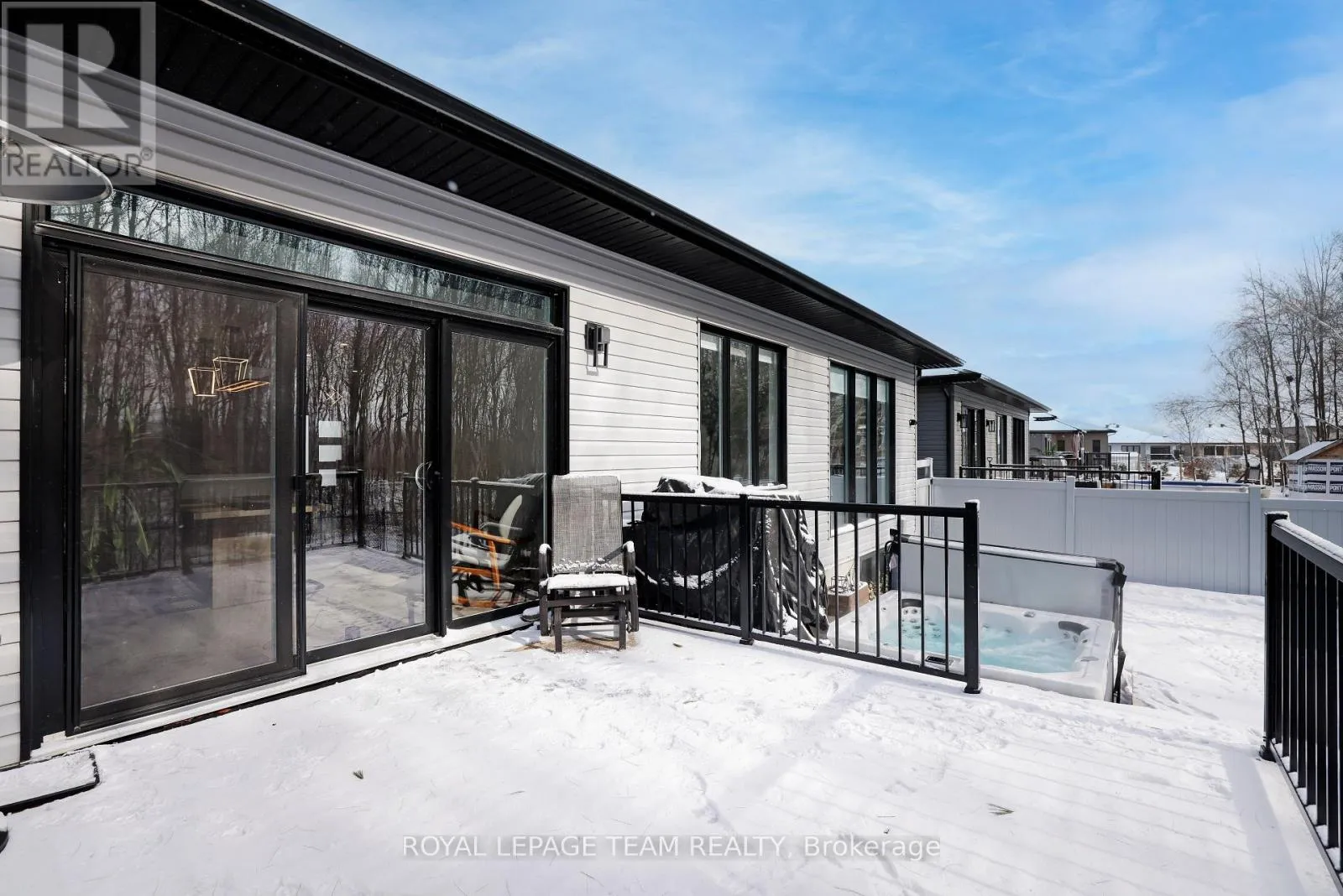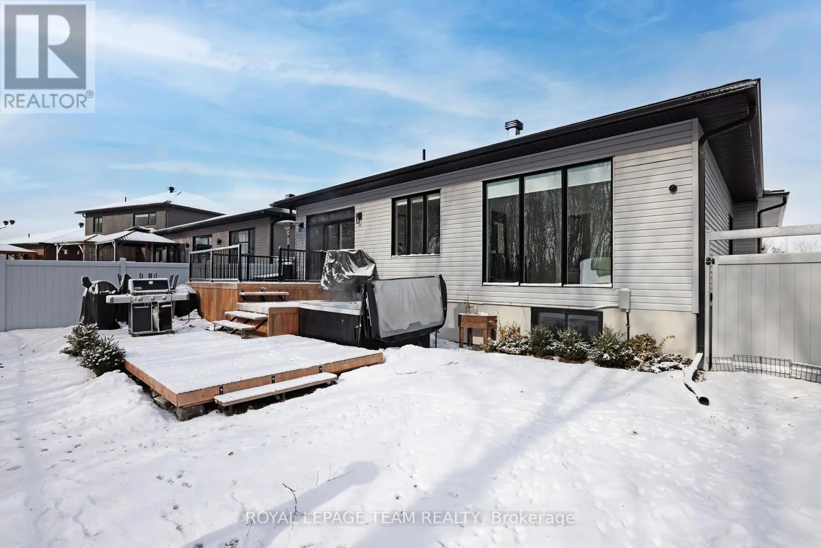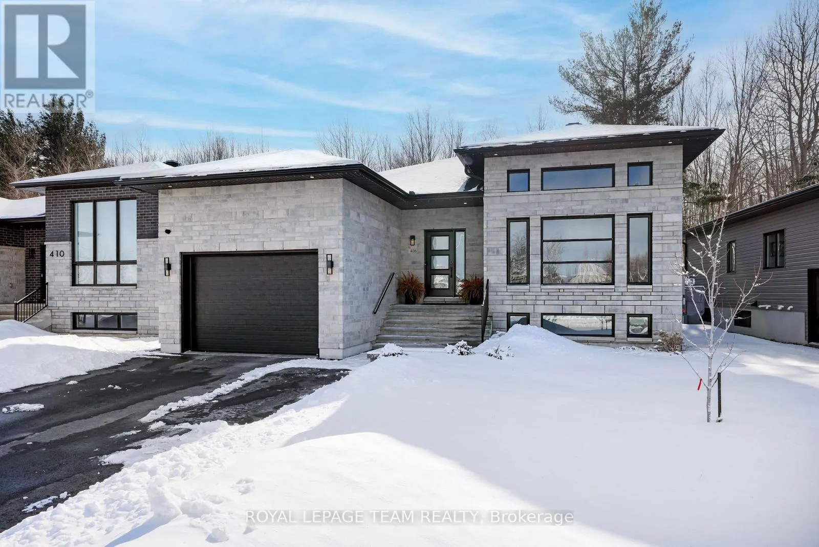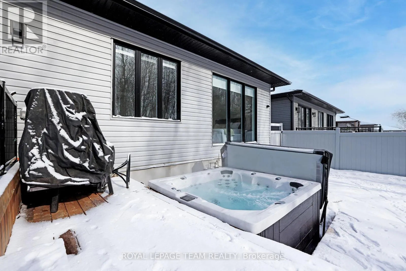 Cross Streets: Montee Lafontaine. ** Directions: Montee Lafontaine turn on Dore. A truly turnkey home offering modern luxury in a peaceful setting, welcome to 406 Doré Street, a stunning modern bungalow nestled in the Rivière Nation Estate. Built in 2022 by Joroma Construction, this home offers an exceptional blend of contemporary style, comfort, and thoughtful design. Step inside to discover a bright and inviting main living space highlighted by soaring 12-foot ceilings and a beautiful gas fireplace, creating the perfect atmosphere for relaxing or entertaining. The gourmet kitchen is sure to impress with its sleek finishes, abundant cabinetry, quartz countertops, gas cooktop, and black stainless steel appliances. The main level features two spacious bedrooms, including a luxurious primary suite complete with a private 4-piece ensuite and a soaker tub-your own personal retreat at the end of the day. Downstairs, the fully finished basement expands your living space with three additional bedrooms, offering incredible flexibility for family, guests, or a home office. A large entertainment room provides the ideal setting for movie nights or gatherings, complemented by a third full bathroom and a dedicated laundry room. With upgrades throughout, including a central vacuum system, water softener, GenerLink connector for added peace of mind during power outages, and luxury privacy roll-down window coverings throughout. The exterior is just as impressive. Enjoy a fully fenced backyard with no rear neighbours, a two-tiered deck, natural gas BBQ hookup, and a hot tub-perfect for outdoor living year-round. The front entrance is beautifully finished with stone interlock and a landscaped garden bed, creating a warm and welcoming first impression. A heated garage with epoxy flooring and interior access to both the main floor and basement adds convenience and functionality to this exceptional property. (id:27476)