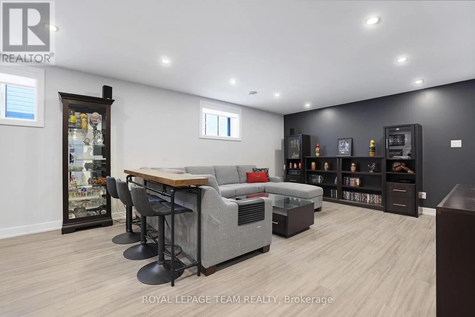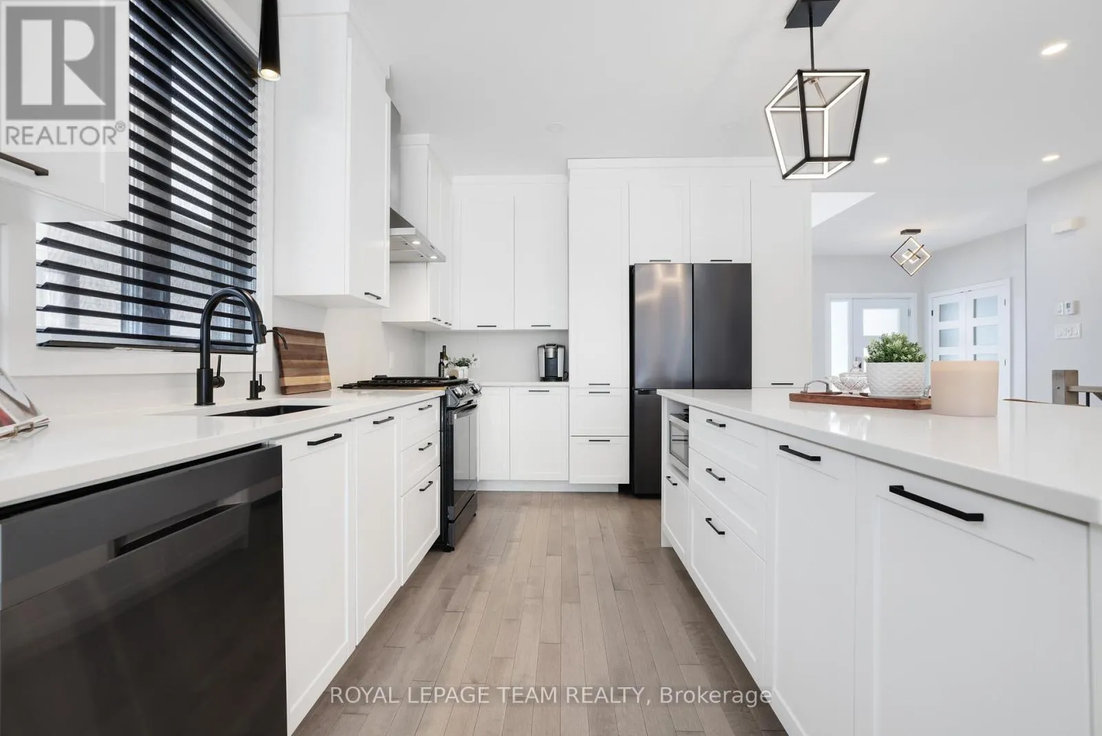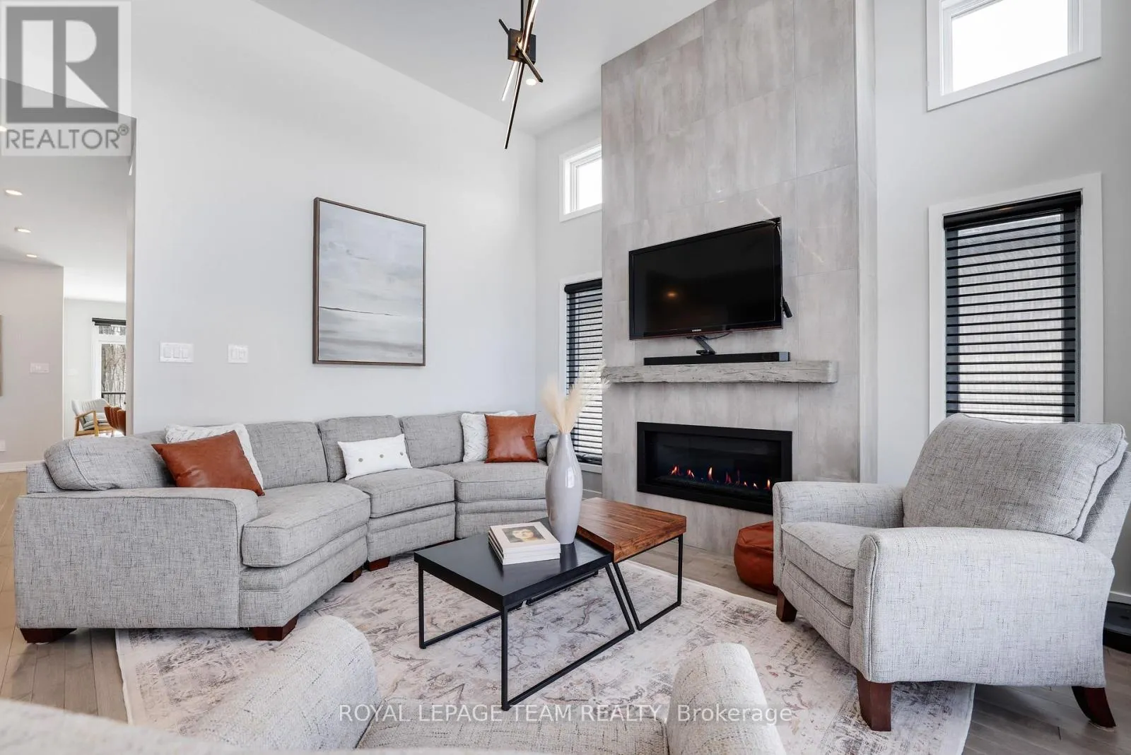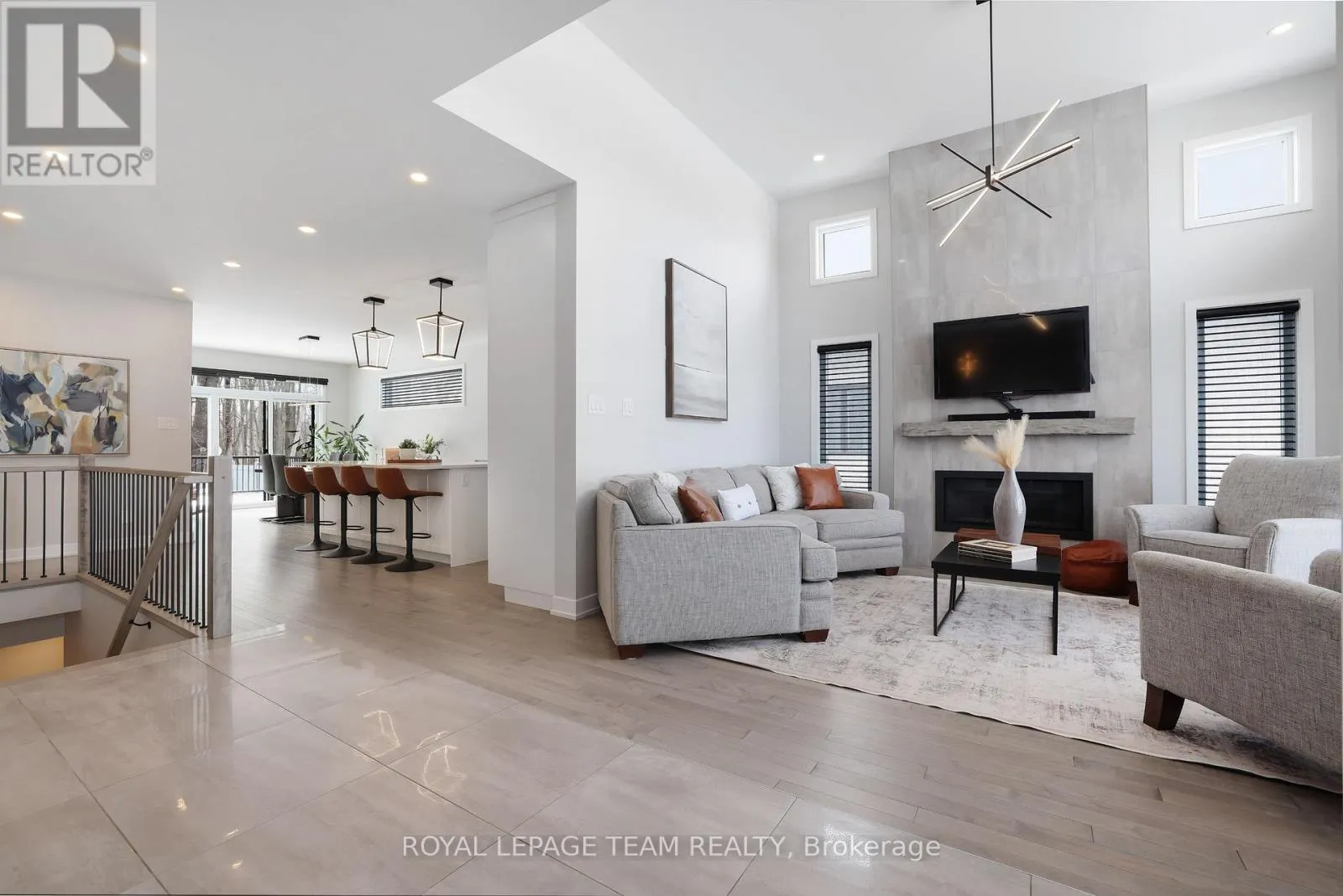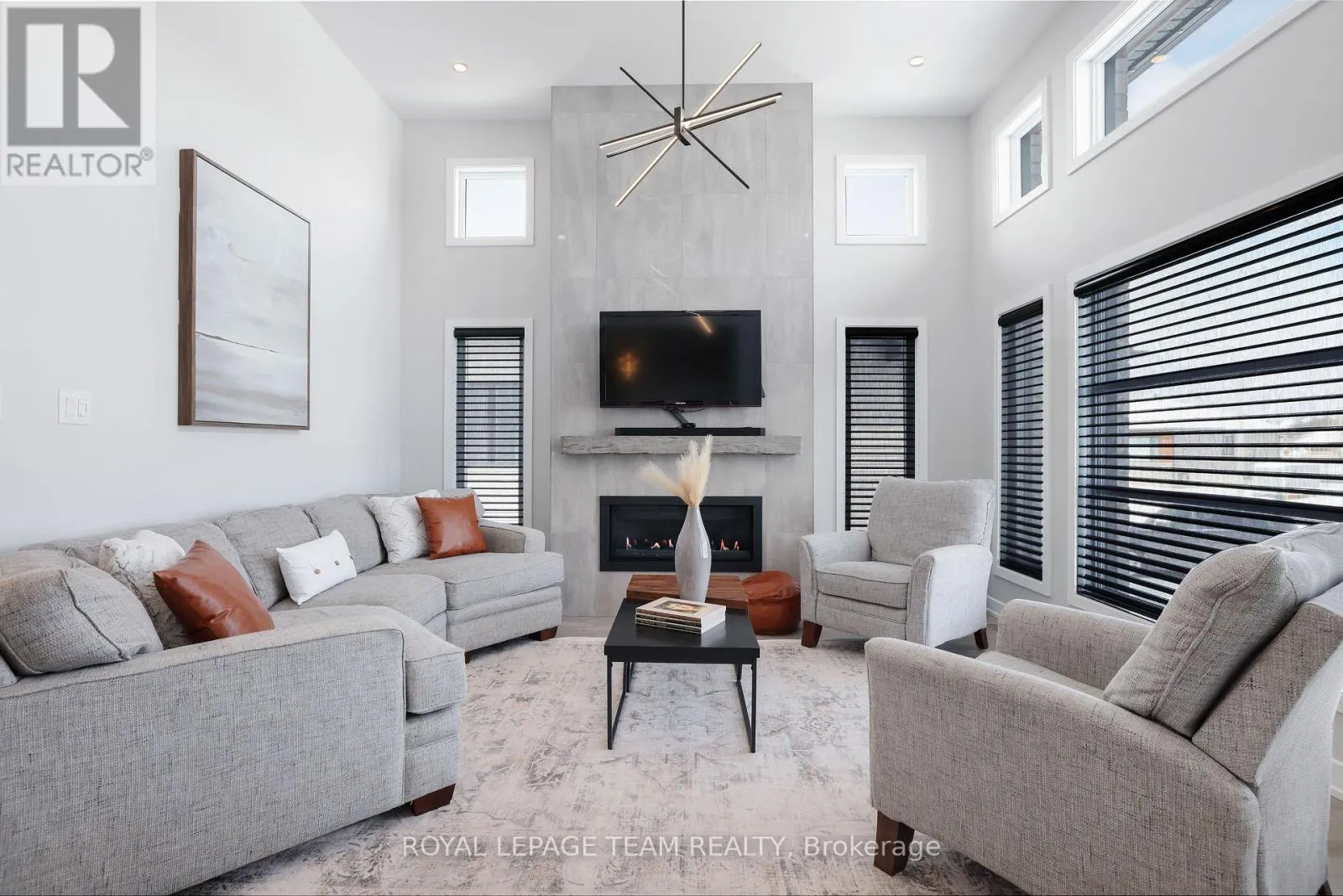 Cross Streets: Montee Lafontaine. ** Directions: Montee Lafontaine turn on Dore. A truly turnkey home offering modern luxury in a peaceful setting, welcome to 406 Doré Street, a stunning modern bungalow nestled in the Rivière Nation Estate. Built in 2022 by Joroma Construction, this home offers an exceptional blend of contemporary style, comfort, and thoughtful design. Step inside to discover a bright and inviting main living space highlighted by soaring 12-foot ceilings and a beautiful gas fireplace, creating the perfect atmosphere for relaxing or entertaining. The gourmet kitchen is sure to impress with its sleek finishes, abundant cabinetry, quartz countertops, gas cooktop, and black stainless steel appliances. The main level features two spacious bedrooms, including a luxurious primary suite complete with a private 4-piece ensuite and a soaker tub-your own personal retreat at the end of the day. Downstairs, the fully finished basement expands your living space with three additional bedrooms, offering incredible flexibility for family, guests, or a home office. A large entertainment room provides the ideal setting for movie nights or gatherings, complemented by a third full bathroom and a dedicated laundry room. With upgrades throughout, including a central vacuum system, water softener, GenerLink connector for added peace of mind during power outages, and luxury privacy roll-down window coverings throughout. The exterior is just as impressive. Enjoy a fully fenced backyard with no rear neighbours, a two-tiered deck, natural gas BBQ hookup, and a hot tub-perfect for outdoor living year-round. The front entrance is beautifully finished with stone interlock and a landscaped garden bed, creating a warm and welcoming first impression. A heated garage with epoxy flooring and interior access to both the main floor and basement adds convenience and functionality to this exceptional property. (id:27476)
