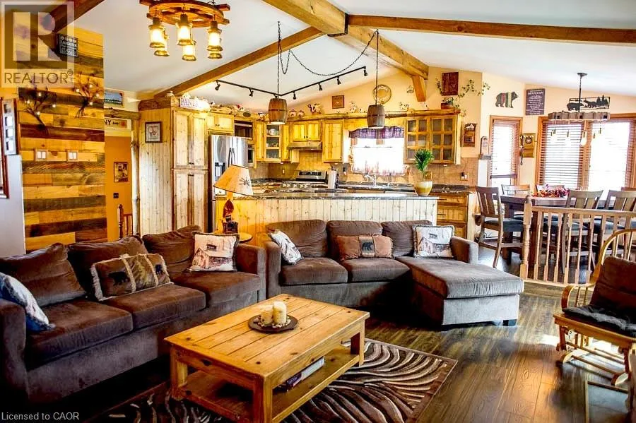 53 to 6th Concession A rare opportunity for flexible living on a scenic country lot, minutes from town. This custom built bungaloft is designed for family, extended family, guests, or home-based lifestyles. This residence offers multiple private living spaces within one exceptional property. The main dwelling features a bright, open layout with natural wood detailing, generous living areas, and a statement fireplace. The kitchen is designed for gathering, offering custom storage, a large island, and seamless flow to the dining and great room. Six bedrooms and four bathrooms provide ample space, including a private primary retreat with ensuite. The lower level is finished with recreation space, laundry, and storage. The self-contained in-law suite includes its own entrance, deck overlooking open fields, kitchen, living space with fireplace, bedroom, office, full bath, and separate utilities. The loft, a third suite offering a bedroom with fireplace and full bath ... ideal for longer-term guests. Set on a large, fully fenced lot backing onto farmland, the property includes parking for six, multiple storage sheds, a basketball court and a solar-heated above-ground pool. A truly unique property offering privacy, flexibility, and functionality. Additional notes: Only about 10 minutes to hwy 403 and about another 15 minutes from there to the 401. Revers osmosis drinking system in main home and in-law suite. AC|Furnace 2025. HWH 2024 *Pictures from pervious listing have been used with permission. (id:27476)