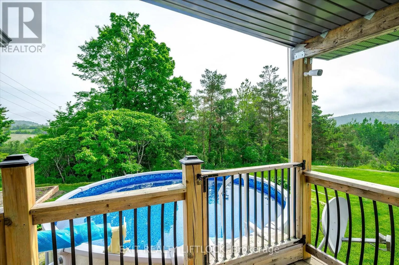 Cross Streets: Stewart Line & Jill Ln. ** Directions: Follow Sir Sandford Fleming Dr turns into Stewart Line, follow to #243. VENDORS MOTIVATED! Hilltop Home with Fantastic Views! Cavan area bungalow situated on 2.74 acres with spectacular views, trees, trails, with natural gas heat! Home features 3+1 bedrooms and updated bathroom as well as main floor laundry. Extra bedroom on the lower level. Most of the basement is unfinished and ready for you to make it your own special retreat. Double detached garage, fully insulated and heated, has wood stove and plenty of built-in storage. Interlocking brick between house and garage as well as a privacy fence, allows for a private courtyard area. Covered porch on house and above ground pool add to the "vacation at home" atmosphere. Quiet, dead end street. A must to view! (id:27476)