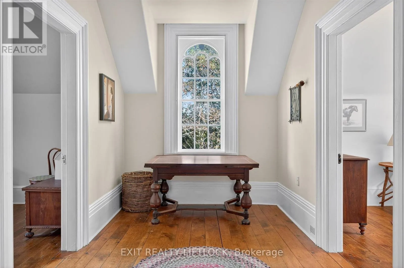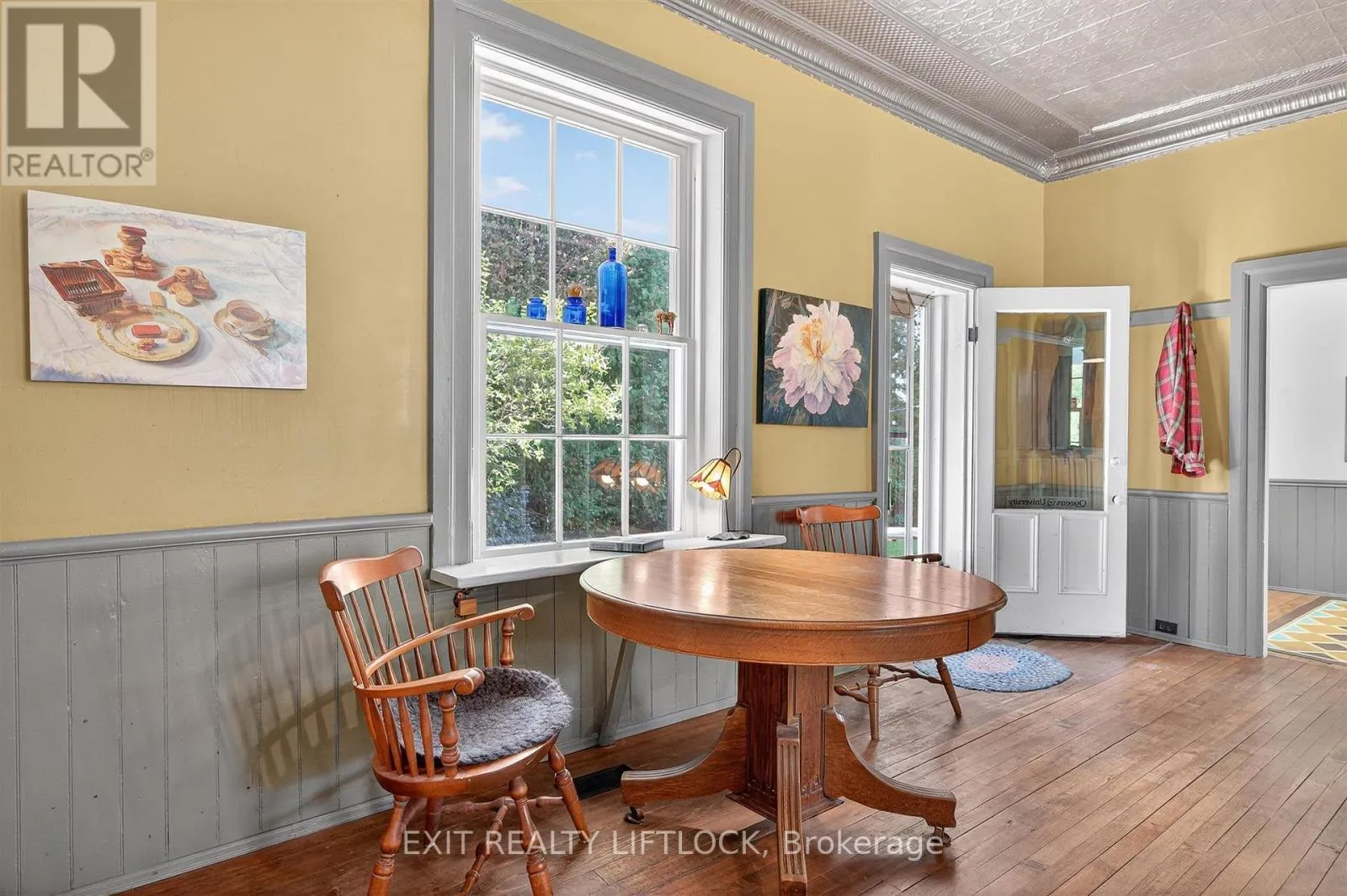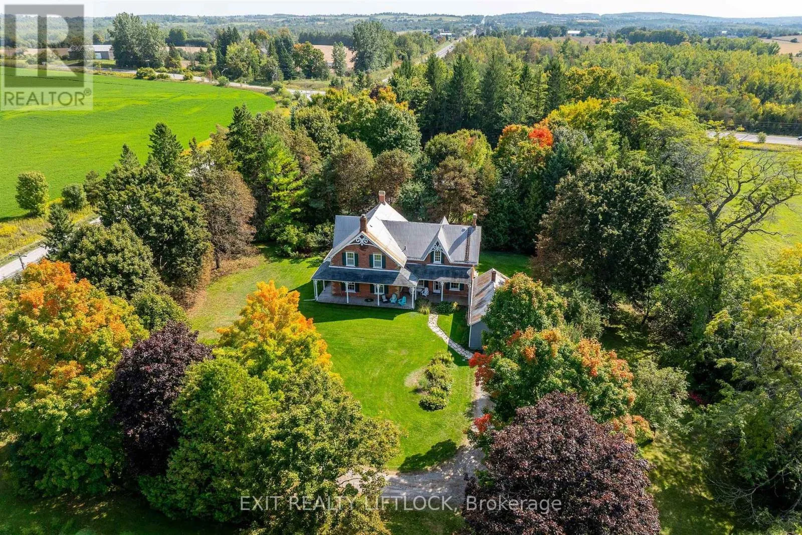 Cross Streets: Hwy 28 & Wallace Point Rd. ** Directions: Hwy 28 from Peterborough, past Fraserville, just before the round-about. This welcoming country classic features wraparound porches that add charm and character to a lovely 1.7-acre hideaway. A traditional front entrance opens to a spacious foyer with high ceilings, generous principal rooms, and a graceful staircase leading to the upper level. The living room is an inviting place to relax, with a cozy wood fireplace and plenty of windows framing the surrounding scenery. A formal dining room, perfect for entertaining, adjacent to a den/library lined with built-in bookcases. The country kitchen is a highlight, showcasing the original tin ceiling in mint condition, custom butternut cabinetry, built-in appliances, and a large centre island. An eating area with walk-out access to the porches makes this space ideal for family gatherings. Convenient main floor laundry, a separate walk-in pantry with excellent storage, and a three-piece bath add to the practicality of the layout. Upstairs, four spacious bedrooms are complemented by an office area and a light-filled art studio, where natural light filters beautifully through the original glass window. A back staircase provides a charming connection down to the kitchen area. The property includes a small barn with two box stalls, storage, and a workshop area. Once home to two horses, with room for a fenced paddock. Perennial gardens, apple trees, and an asparagus patch complete this picturesque parcel. Ideally located within easy distance of historic Millbrook Village, Bailieboro, and Rice Lake, and just minutes to Highway 115 for commuters, this property offers the perfect blend of character, charm, and convenience. (id:27476)