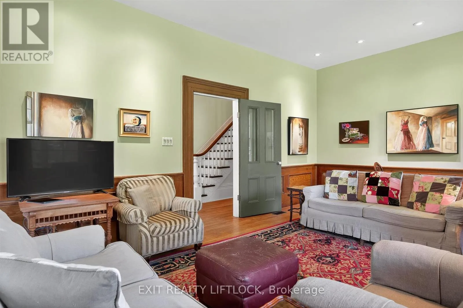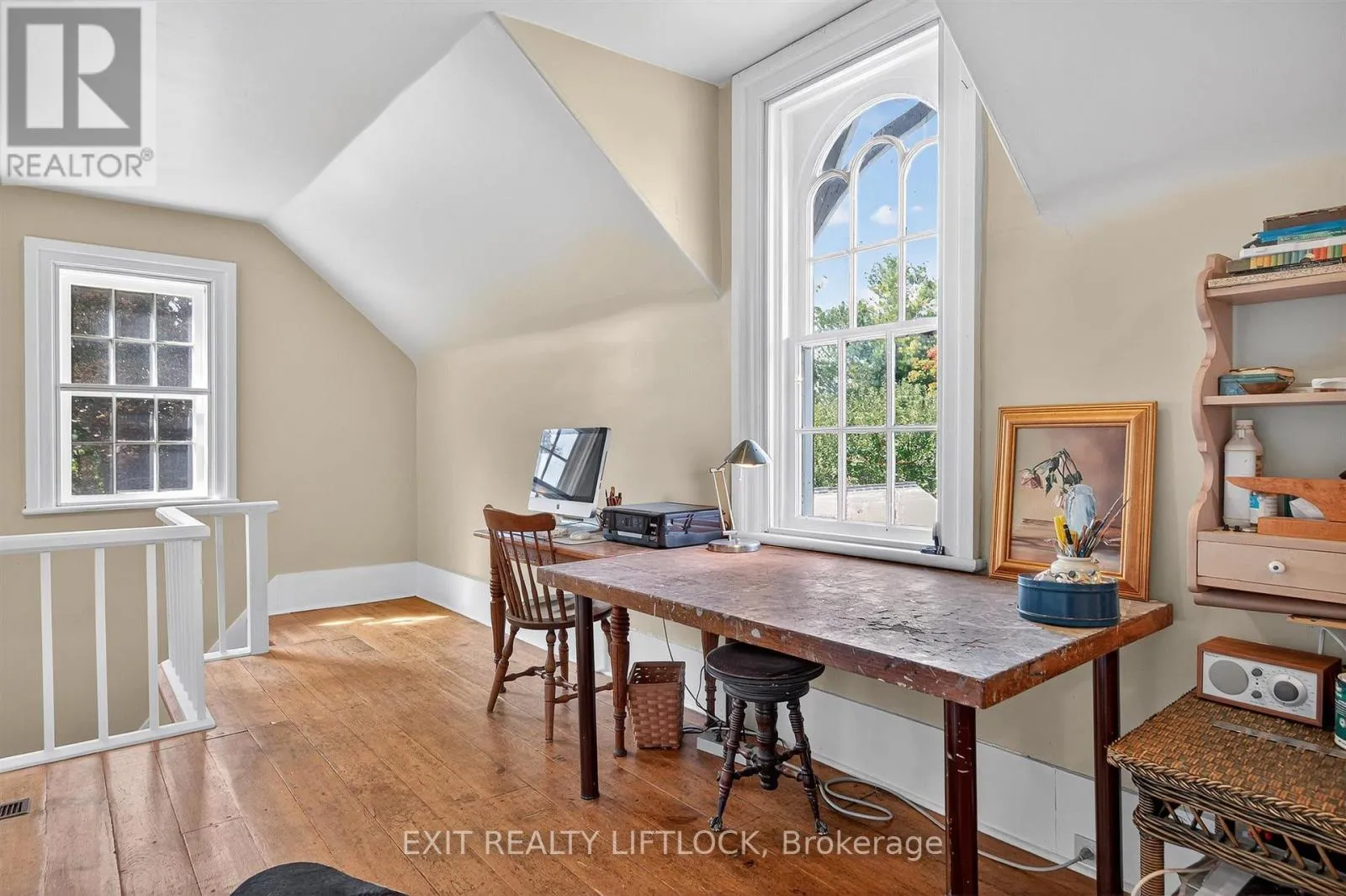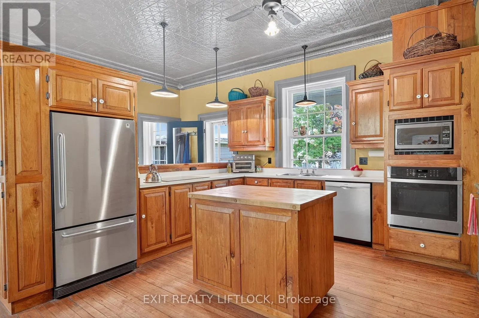 Cross Streets: Hwy 28 & Wallace Point Rd. ** Directions: Hwy 28 from Peterborough, past Fraserville, just before the round-about. This welcoming country classic features wraparound porches that add charm and character to a lovely 1.7-acre hideaway. A traditional front entrance opens to a spacious foyer with high ceilings, generous principal rooms, and a graceful staircase leading to the upper level. The living room is an inviting place to relax, with a cozy wood fireplace and plenty of windows framing the surrounding scenery. A formal dining room, perfect for entertaining, adjacent to a den/library lined with built-in bookcases. The country kitchen is a highlight, showcasing the original tin ceiling in mint condition, custom butternut cabinetry, built-in appliances, and a large centre island. An eating area with walk-out access to the porches makes this space ideal for family gatherings. Convenient main floor laundry, a separate walk-in pantry with excellent storage, and a three-piece bath add to the practicality of the layout. Upstairs, four spacious bedrooms are complemented by an office area and a light-filled art studio, where natural light filters beautifully through the original glass window. A back staircase provides a charming connection down to the kitchen area. The property includes a small barn with two box stalls, storage, and a workshop area. Once home to two horses, with room for a fenced paddock. Perennial gardens, apple trees, and an asparagus patch complete this picturesque parcel. Ideally located within easy distance of historic Millbrook Village, Bailieboro, and Rice Lake, and just minutes to Highway 115 for commuters, this property offers the perfect blend of character, charm, and convenience. (id:27476)