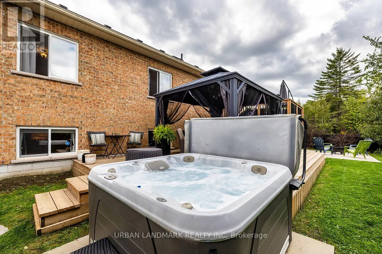 Cross Streets: Brookside/Tupper. ** Directions: hwy 10 north from downtown Millbrook, left onto Brookside St. Nestled in the heart of Millbrook, just minutes from the charming historic downtown, this beautifully updated raised bungalow blends comfort with modern convenience. Featuring 3 bedrooms upstairs and additional rooms on the lower level, 2 full bathrooms, this home offers exceptional flexibility for families, multi-generational living, or hosting guests. Main floor highlights, bright, open-concept living space with hardwood flooring. Updated kitchen cabinetry, stainless-steel appliances (2022), large kitchen island and an abundance or natural light throughout. Spacious dining/breakfast area with walkout to a two-tier deck. Additional bedrooms, perfect for extended family, home office, or gym. Large, versatile recreation space. Moving outside to you outdoor relaxation and peacefulness of the private backyard. Two-tier deck with lower entertainment area. Gazebo and built-in hydro spa (2022) for year-round enjoyment. Landscaped fire pit area ideal for evening gatherings. No neighbours behind for privacy and tranquility. Recent upgrades & extras, A/C (2022), Exterior soffit pot lights (2022), Nest thermostat (2022), Wifi garage door opener, Newly landscaped front walkway & patio. Surrounded by scenic walking and biking trails, walking distance to the Millbrook pond. Home wired for home alarm system. This home truly combines modern upgrades, flexible living space, and a peaceful backyard retreat, all within a welcoming community setting. (id:27476)