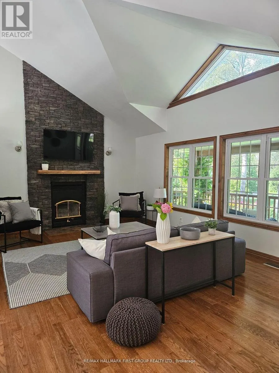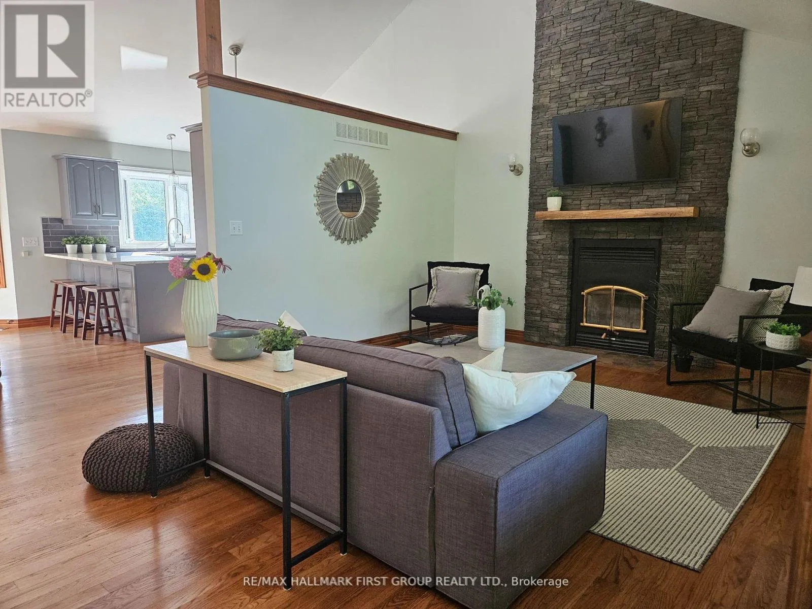 Cross Streets: Elgar Drive / Whitebirch. ** Directions: East on Zion Rd to Elgar then south the Whitebirch. Set on 3.35 picturesque acres at the end of a quiet court on Whitebirch Rd, this impressive property combines privacy, natural beauty, and exceptional value. The landscaped grounds are adorned with mature trees, colourful gardens, and a charming full-length front porch perfect for enjoying your morning coffee. Inside, the over 1,500 sq. ft. bungalow features an airy open-concept layout with cathedral ceilings, an updated kitchen, and a dramatic floor-to-ceiling stone fireplace. Offering three spacious bedrooms, a private den/office, and a fully finished basement with a second kitchen, bathroom, large recreation room, and two additional bedrooms, this home is ideal for multi-generational living or rental income opportunities. Outdoor highlights include a fenced dog run, fire pit, large storage shed, riding lawn mower, and a 2-car garage with loft and workshop space. Relax and entertain with a hot tub and above-ground pool, all while enjoying the peaceful surroundings. Conveniently located minutes from Highway 115 and Millbrook's shops and services, and within walking distance to the Millbrook Valley Trail, this property delivers the perfect blend of comfort, convenience, and tranquil country living. A Sellers' Prelist Home Inspection is Available Upon Request by Buyer's Agent. (id:27476)