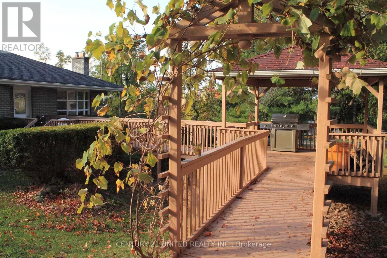 Hwy 7/Stewart Line Discover the potential in this 3 +1 bedroom, 1.5 bath bungalow with great curb appeal and situated on a large, almost half acre, private lot that backs to beautiful mature trees. Located just 10 minutes from Peterborough, this property offers peaceful country living with convenient city access. Designed with accessibility in mind, the home features a wheelchair-friendly layout and a ramp leading from the driveway to a beautiful gazebo and then on to the front entrance. Inside, you'll find a practical floor plan ready for your personal touch. Enjoy the spacious living room with large bow window overlooking the expansive front yard. Entertain family/friends in the adjoining dining room with a walkout to a large deck...the perfect spot to BBQ or just enjoy the gorgeous views of the forest behind. Accessibility features include enlarged doorways and grab bars in bathroom. A large storage shed provides ample room for tools, equipment, or hobby space. Whether you're looking to downsize, invest, or customize a home in a serene setting, this Cavan bungalow is full of possibilities! (id:27476)