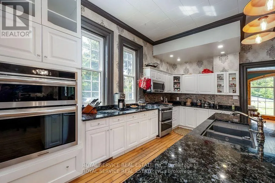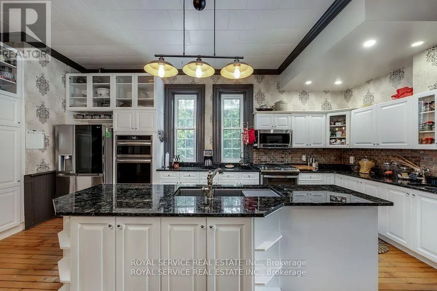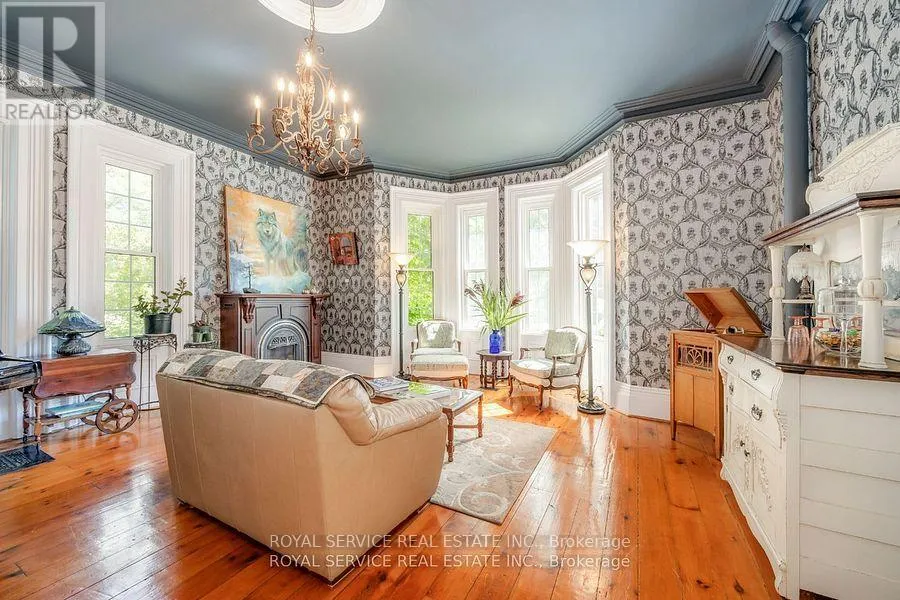 Cross Streets: King St. W / Main Street. ** Directions: Hwy 115 to County Road 10 South. Turn left on King St. W. Step into timeless elegance with this stunning, incredibly well-maintained Century home that beautifully blends historic charm with modern comfort. Offering 5 bedrooms (easily converted back to 6) and 4 full bathrooms, this impressive property is also a licensed Bed & Breakfast, making it ideal as both a family residence and a unique income opportunity.Inside, youll be welcomed by large principal rooms highlighted with original trim, a sense of heritage, and abundant natural light. The gourmet kitchen is truly a chefs dream, featuring granite countertops, built-in wall ovens, a gas stove, and even a separate wood cook stoveperfect for both everyday meals and memorable gatherings. Multiple laundry locations on the main and second levels make family living extra convenient.The homes large principal bedroom includes a private ensuite with a walk-in shower, while the gorgeous family room offers sweeping views of the backyard and heated inground pool.Outdoors, the home sits on over an acre of fully fenced land, featuring a pond, mature landscaping, and gated access to scenic walking trails. A large drive-through detached 3 car garage with loft currently serves as an art studio, complete with a walkout deck overlooking the backyard.All of this is located within walking distance to amenities, offering the perfect blend of privacy and convenience. Heat pump system was installed in 2025. This home exudes warmth, character, and pride of ownership. Whether youre looking for a one-of-a-kind family home or envision running your own charming B&B, this property is truly a must-see.Absolutely gorgeous. Absolutely impressive. Come experience it for yourself. (id:27476)