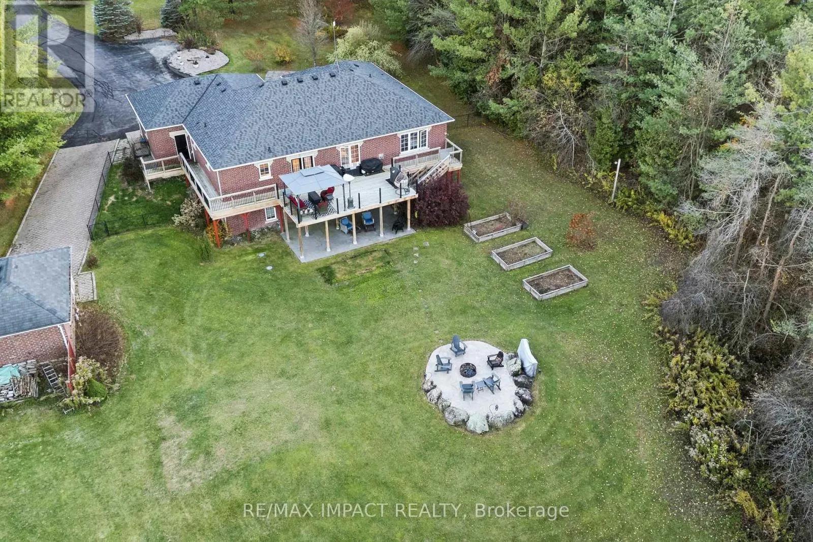 Cross Streets: HWY 7A & TAPLEY 1/4 LINE. ** Directions: GPS. Perched Atop A Gently Rolling Landscape This All Brick And Stone Bungalow Commands Attention From The Moment You Arrive. A Sweeping Asphalt Driveway Leads To A Custom Built Residence That Blends Refined Craftsmanship With Serene Country Views Stretching To The Horizon. Inside Light Pours Through The Open Concept Main Living Space Anchored By A Corner Fireplace And Framed By large Windows That Invite The Outdoors In. The Dining Area Flows Effortlessly Into A Spacious Eat In Kitchen, The Kind Of Space Where Every Sunrise Feels Like A Personal Moment And Every Evening Ends With A Panoramic Sunset Over Your Own Two Acres. Step Outside To An Expansive Deck That Overlooks A Private Tree Lined Backdrop - An Entertainers Dream Or The Perfect Place To Press Pause On Life. The Primary Suite Offers Quiet Sophistication With A Newly Renovated Ensuite And A Walk-In Closet Designed With Purpose, Two Additional Bedrooms With Built-Ins And A Main Floor Full Bath Complete The Main Level. Descend The Oak Staircase To A Full Walkout Lower Level, A Sunlit Extension Of The Home With Two More Bedrooms, A Family And Recreation Area, 3 Piece Bath And Even A Dedicated Space For Your Tanning Setup Or Fitness Routine. With Its Natural Light And Private Entrance The Possibilities Are Endless For An In Law Suite Guest Retreat Or The Ultimate Home Studio. The Attached 3 Car Garage Speaks To Convenience While The Detached 4th Bay Workshop (With Hydro) Delivers On Ambition. Every Inch Of This Property Was Built With Thought, Scale And Purpose. This Isn't Just A Home, Its A Statement, Where Craftsmanship Meets Calm And Every Detail Reflects A Life Well Built. Recent Upgrades Include A Renovated Primary Ensuite (2020) And Kitchen (2021), New Deck (2021), Concrete Pad And Fire Pit (2023), New Water Softener (2023), High-Efficiency Air Conditioner (2025), New Main Floor Flooring (2025), And Upgraded Main Floor Bathroom Toilets (2024). (id:27476)