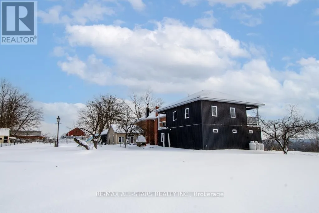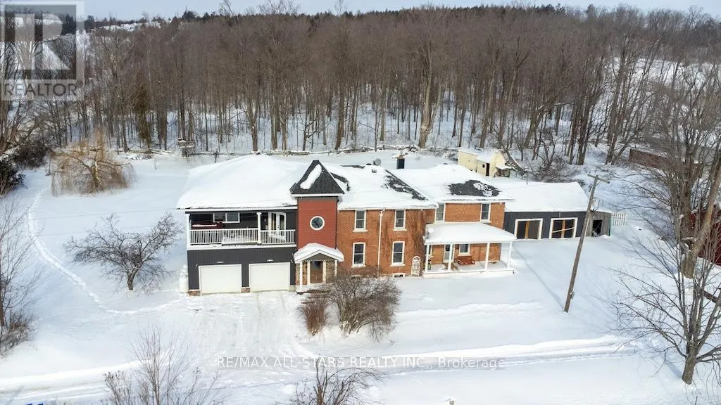 Cross Streets: Hwy 7A/ Dranoel Rd. ** Directions: Hwy 7a to Dranoel Rd. Country charm meets modern luxury in this exceptional brick century farmhouse, seamlessly blended with a stunning 4-year-old addition, offering over 3,500 sq ft of living space. The original farmhouse features a formal living room and dining room, while the expansive eat-in kitchen showcases a large island, new cabinetry with abundant storage, and a walk-in pantry. The main-floor family room impresses with cathedral ceilings, a wood-burning fireplace, and a walkout to a beautifully fenced in-ground pool-perfect for entertaining. A fully refinished century staircase leads to the second level, featuring four generous bedrooms plus a spectacular 22' x 13' primary suite complete with a walk-in closet, full ensuite, and private access to an upper-level balcony with hot tub and breathtaking countryside views. Additional second-floor highlights include a dedicated office, 4-piece bath, and convenient laundry. The property offers exceptional garage space with an oversized 2-car garage providing ample storage and direct access to a large mudroom, plus an additional attached 3-car garage with workshop. The property is serviced by a new septic system (2021), drilled well, 200-amp electrical panel (2022), and two propane furnaces with separate thermostats. All of this is set on a meticulously manicured 1.1-acre lot with spectacular panoramic country views. Quick access to Hwy 115 and 407 for easy commute to the GTA. (id:27476)