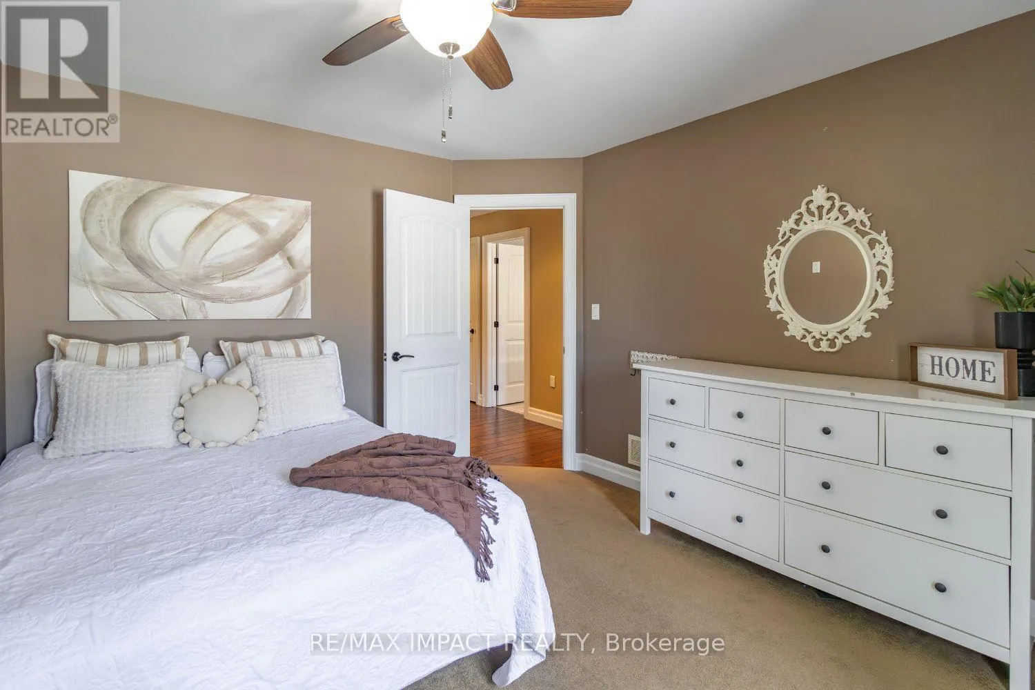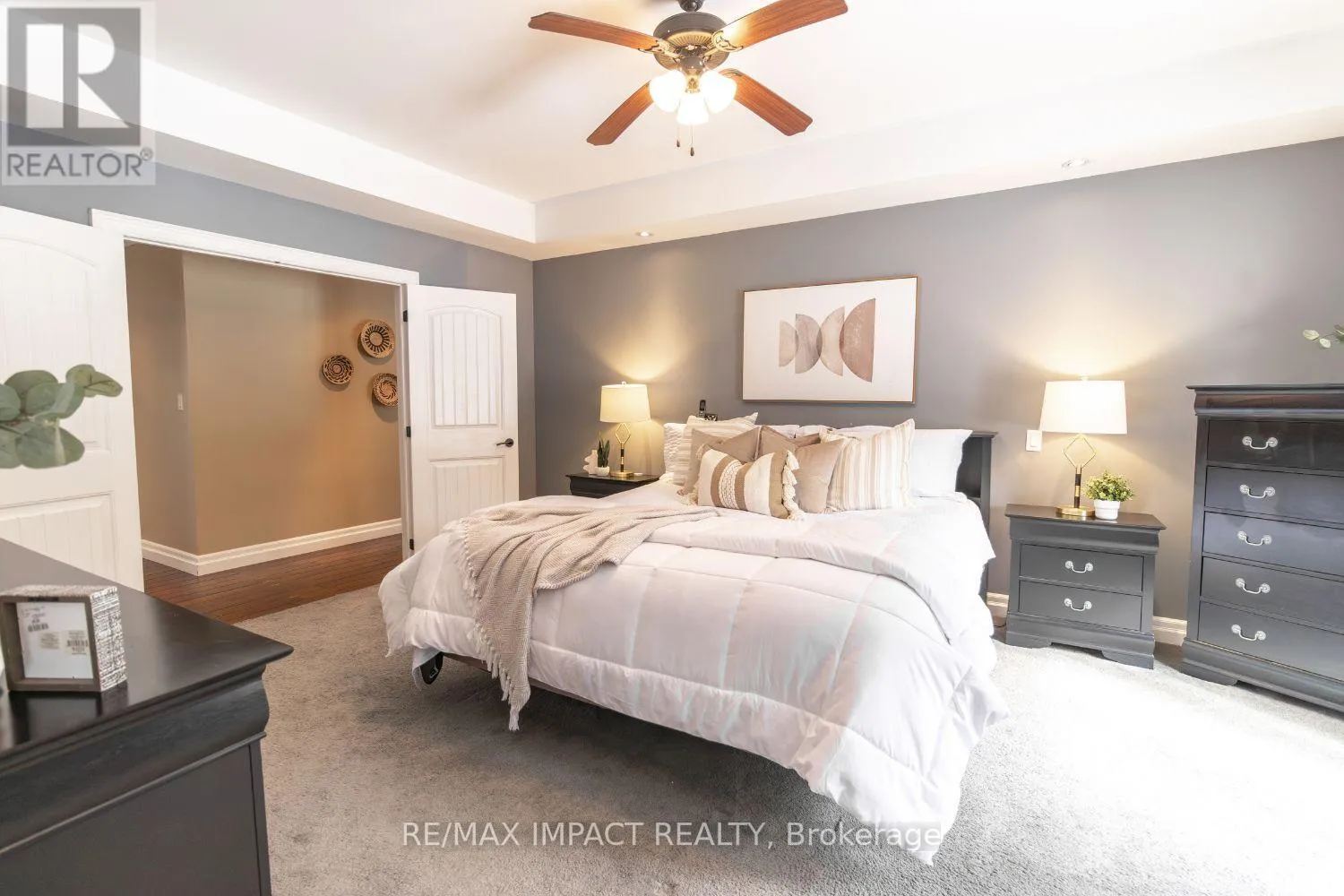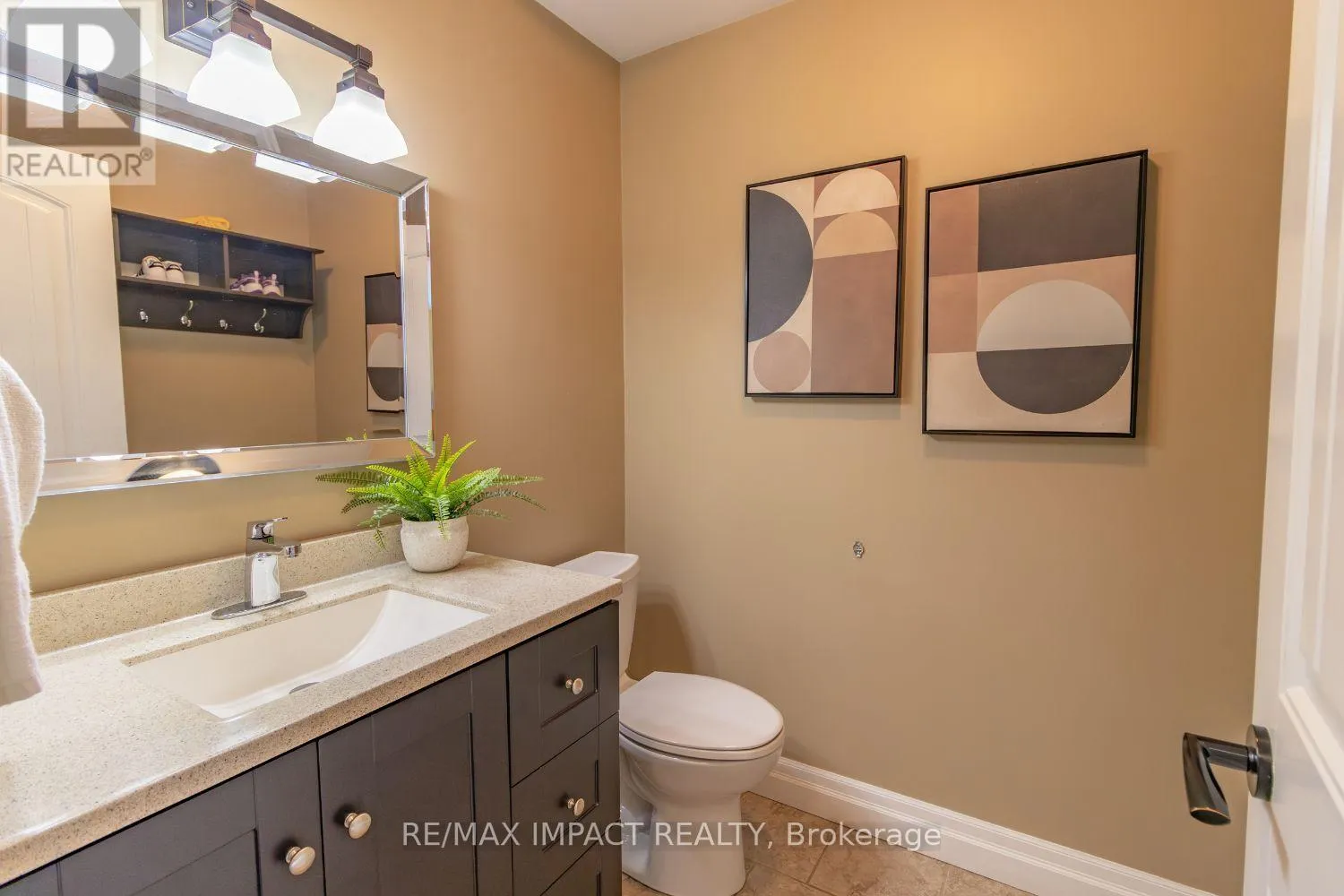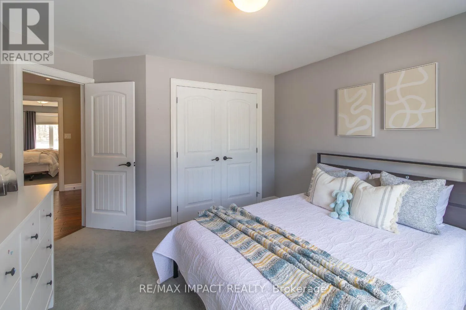 Cross Streets: Hwy 115 & Tapley Quarter Line. ** Directions: Hwy 115 to Tapley Quarter Line, go north on Tapley Quarter Line to Larmer Line and turn right to #489. Welcome to this stunning country property, a true gem built in 2011, nestled on a spacious 1.23 acre lot measuring 195' x 275'. This beautiful 2110 sf (per blueprint) bungalow boasts a charming stone and vinyl exterior, complemented by an attached heated four-car garage (1-double overhead door and 2 single overhead doors) and lots of parking for 10+ vehicles. Conveniently, the main floor offers direct access to the garage, while a secondary entrance leads to the basement from the garage, enhancing the home's functionality. At the heart of this property is a picturesque spring-fed pond located in the rear yard, approximately 10' deep, perfect for those seeking tranquility and natural beauty. The back yard features a wooden deck off the kitchen within a chain-link enclosure, providing a safe children's play area with playhouse and swing. Inside, the main level showcases an open-concept design that seamlessly connects the kitchen, great room, and separate dining area. The kitchen features rich dark cabinetry with granite countertops, stainless steel appliances, ceramic backsplash and separate desk area. The ceramic tile flooring adds durability, while a corner pantry with shelving and a convenient two-piece powder room enhance practicality. The kitchen also opens up to a deck that overlooks the pond and is surrounded by mature trees, creating a country outdoor retreat. The great room is highlighted by a large picture window, vaulted ceiling and pot lights with hardwood flooring. Double entry doors lead to the spacious primary bedroom, which includes a walk-in closet and a 5-piece ensuite complete with soaking tub, separate shower and 2 sink vanity. Two additional front bedrooms and a well-appointed 4-piece main bathroom complete the main floor. (id:27476)