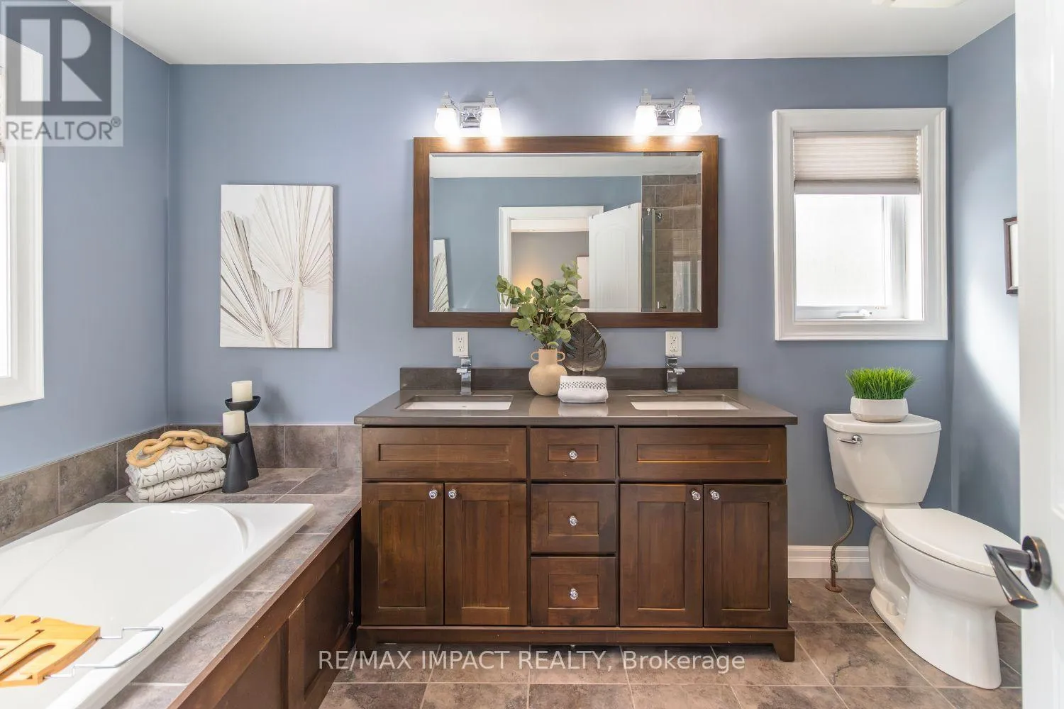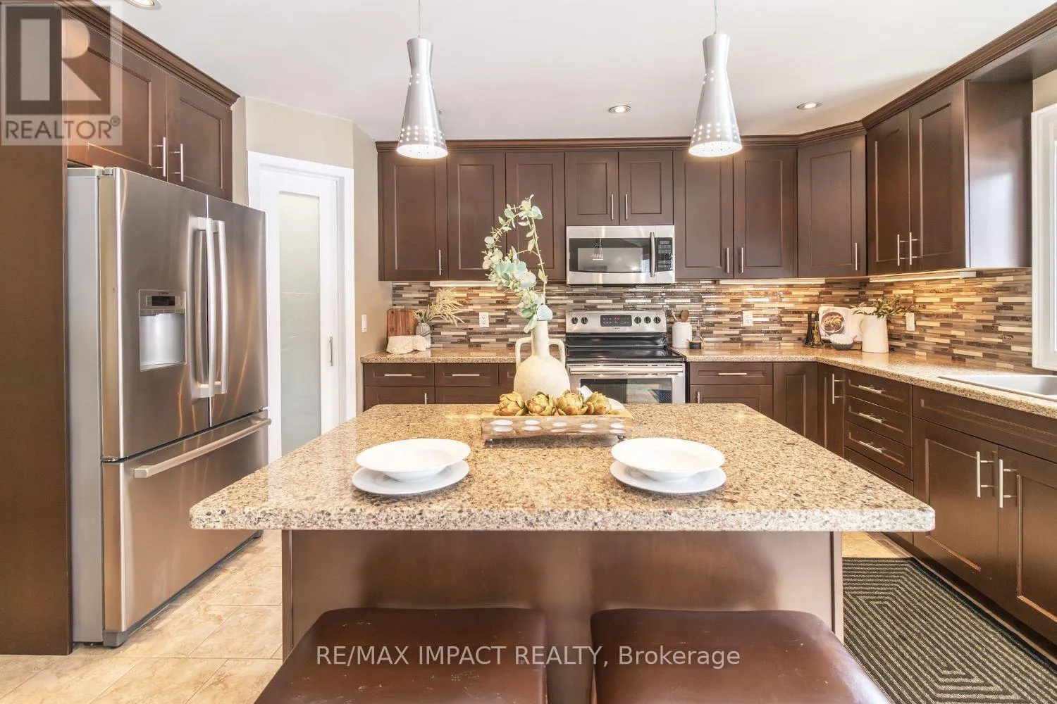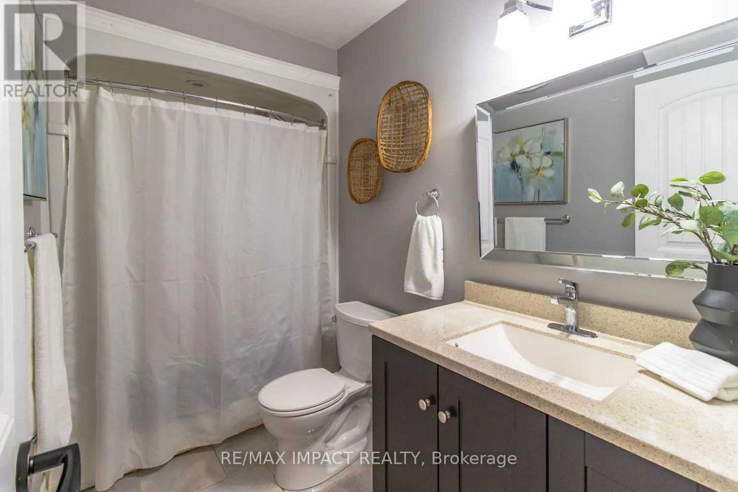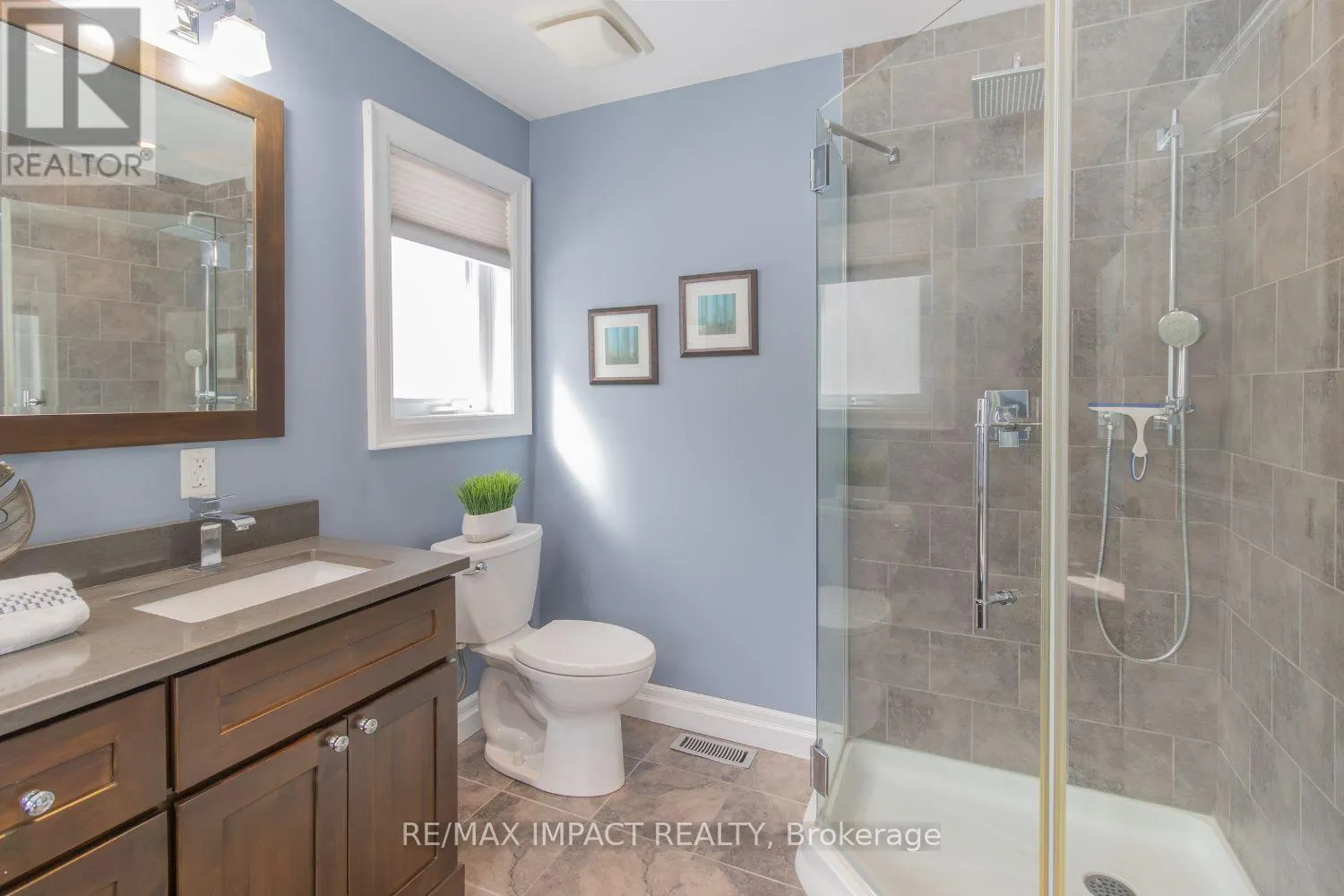 Cross Streets: Hwy 115 & Tapley Quarter Line. ** Directions: Hwy 115 to Tapley Quarter Line, go north on Tapley Quarter Line to Larmer Line and turn right to #489. Welcome to this stunning country property, a true gem built in 2011, nestled on a spacious 1.23 acre lot measuring 195' x 275'. This beautiful 2110 sf (per blueprint) bungalow boasts a charming stone and vinyl exterior, complemented by an attached heated four-car garage (1-double overhead door and 2 single overhead doors) and lots of parking for 10+ vehicles. Conveniently, the main floor offers direct access to the garage, while a secondary entrance leads to the basement from the garage, enhancing the home's functionality. At the heart of this property is a picturesque spring-fed pond located in the rear yard, approximately 10' deep, perfect for those seeking tranquility and natural beauty. The back yard features a wooden deck off the kitchen within a chain-link enclosure, providing a safe children's play area with playhouse and swing. Inside, the main level showcases an open-concept design that seamlessly connects the kitchen, great room, and separate dining area. The kitchen features rich dark cabinetry with granite countertops, stainless steel appliances, ceramic backsplash and separate desk area. The ceramic tile flooring adds durability, while a corner pantry with shelving and a convenient two-piece powder room enhance practicality. The kitchen also opens up to a deck that overlooks the pond and is surrounded by mature trees, creating a country outdoor retreat. The great room is highlighted by a large picture window, vaulted ceiling and pot lights with hardwood flooring. Double entry doors lead to the spacious primary bedroom, which includes a walk-in closet and a 5-piece ensuite complete with soaking tub, separate shower and 2 sink vanity. Two additional front bedrooms and a well-appointed 4-piece main bathroom complete the main floor. (id:27476)