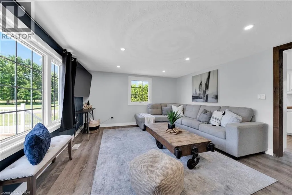 HIGHWAY 3 TO RIVER ROAD Ideally situated, Irreplaceable 3 bedroom waterfront Bungalow situated on the golden banks of the Grand River on serene 75â x 418â lot. Enjoy all that the Grand River has to offer with 20 km of navigable water with your own dock â boat, sea doo, kayak, paddleboard, fish, & embrace all from the convenience of your backyard. Your home & cottage in one! Great curb appeal set well back from the road with front & rear decks, sided exterior, multiple sheds, & solid breakwall which allows for the opportunity to create your own riverfront entertaining Oasis. The flowing interior layout is larger than it looks and features a tastefully updated, open concept layout highlighted by updated kitchen with custom live edge countertop & backsplash, dining area, bright living room, 2 spacious MF bedrooms including primary suite with direct water views, refreshed 4 pc bathroom, welcoming foyer, & desired MF laundry. The finished basement includes large rec room, 3rd bedroom, & ample storage. Recent updates include kitchen counters & backsplash, flooring, decor, lighting, fixtures, & more! Conveniently located minutes to Cayuga amenities including shopping, parks, schools, restaurants, & more. Easy access to Hamilton, Niagara, 403, QEW, & GTA. Rarely do waterfront properties come available in this price range. Must view to appreciate all this property features! Experience & Enjoy Grand River Waterfront Living! (id:27476)