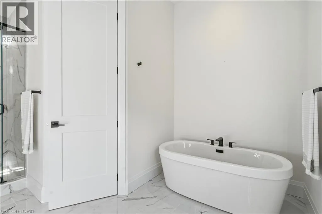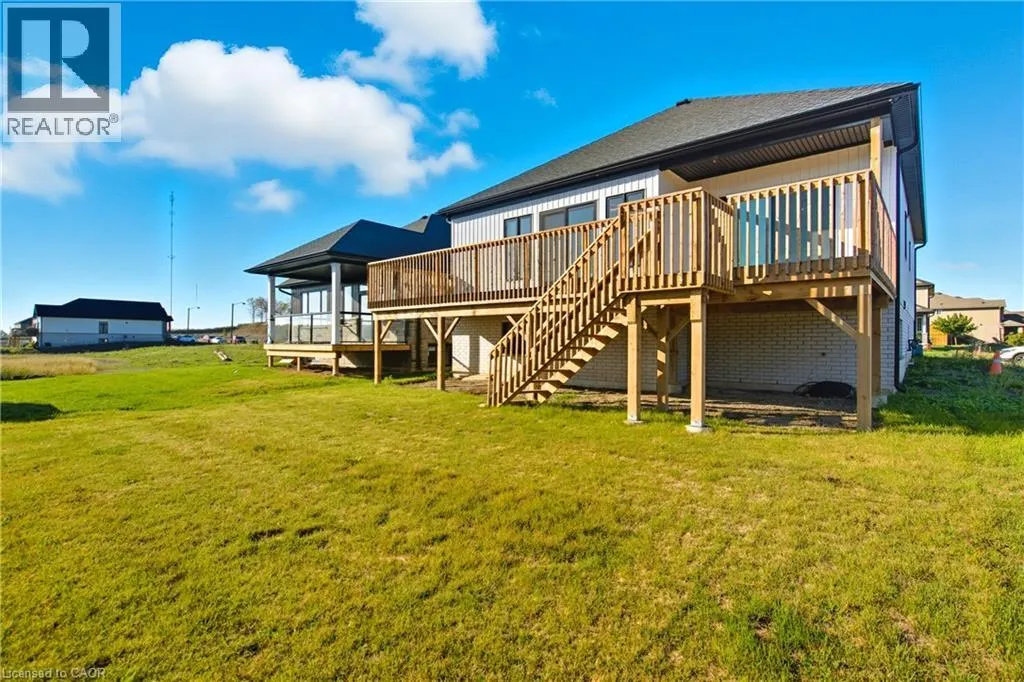 Hudson Dr to Pike Creek Dr Welcome to this beautifully crafted custom bungalow, where quality construction and thoughtful design shine throughout. Offering nearly 3,000 sq. ft. of finished living space, this home combines comfort and elegance in every detail. The main level features a bright, open-concept layout centered around a stunning floor-to-ceiling fireplace, perfect for cozy evenings. The modern kitchen includes a large island, upgraded white cabinetry, and walkout access to an elevated deck overlooking the picturesque backyard. The primary suite provides a true sense of retreat with a walk-in closet and luxurious ensuite complete with a soaker tub and glass shower. The fully finished lower level adds incredible versatility with a private in-law suite featuring high ceilings, oversized windows, a stylish kitchen, spacious bedroom, and full bathroom â ideal for multi-generational living or guests. Set in a peaceful area near the Grand River and Taquanyah Conservation Area, this property offers a perfect balance of tranquility and convenience, surrounded by nature and outdoor recreation. A must-see for those seeking space, style, and serenity all in one beautiful home! (id:27476)