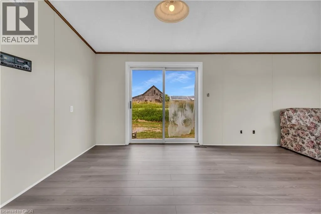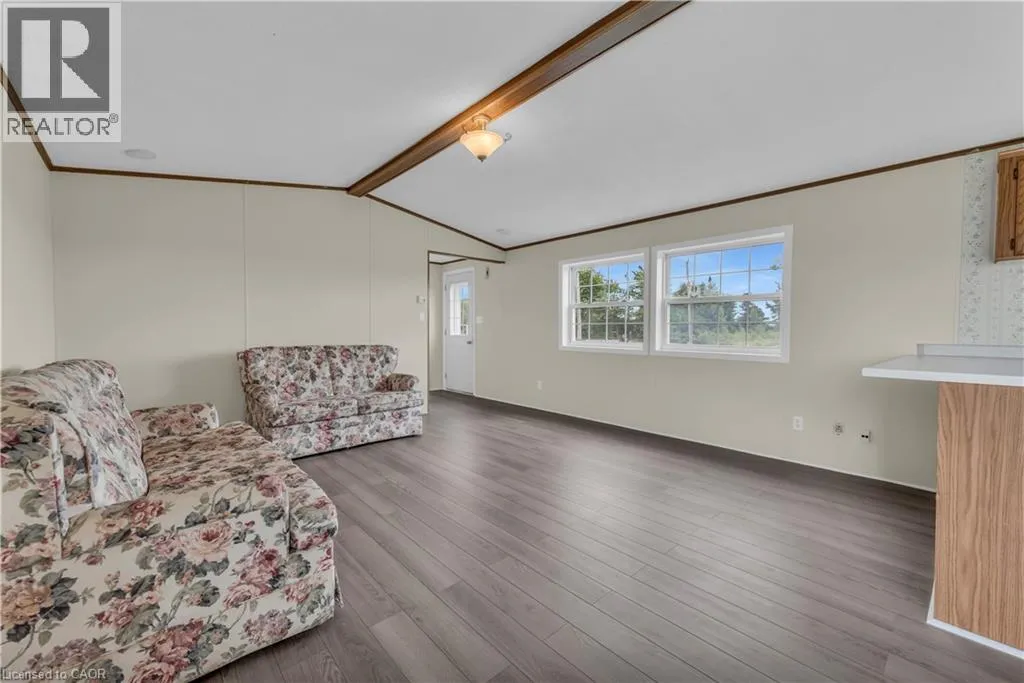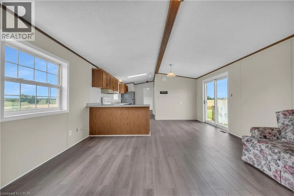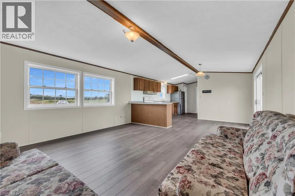 Follow Highway 56 S from Hamilton, turn East (left) on Concession 1 Road South Have house prices been getting you depressed - and you just canât find affordable housing anywhere - well itâs time to check out this beautifully renovated 1,175 sq ft modular home offering metal clad exterior, 2x6 perimeter wall construction, insulated under floors/walls/attic includes new roof covering-2024, low maintenance vinyl flooring through-out-2024 plus natural gas furnace/AC-2024. This original owner unit introduces functional, uncomplicated floor plan includes convenient front & rear foyer continues to open concept kitchen ftrs oak cabinetry, adjacent dinette enjoying patio door walk-out, spacious/bright living room boasting vaulted ceilings & oversized picture window, large primary bedroom incs 3pc en-suite & double door closet, roomy guest bedroom, 4pc main bath & desired main level laundry room. This vacant unit is currently located at 1141 Concession 1 Road South, Cayuga - for easy viewing. The perfect âMove-In-Readyâ unit suitable for a trailer park of your choice - economic auxiliary home option - or ideal venue for large farmers requiring housing for off-shore/migrant workers. (id:27476)