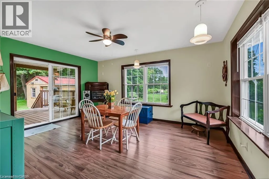 Turn left (east) onto Highway 54 toward Cayuga, turn right onto Townline Road E. Take your first left onto Courish Lane â follow it to 29 Courish Lane, it will be on your left-hand side. If youâre seeking peace and quiet with Grand River access just 30 minutes from Hamilton on land you co-own, this well-maintained 2-bedroom 4 season home in the Courish Community is must-see. Offering over 1000 sq. ft. of comfortable living space, it features an open-concept kitchen and living room, a bright dining/sunroom addition, a 4-piece bath, and convenient laundry area. Enjoy two covered patios, perfect for relaxing or entertaining, surrounded by mature trees, perennial gardens, a covered front porch and a firepit in the large yard. Vinyl siding with wood board and batten accents, forced-air propane heat, and two multipurpose sheds provide both function and charm. Situated within a unique 10.93-acre cooperative offering over 800 feet of Grand River frontage, residents share access to maintained roadways, common areas, and waterfront for an annual fee of $120.00. Approximately 33 homes make up this friendly enclave, where affordable taxes and upkeep are collectively managed through the association. A truly serene setting just minutes north of Cayuga â where nature and community meet. (id:27476)