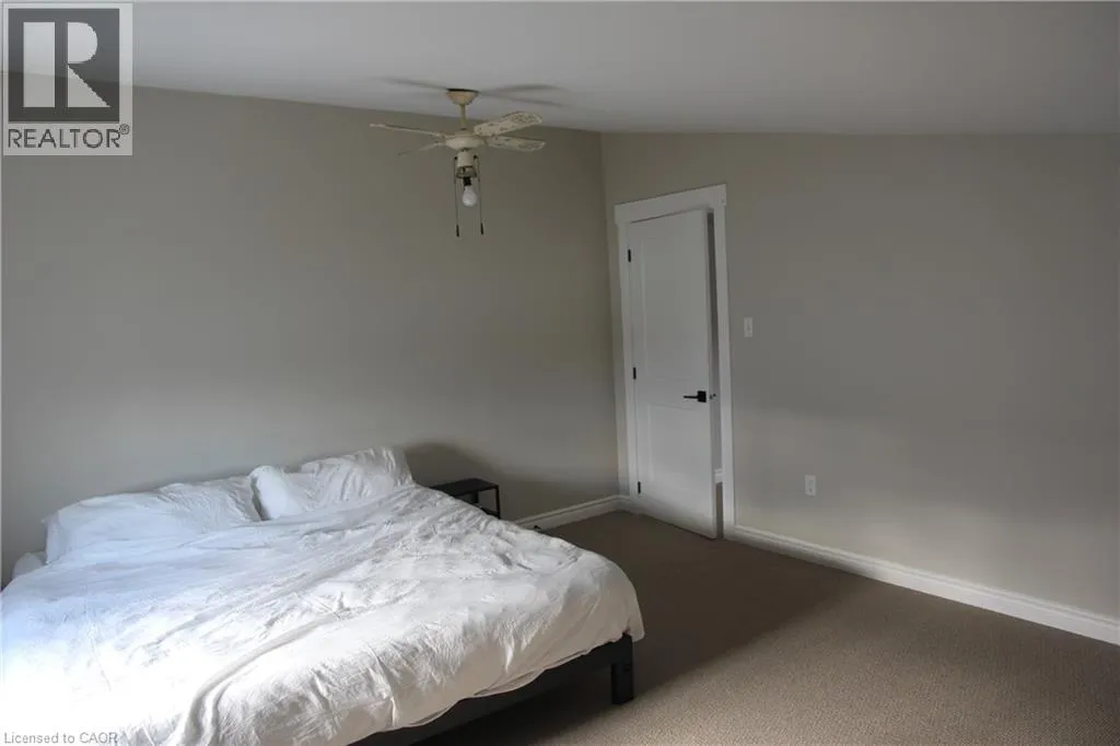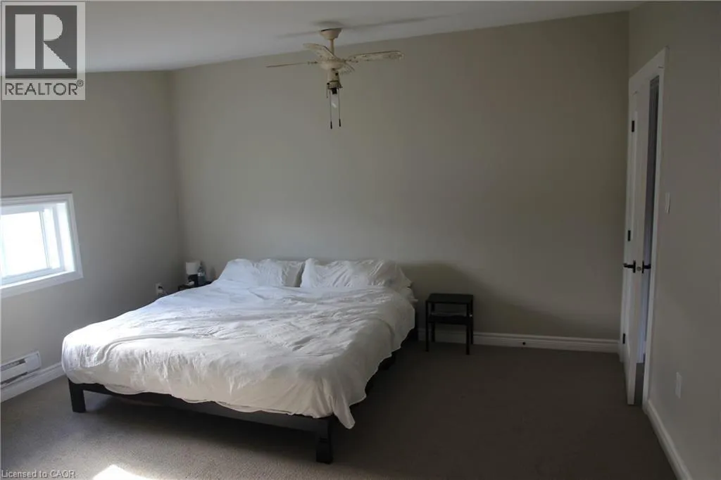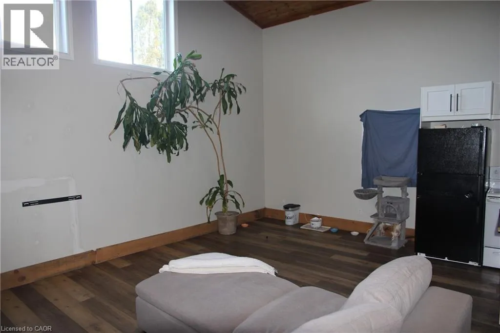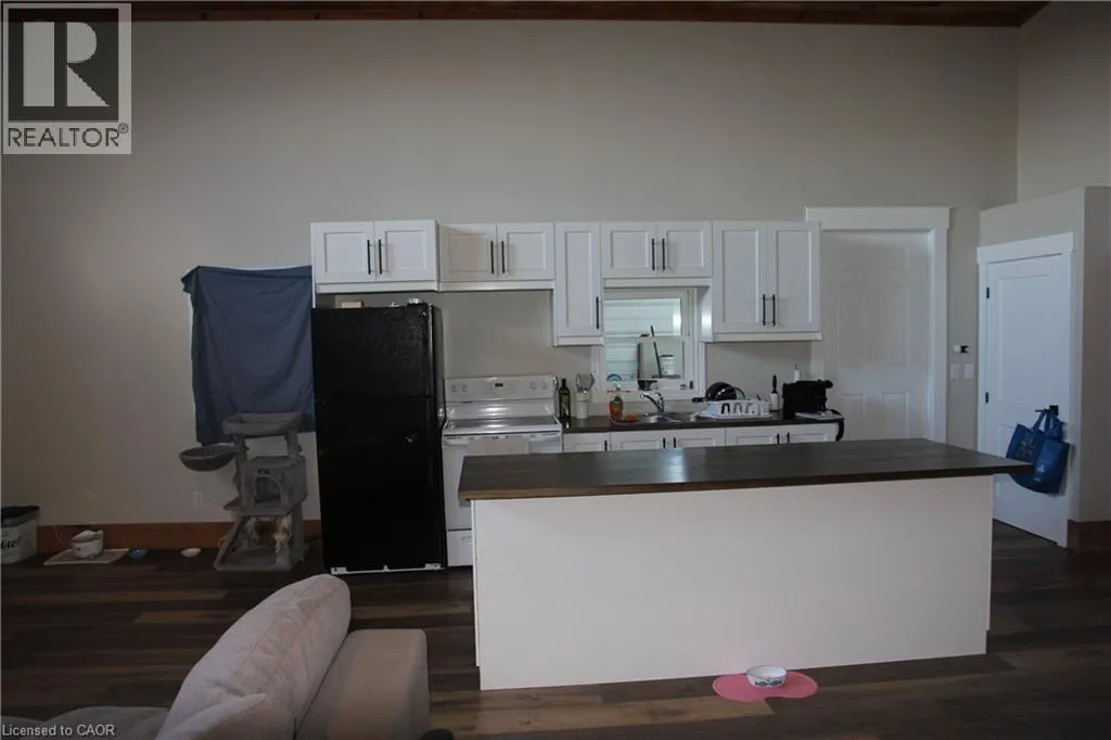 Highway 3 from Cayuga, through Decewsville, property on left on corner of Dry Lake Road and Highway 3 Welcome to this spacious home features two bedrooms, a full bathroom, and a private foyer that opens into a modern open-concept kitchen with a central island. The expansive living and dining area is highlighted by elegant wood wainscoting and soaring vaulted ceilings, creating a warm and welcoming atmosphere. A stylish 4-piece bathroom includes the convenience of in-suite laundry. The main floor offers a comfortable bedroom, while the upper level serves as a private primary bedroom retreat. (id:27476)