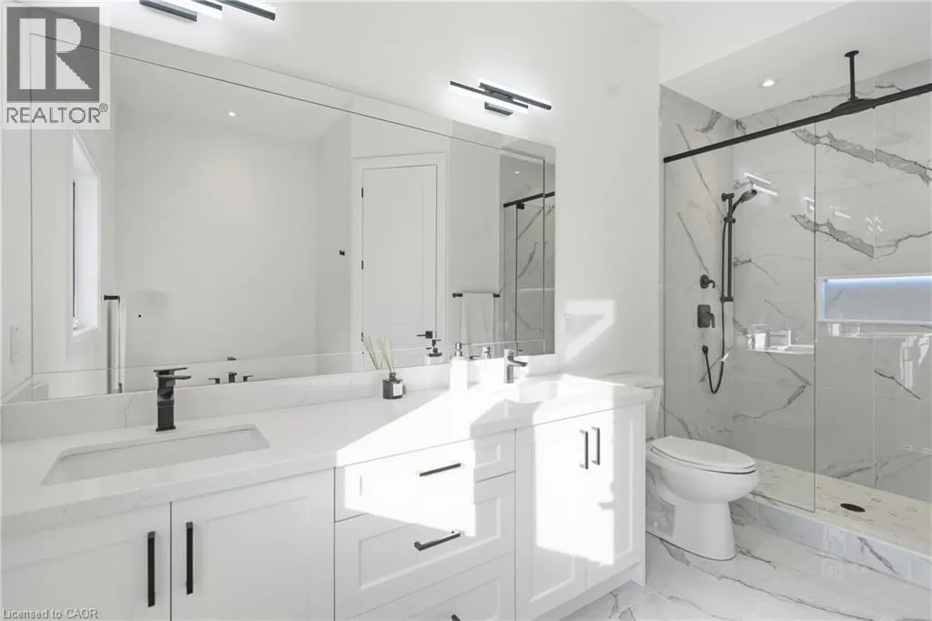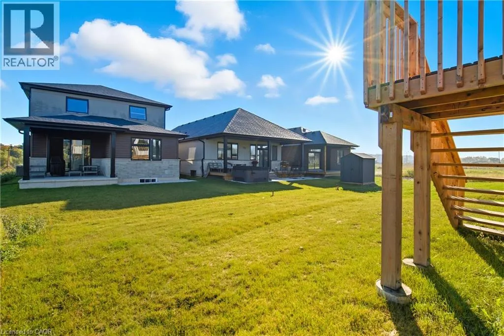 Hudson Dr to Pike Creek Dr Welcome to this beautifully crafted custom bungalow, where quality construction and thoughtful design shine throughout. Offering nearly 3,000 sq. ft. of finished living space, this home combines comfort and elegance in every detail. The main level features a bright, open-concept layout centered around a stunning floor-to-ceiling fireplace, perfect for cozy evenings. The modern kitchen includes a large island, upgraded white cabinetry, and walkout access to an elevated deck overlooking the picturesque backyard. The primary suite provides a true sense of retreat with a walk-in closet and luxurious ensuite complete with a soaker tub and glass shower. The fully finished lower level adds incredible versatility with a private in-law suite featuring high ceilings, oversized windows, a stylish kitchen, spacious bedroom, and full bathroom â ideal for multi-generational living or guests. Set in a peaceful area near the Grand River and Taquanyah Conservation Area, this property offers a perfect balance of tranquility and convenience, surrounded by nature and outdoor recreation. A must-see for those seeking space, style, and serenity all in one beautiful home! (id:27476)
