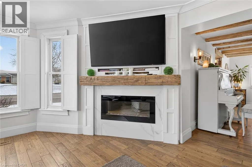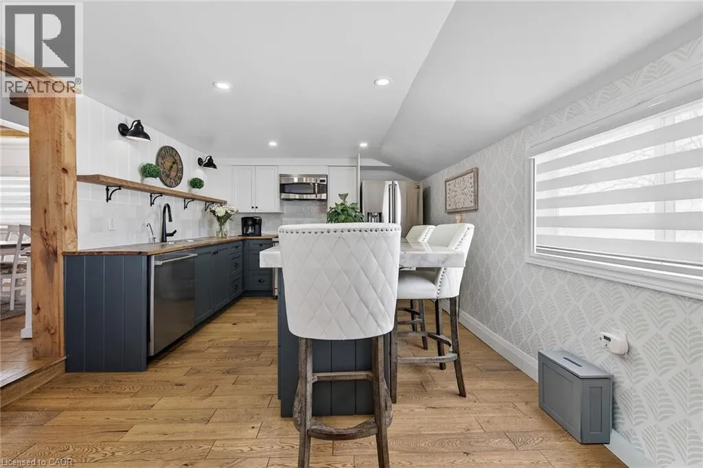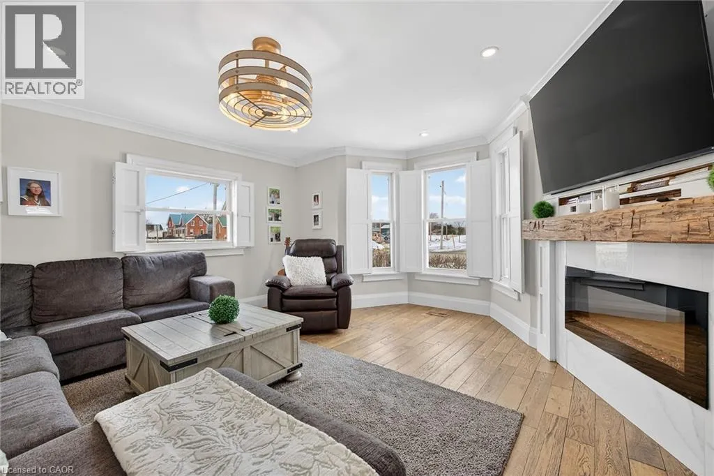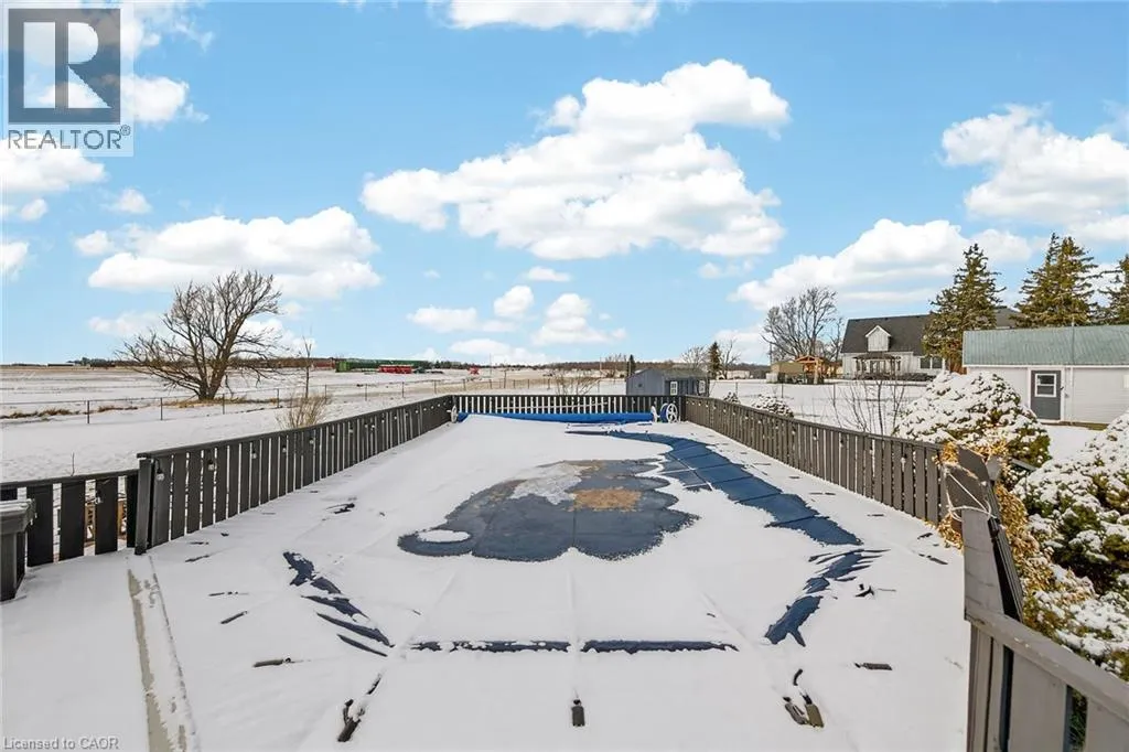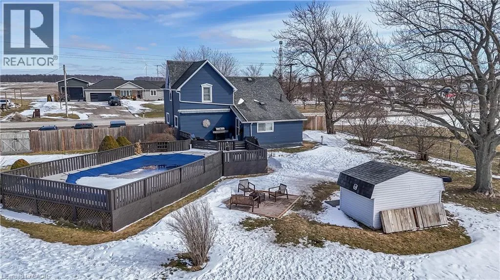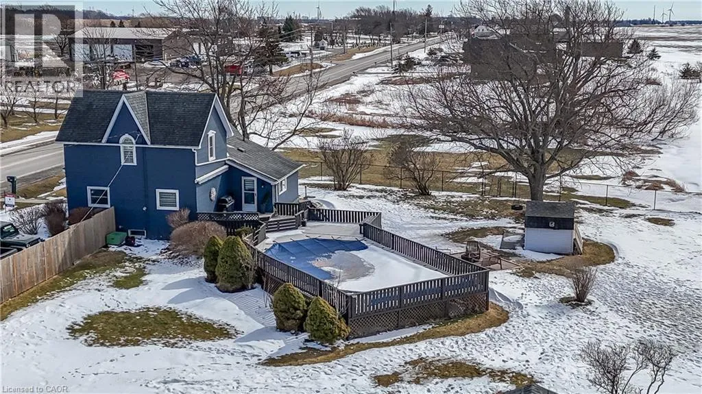 Take Highway 3 West to Kohler Rd. Turn left. Property is on the right hand side in Hamlet of Kohler Welcome to the quaint Hamlet of Kohler just minutes south of Cayuga. This tastefully renovated character home in a country setting offers an updated farmhouse appeal complete with hardwood floors throughout, newer windows, new window treatments and fresh paint and decor. The living room boasts a marble fireplace with wooden beam mantle, a bay style front window with custom wood shutter doors. Enjoy family dinners in the large dining room complete with wood beam ceilings. The kitchen offers lots of storage, quartz island counter top, stainless steel appliances, with a butcher block counter and a walkout to the large deck wrapping around an on ground pool where you can enjoy the evening sunsets across the field. Two storage sheds, completely fenced in yard and a bonfire patio area make this the perfect back yard oasis. New 6 car driveway (2025) plus detached oversized single garage with additional parking for 4 cars. New exterior paint and window cappings (2025) .This property is full of character and a definite must see! (id:27476)