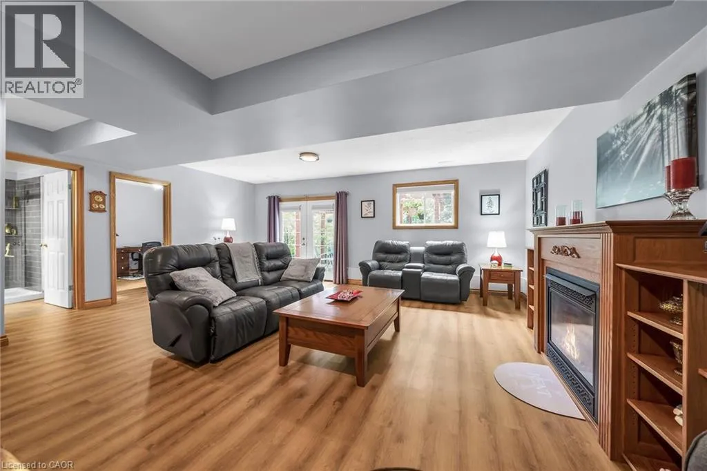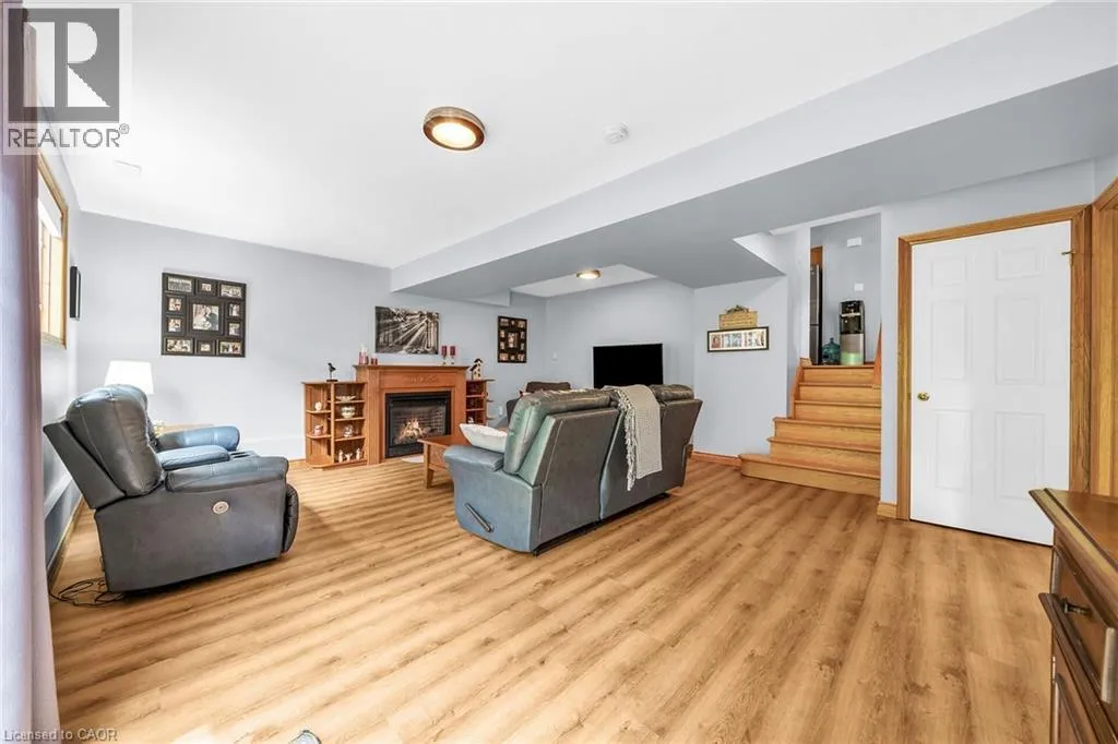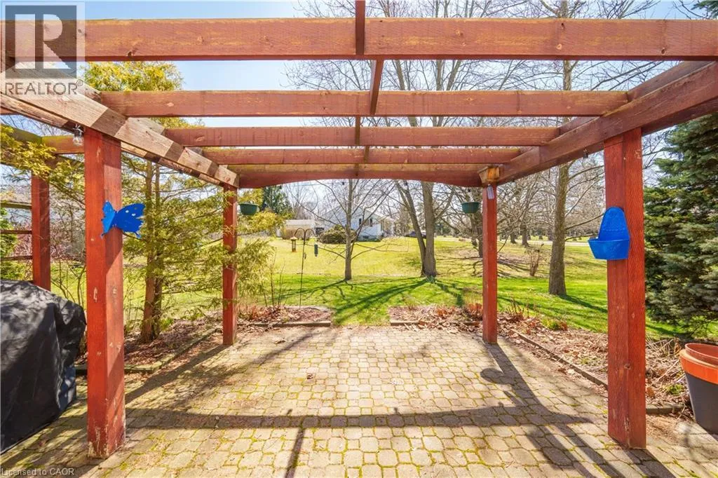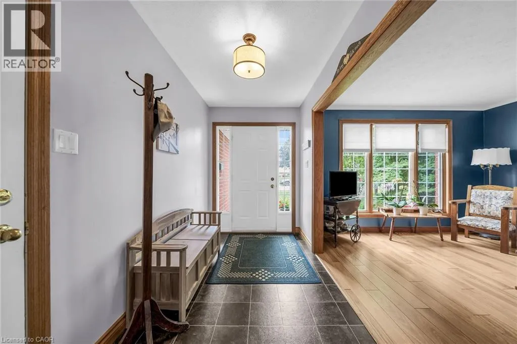 Thorburn Street S to West on Chippewa Street E to LEFT on Seneca Street to LEFT on Princess Street W Experience small town Ontario living in this well maintained, tastefully presented, carpet free 4 level back-split fronting on quiet mature, tree-lined street - located in popular neighborhood in Cayugaâs preferred south quadrant. Walking distance to schools, churches, newer arena/walking track complex, ball park, downtown shops/eateries, boat launch & beautiful parks dotting the Grand River shoreline - 30 mins commute to Hamilton, Brantford & 403. Positioned proudly on 0.18ac (59x132) landscaped treed lot is 1994 quality built brick/sided home incs 3 finished levels + unspoiled lowest floor. Welcoming x-wide foyer foyer introduces over 2,000sf of beautifully presented living area ftrs bright living room enjoying street facing picture window, updated oak kitchen sporting convenient island, granite countertops, tile backsplash, newer SS appliances & adjacent dining area. Oak stairs ascend to 3 bedroom upper level ftrs chicly designed 5pc bath-2021 boasting quartz top double sink vanity. Relax or entertain in inviting confines of mid-level family room enhanced w/ambience of n/g fireplace incs garden door walk-out to 12x12 paver stone patio enhanced w/stylish wood pergola - continues w/4th bedroom & tastefully remodelled 3pc bath-2018. Need more space - hi/dry lowest level is ready & waiting for personal finish - requiring minimal monies to renovate & increase living area - currently housing n/g furnace-2018 equipped w/new AC-2024, remaining mechanicals & laundry station. Premium low maintenance flooring compliment the interior's neutral décor w/distinct flair. Paved double driveway, stylish brick frontal façade, paver stone walk-way/front landing & new eaves/gutter guards in 2025 enhance street appeal. Discover GRAND Living - Cayuga Style! (id:27476)