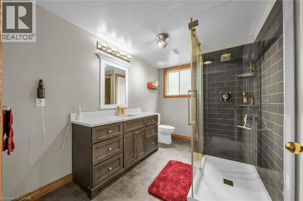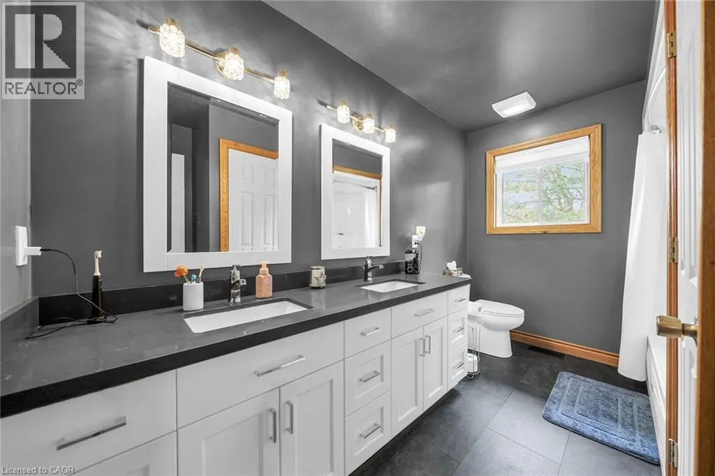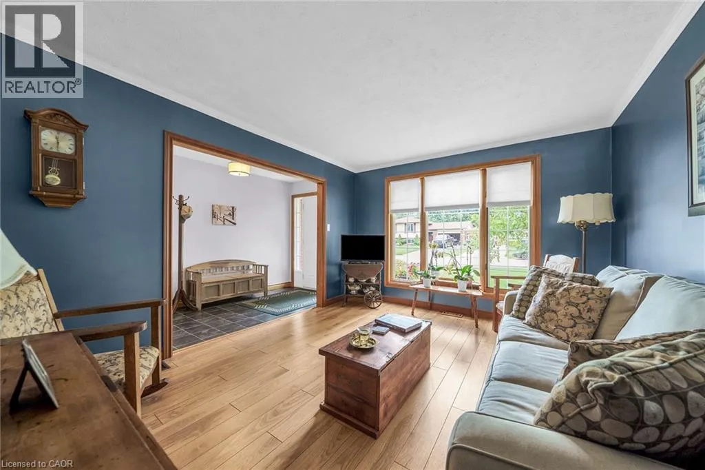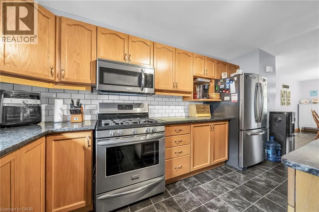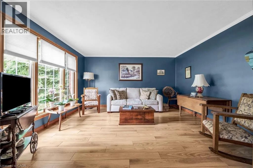 Thorburn Street S to West on Chippewa Street E to LEFT on Seneca Street to LEFT on Princess Street W Experience small town Ontario living in this well maintained, tastefully presented, carpet free 4 level back-split fronting on quiet mature, tree-lined street - located in popular neighborhood in Cayugaâs preferred south quadrant. Walking distance to schools, churches, newer arena/walking track complex, ball park, downtown shops/eateries, boat launch & beautiful parks dotting the Grand River shoreline - 30 mins commute to Hamilton, Brantford & 403. Positioned proudly on 0.18ac (59x132) landscaped treed lot is 1994 quality built brick/sided home incs 3 finished levels + unspoiled lowest floor. Welcoming x-wide foyer foyer introduces over 2,000sf of beautifully presented living area ftrs bright living room enjoying street facing picture window, updated oak kitchen sporting convenient island, granite countertops, tile backsplash, newer SS appliances & adjacent dining area. Oak stairs ascend to 3 bedroom upper level ftrs chicly designed 5pc bath-2021 boasting quartz top double sink vanity. Relax or entertain in inviting confines of mid-level family room enhanced w/ambience of n/g fireplace incs garden door walk-out to 12x12 paver stone patio enhanced w/stylish wood pergola - continues w/4th bedroom & tastefully remodelled 3pc bath-2018. Need more space - hi/dry lowest level is ready & waiting for personal finish - requiring minimal monies to renovate & increase living area - currently housing n/g furnace-2018 equipped w/new AC-2024, remaining mechanicals & laundry station. Premium low maintenance flooring compliment the interior's neutral décor w/distinct flair. Paved double driveway, stylish brick frontal façade, paver stone walk-way/front landing & new eaves/gutter guards in 2025 enhance street appeal. Discover GRAND Living - Cayuga Style! (id:27476)