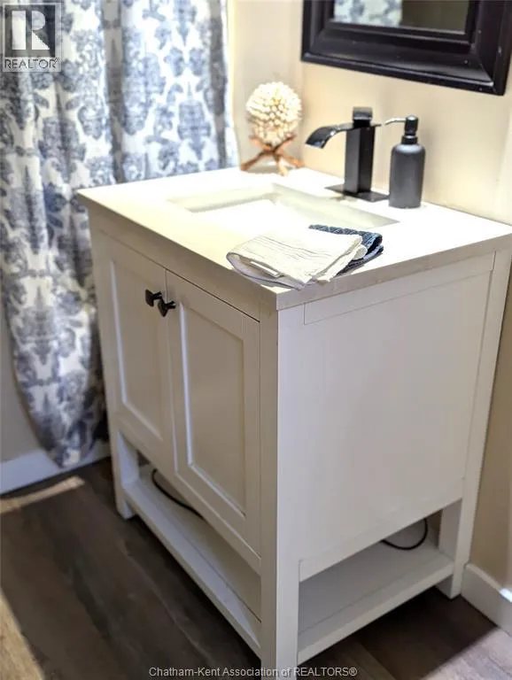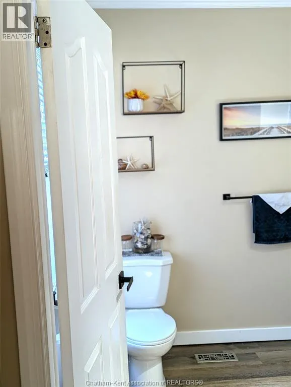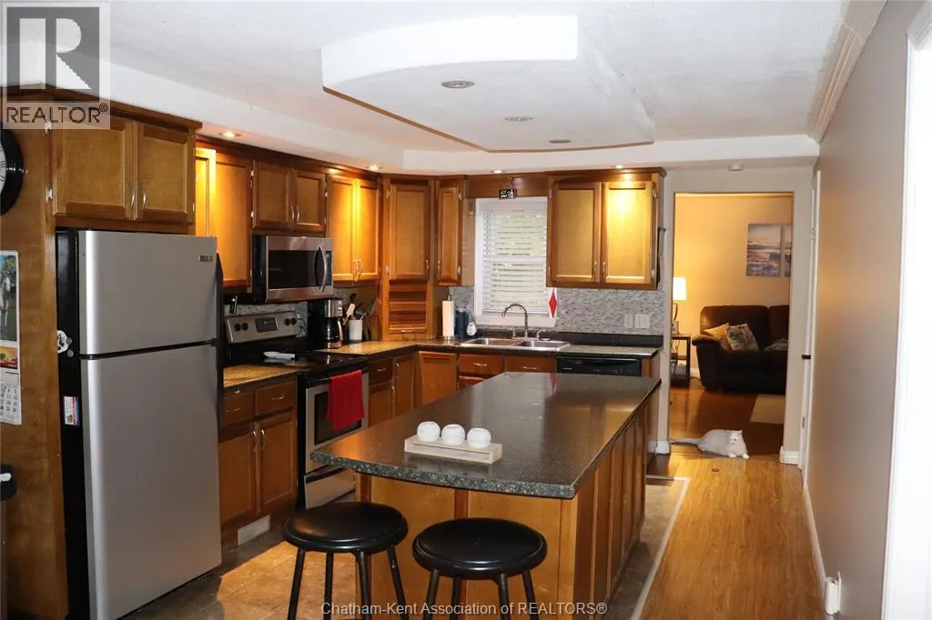 south from Cedar Springs on Charing Cross Rd on west side near Water St. This home is located in Cedar Springs just 1 KM from the shores of Lake Erie at Erie Beach. Its a 10 minute drive to Erieau , 5 minutes to Blenheim, and 15 minutes to Chatham. Situated on a treed lot is this 1-1/4 storey home. This updated home with attached 2 car garage is in good condition with many updates over the past few years. There is a good sized kitchen and eating area, oversized living room, bedroom, laundry room and a vestibule from the garage entrance. The upper level is fully the primary bedroom. There is a patio door from living room leading onto a pressure treated deck. The back yard is large combination shade and sun and has a firepit. It is partial fenced. The exterior siding is vinyl and aluminum. (id:27476)