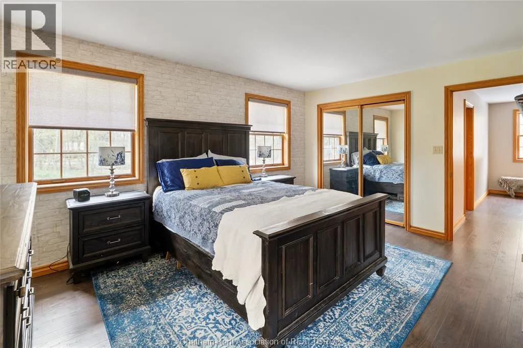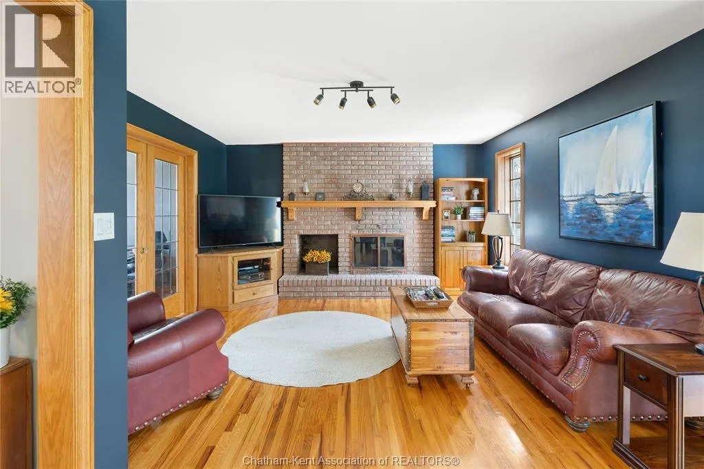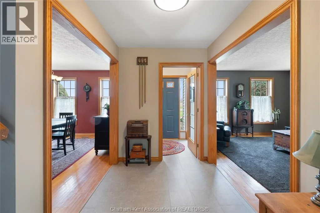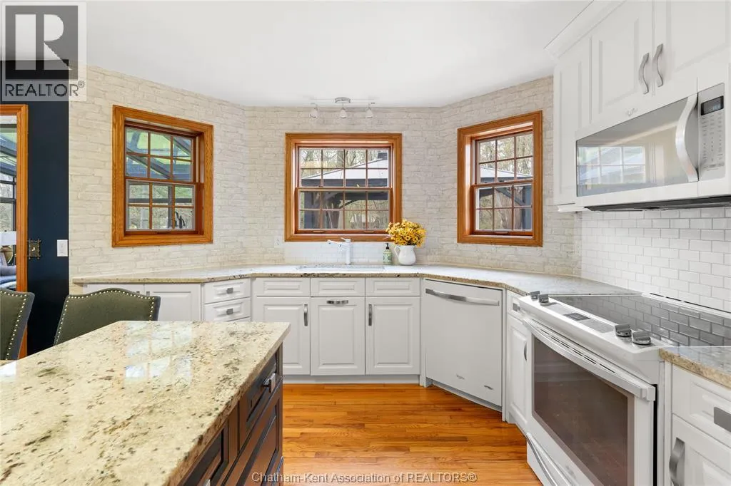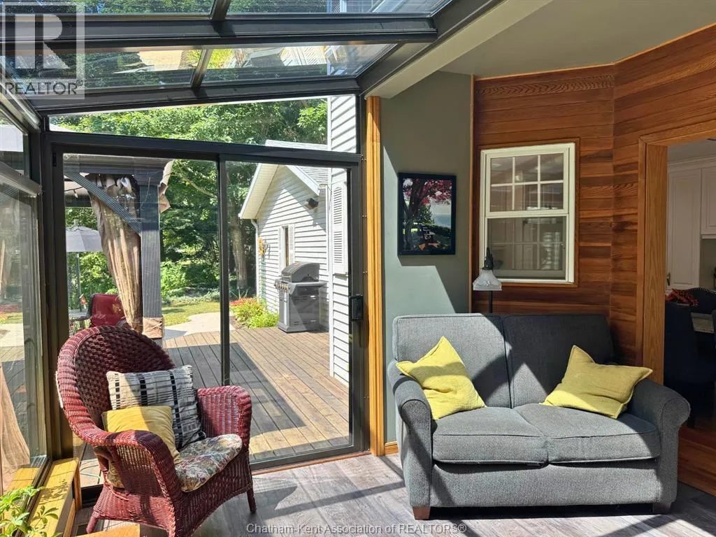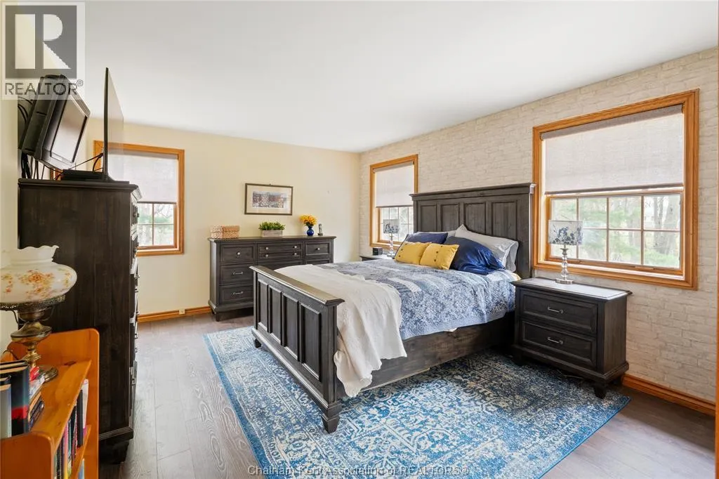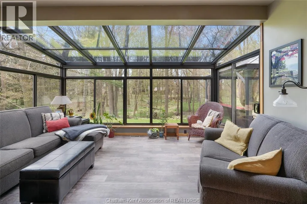 Heading west from Blenheim on Talbot Trail, turn left onto Douglas Road. Home is located on the right hand side. Welcome to 19196 Douglas Road â a beautiful 2-storey colonial-style home nestled in the peaceful and sought-after Sleepy Hollow community, just minutes from Lake Erie and downtown Blenheim. This lovingly maintained property sits on a lush, tree-lined 1-acre lot and offers 4 spacious bedrooms, 2.5 bathrooms including a private ensuite with laundry, and a bright 4-season sunroom overlooking a backyard filled with nature. The updated kitchen features granite countertops, a large island, and flows seamlessly into the cozy living room with a wood-burning fireplace. Enjoy a formal dining area, oversized front family room, and a convenient 2-piece bathroom just off the attached double garage. The partially finished basement offers flex space perfect for a rec room, home gym, or studio. With geothermal heating, mature landscaping, and charming curb appeal, this property blends rural tranquility with comfort and style. A rare gem in one of Blenheimâs best pockets! (id:27476)