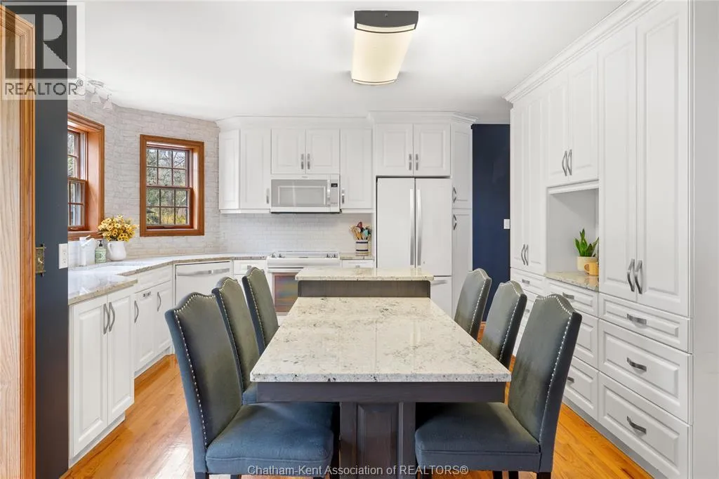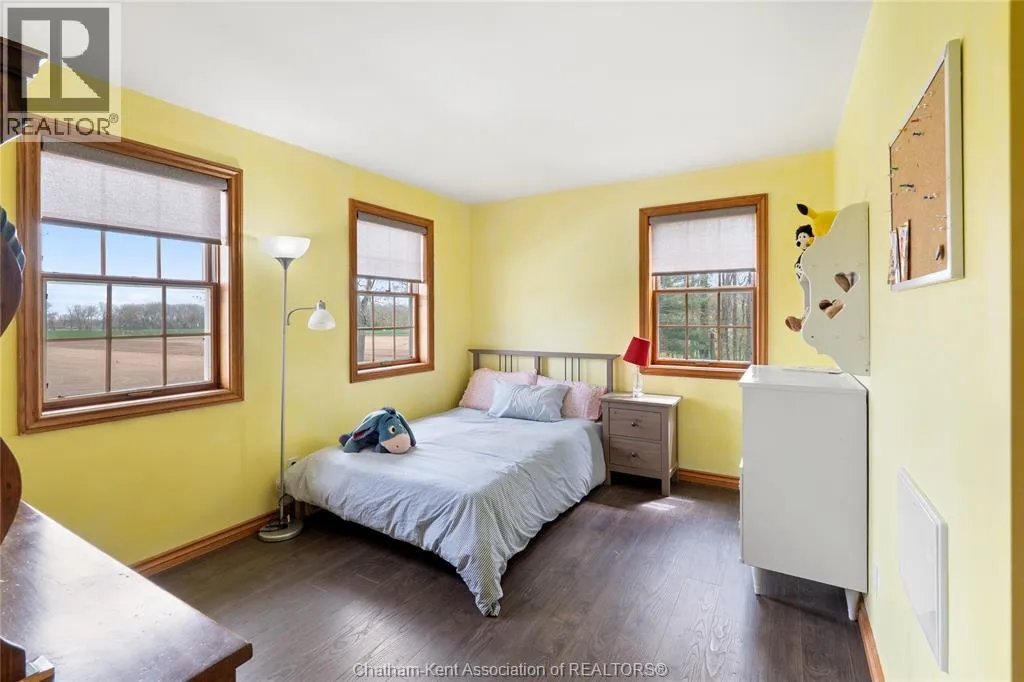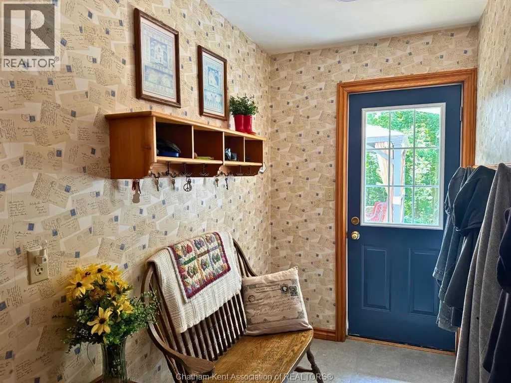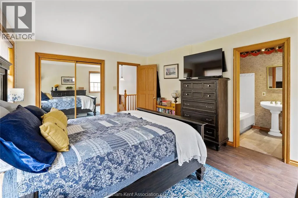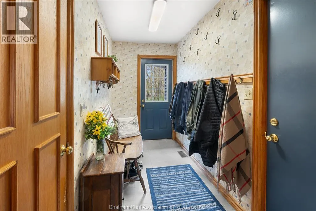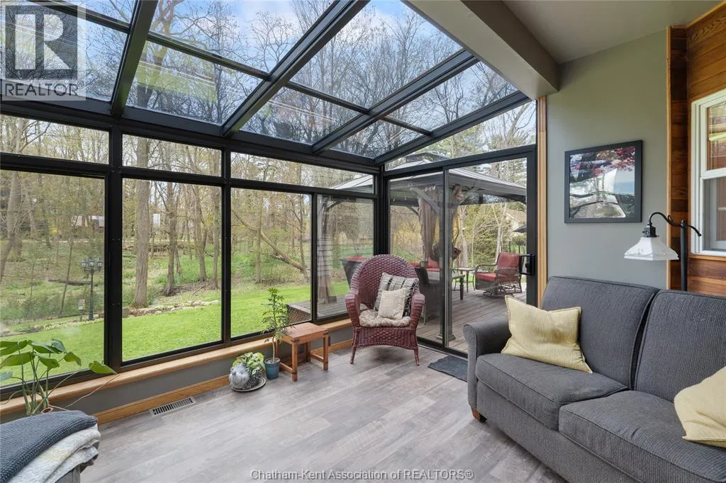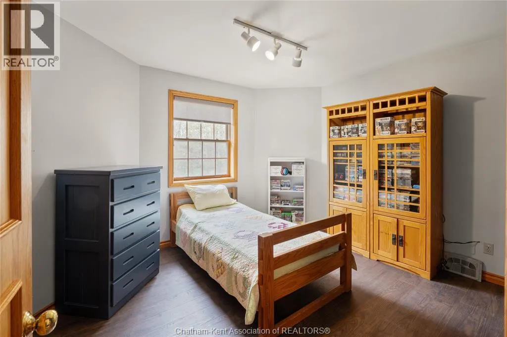 Heading west from Blenheim on Talbot Trail, turn left onto Douglas Road. Home is located on the right hand side. Welcome to 19196 Douglas Road â a beautiful 2-storey colonial-style home nestled in the peaceful and sought-after Sleepy Hollow community, just minutes from Lake Erie and downtown Blenheim. This lovingly maintained property sits on a lush, tree-lined 1-acre lot and offers 4 spacious bedrooms, 2.5 bathrooms including a private ensuite with laundry, and a bright 4-season sunroom overlooking a backyard filled with nature. The updated kitchen features granite countertops, a large island, and flows seamlessly into the cozy living room with a wood-burning fireplace. Enjoy a formal dining area, oversized front family room, and a convenient 2-piece bathroom just off the attached double garage. The partially finished basement offers flex space perfect for a rec room, home gym, or studio. With geothermal heating, mature landscaping, and charming curb appeal, this property blends rural tranquility with comfort and style. A rare gem in one of Blenheimâs best pockets! (id:27476)