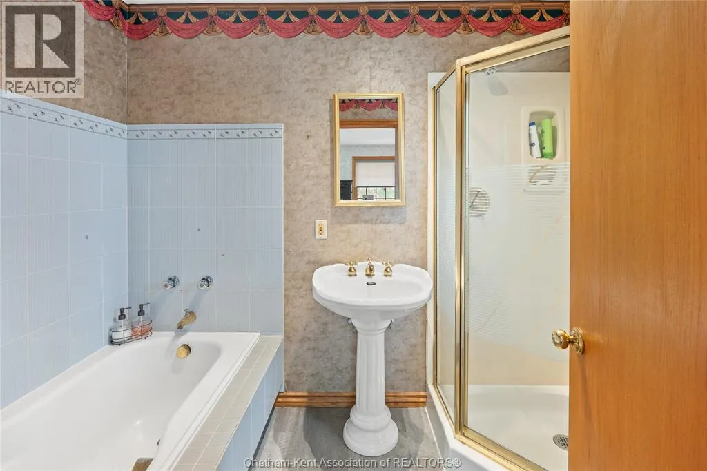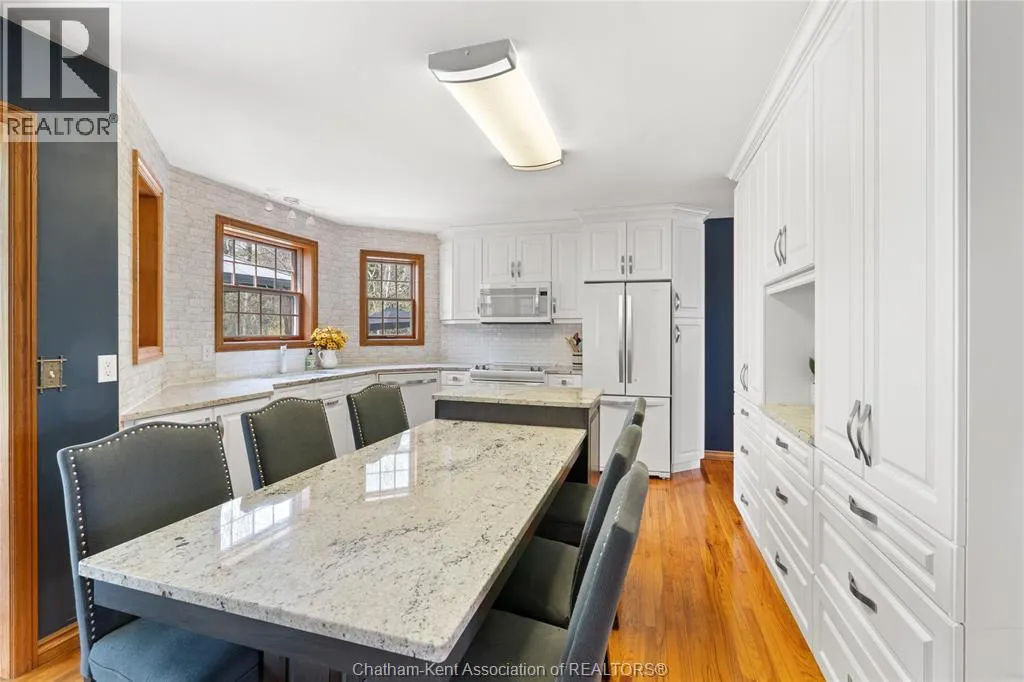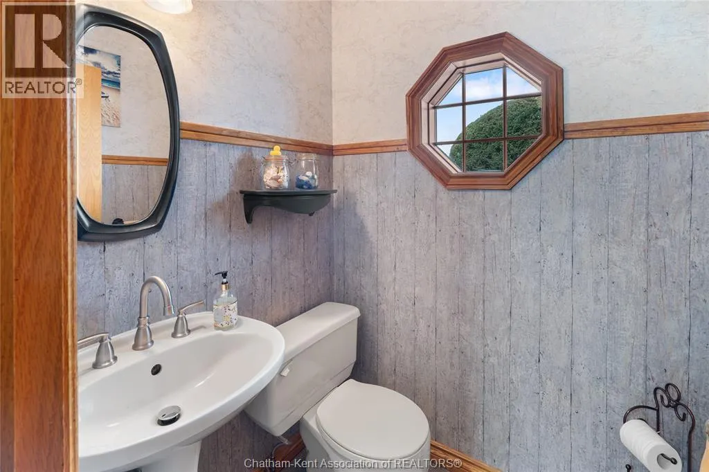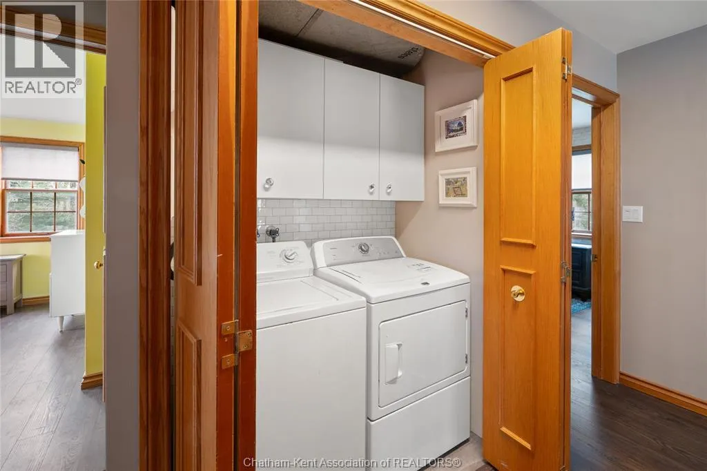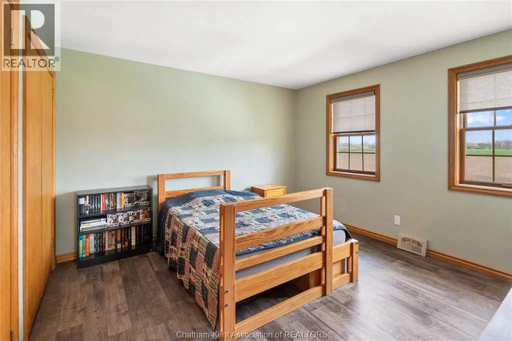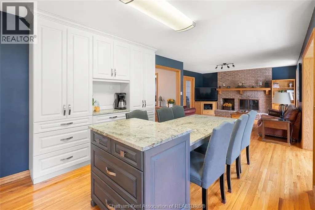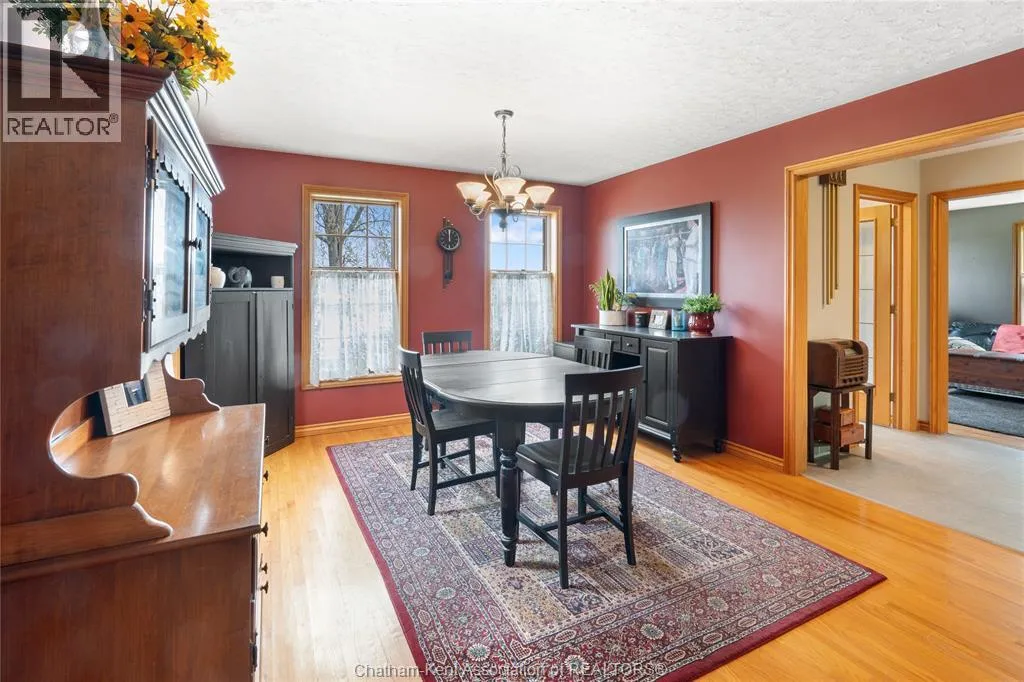 Heading west from Blenheim on Talbot Trail, turn left onto Douglas Road. Home is located on the right hand side. Welcome to 19196 Douglas Road â a beautiful 2-storey colonial-style home nestled in the peaceful and sought-after Sleepy Hollow community, just minutes from Lake Erie and downtown Blenheim. This lovingly maintained property sits on a lush, tree-lined 1-acre lot and offers 4 spacious bedrooms, 2.5 bathrooms including a private ensuite with laundry, and a bright 4-season sunroom overlooking a backyard filled with nature. The updated kitchen features granite countertops, a large island, and flows seamlessly into the cozy living room with a wood-burning fireplace. Enjoy a formal dining area, oversized front family room, and a convenient 2-piece bathroom just off the attached double garage. The partially finished basement offers flex space perfect for a rec room, home gym, or studio. With geothermal heating, mature landscaping, and charming curb appeal, this property blends rural tranquility with comfort and style. A rare gem in one of Blenheimâs best pockets! (id:27476)