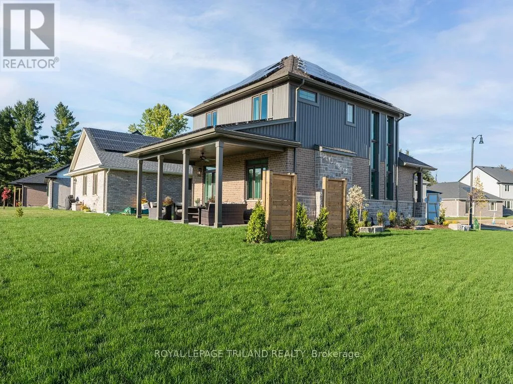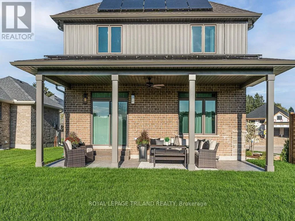 Cross Streets: Southdale Road. ** Directions: From Southdale Road, turn onto Snowy Owl Trail. This Doug Tarry built NET ZERO, all electric home, will wow you with stunning craftsmanship & energy efficiency features including solar panels. A net zero home is a house that produces as much energy as it consumes on an annual basis. That means over the course of a year, the home's energy production equals or exceeds its energy consumption.At 2,123 sq.ft. this 2-storey home with completed lower level is designed with family in mind. The open concept main floor features a generous great room and dining area, and beautiful custom kitchen cabinetry and quartz countertops.The bold fireplace in the great room complements the modern but classic finishes. And step outside to the beautiful covered area complete with stamped concrete pad. The custom oak staircase with large windows leads you to the upper level, with 3 spacious bedrooms, 2 bathrooms and laundry closet. The basement is also finished with a full rec room and wet-bar perfect for entertaining. No detail is overlooked in this former model. Doug Tarry is making it even easier to own your home! Reach out for more information regarding HOME BUYER'S PROMOTIONS!!! WELCOME HOME! (id:27476)