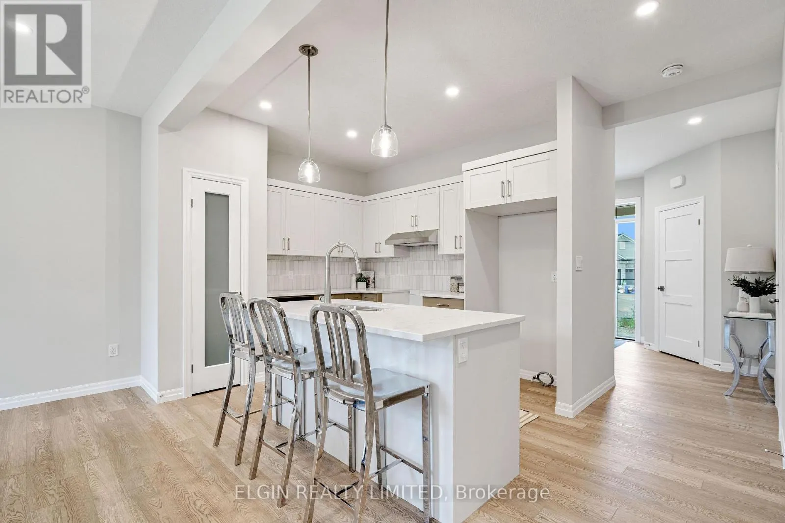Cross Streets: Wellington Rd & McBain Line. ** Directions: Wellington Rd to McBain Line, right on Watson Cres., left on Freeman Line, left on McBain, right on Columbus Court, semi on left side - builder sign on. Move-in ready and thoughtfully crafted by Hayhoe Homes, this beautifully designed 2-storey semi-detached home offers 4 bedrooms, 2.5 bathrooms, and an attached single-car garage, situated on a large pie-shaped lot at the end of a quiet cul-de-sac in the highly sought-after community of Lynhurst Heights. The open-concept main floor features 9' ceilings and luxury vinyl plank flooring throughout, with a designer kitchen boasting quartz countertops, tile backsplash, pantry, and a large central island that flows seamlessly into the great room and dining area, where patio doors lead to a rear deck overlooking green space. Upstairs, the spacious primary suite includes a walk-in closet and private 4-piece ensuite with double sinks and a walk-in shower, complemented by three additional bedrooms, a full bathroom, and a convenient second-floor laundry closet for stacked washer/dryer units. The unfinished basement offers excellent development potential for a future family room and additional bathroom. Additional highlights include a covered front porch, central air, HRV system, Tarion New Home Warranty, and numerous upgrades throughout. Taxes to be assessed. (id:27476)