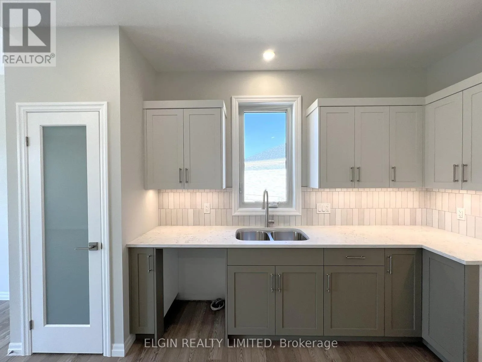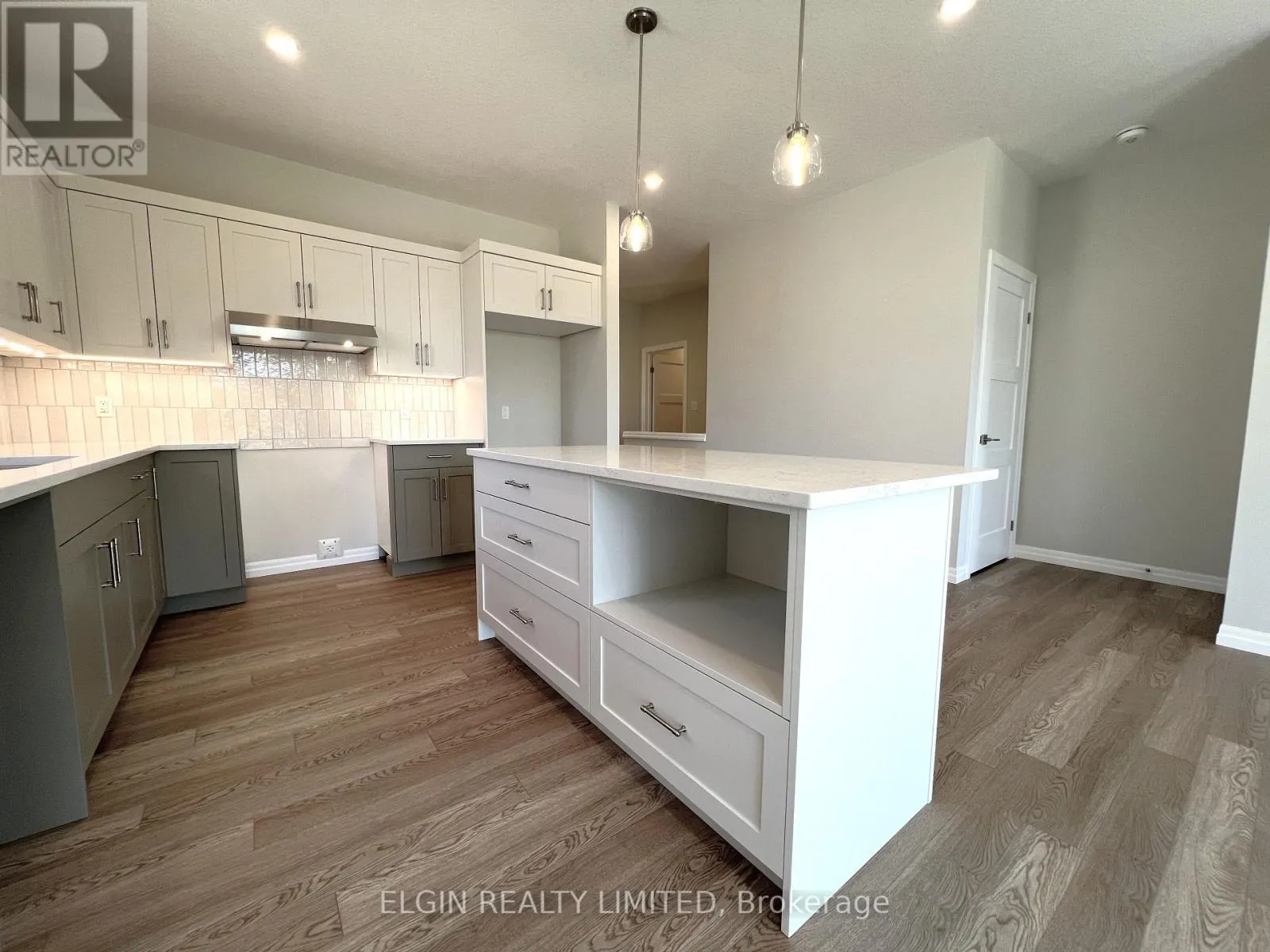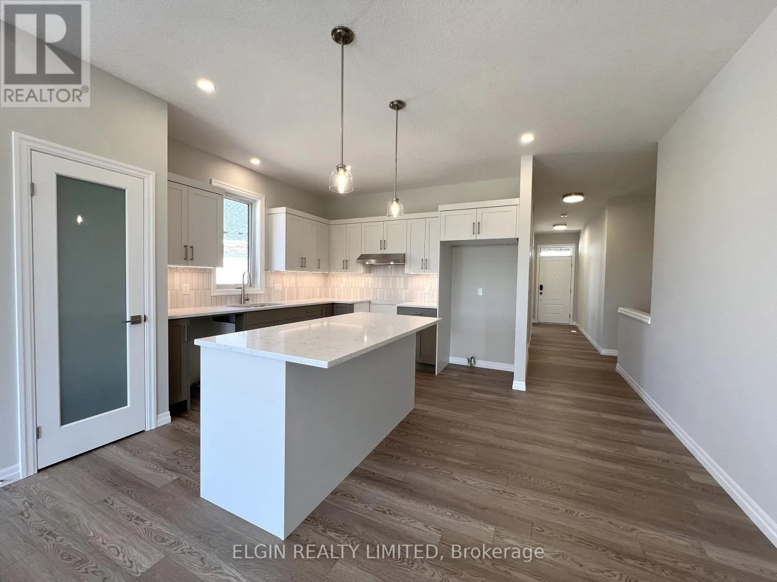 Cross Streets: Wellington Rd & McBain Line. ** Directions: Wellington Rd to McBain Line, right on Watson Cres., left on Freeman Line, left on McBain, right on Columbus Court, semi on right side of court - builder sign on. Move-in ready. This beautifully finished semi-detached bungalow built by Hayhoe Homes is situated on a pie-shaped lot on a quiet cul-de-sac in the sought-after Lynhurst Heights community. Offering open-concept, single-floor living with 2 bedrooms and 2 bathrooms, including a private 3-piece ensuite. The main floor features 9' ceilings, luxury vinyl plank flooring, and a designer kitchen with quartz countertops, tile backsplash, a central island, and pantry -- all opening to a spacious great room with a cathedral and patio door leading to a rear deck. A second bedroom, full bathroom, and laundry room complete the main floor. The unfinished basement provides development potential for a future family room, additional bedroom, and bathroom. Other features include a single-car garage, covered front porch, central air, HRV system, Tarion New Home Warranty, and numerous upgrades throughout. Ideally located with easy access to London and close to parks, shopping, and restaurants. Taxes to be assessed. (id:27476)