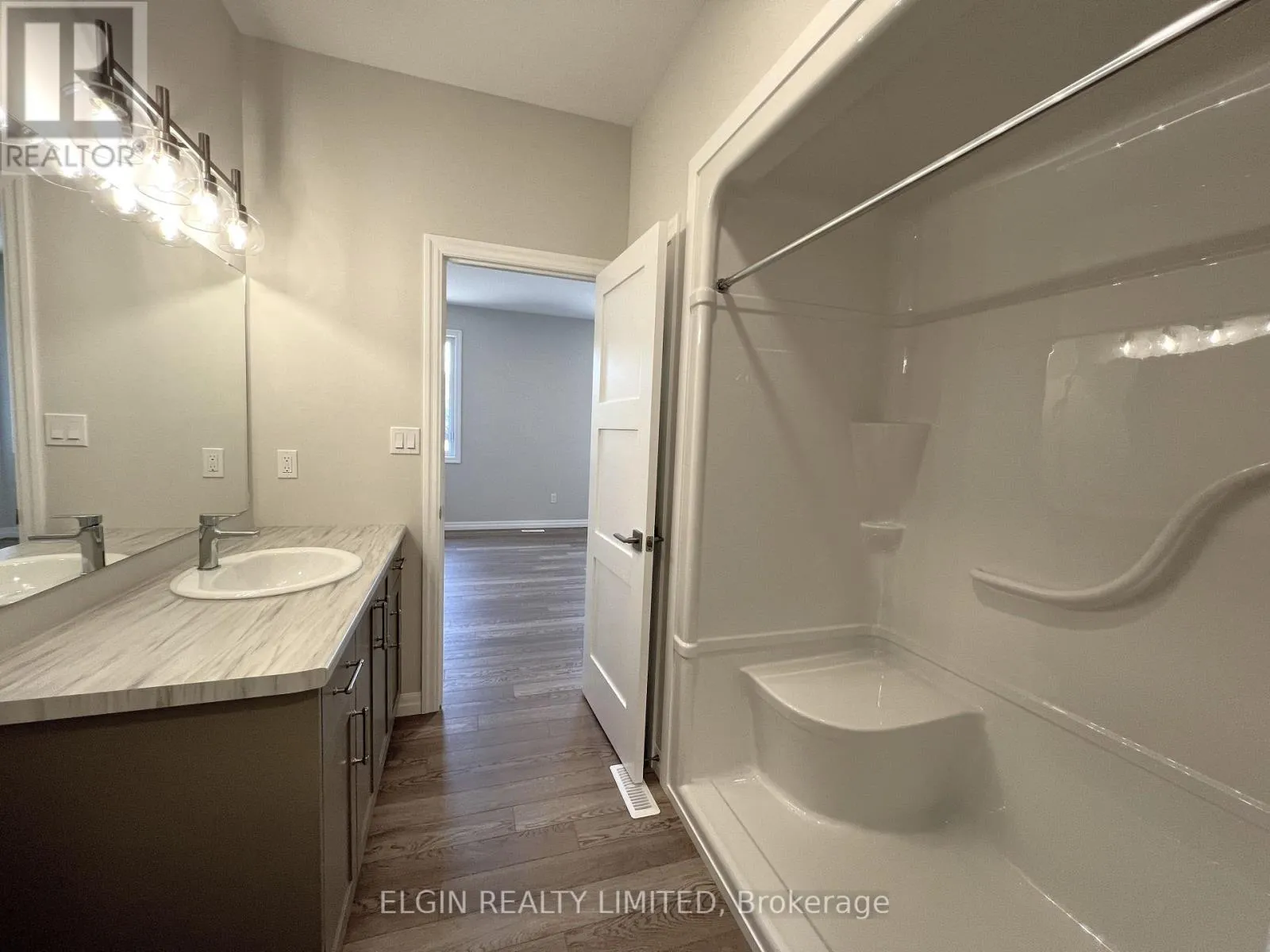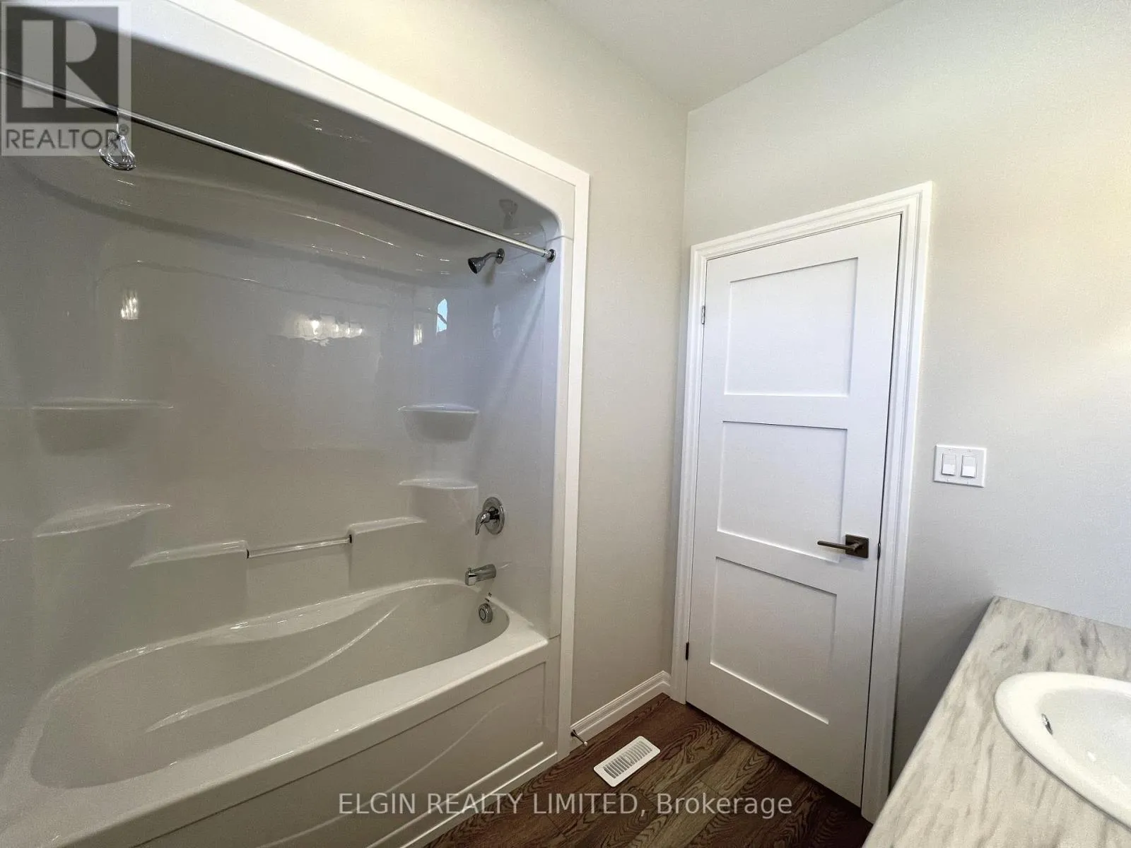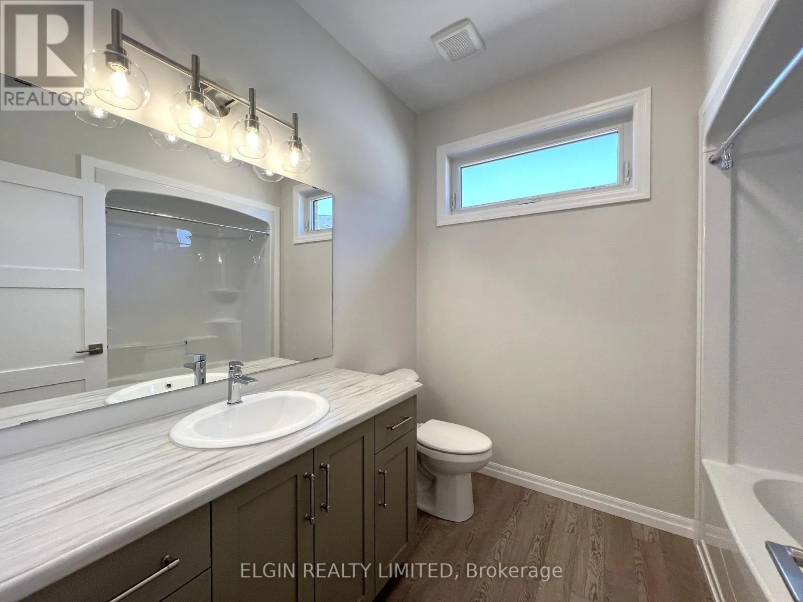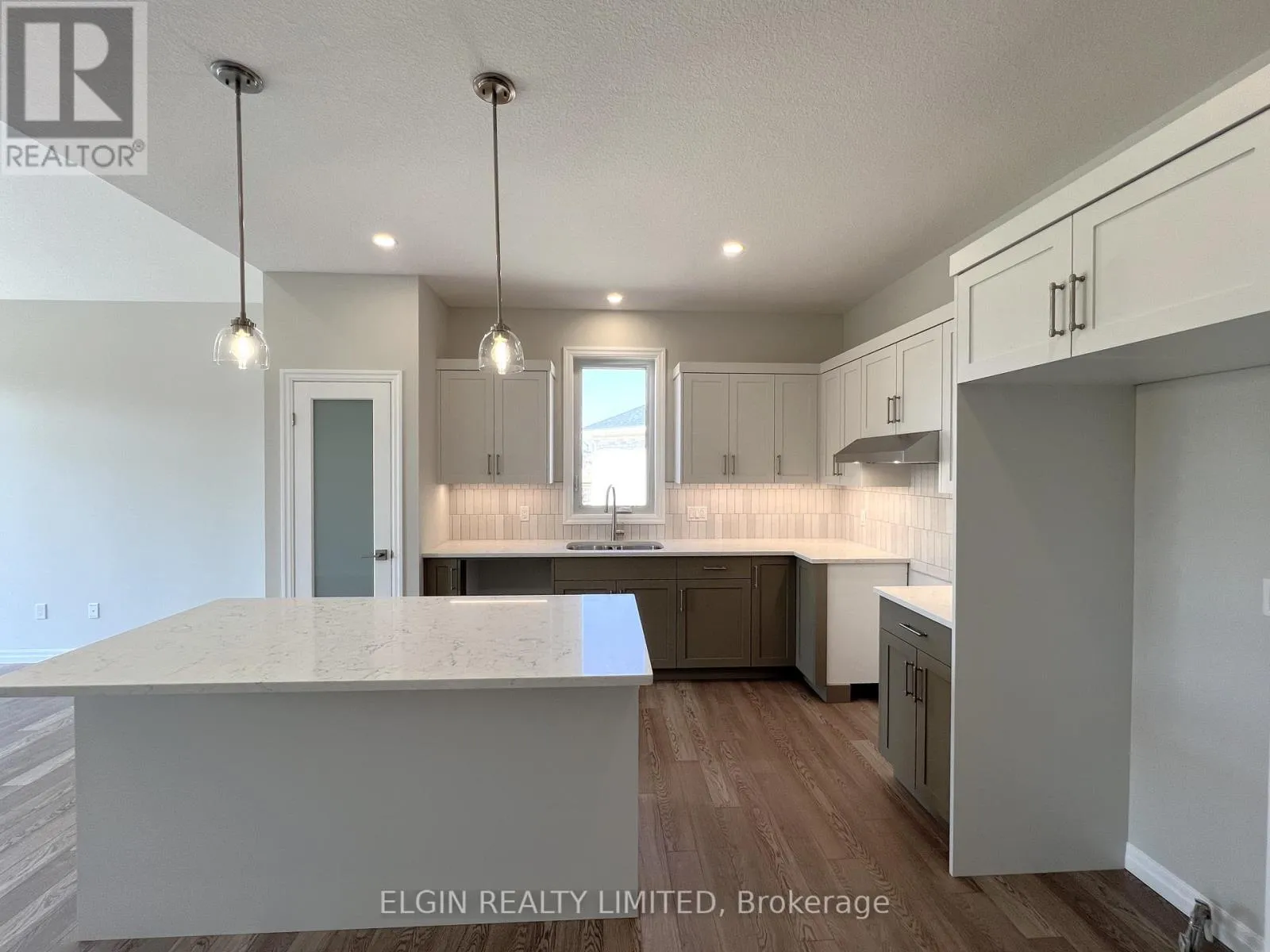 Cross Streets: Wellington Rd & McBain Line. ** Directions: Wellington Rd to McBain Line, right on Watson Cres., left on Freeman Line, left on McBain, right on Columbus Court, semi on right side of court - builder sign on. Move-in ready. This beautifully finished semi-detached bungalow built by Hayhoe Homes is situated on a pie-shaped lot on a quiet cul-de-sac in the sought-after Lynhurst Heights community. Offering open-concept, single-floor living with 2 bedrooms and 2 bathrooms, including a private 3-piece ensuite. The main floor features 9' ceilings, luxury vinyl plank flooring, and a designer kitchen with quartz countertops, tile backsplash, a central island, and pantry -- all opening to a spacious great room with a cathedral and patio door leading to a rear deck. A second bedroom, full bathroom, and laundry room complete the main floor. The unfinished basement provides development potential for a future family room, additional bedroom, and bathroom. Other features include a single-car garage, covered front porch, central air, HRV system, Tarion New Home Warranty, and numerous upgrades throughout. Ideally located with easy access to London and close to parks, shopping, and restaurants. Taxes to be assessed. (id:27476)