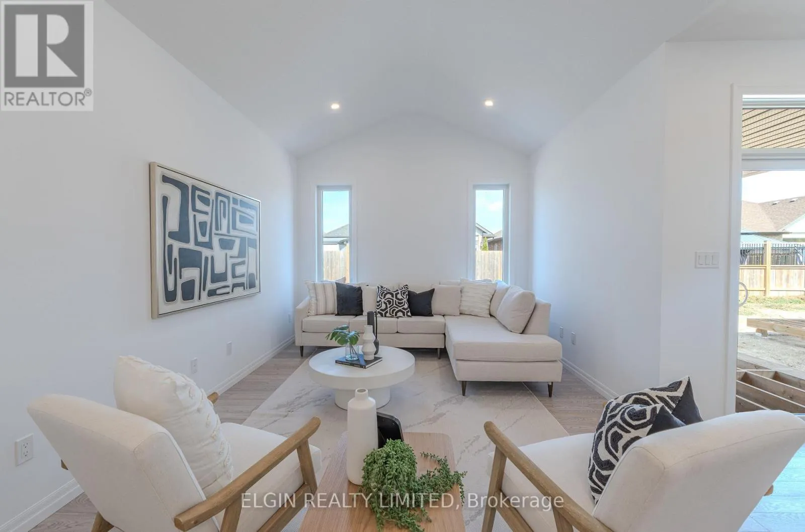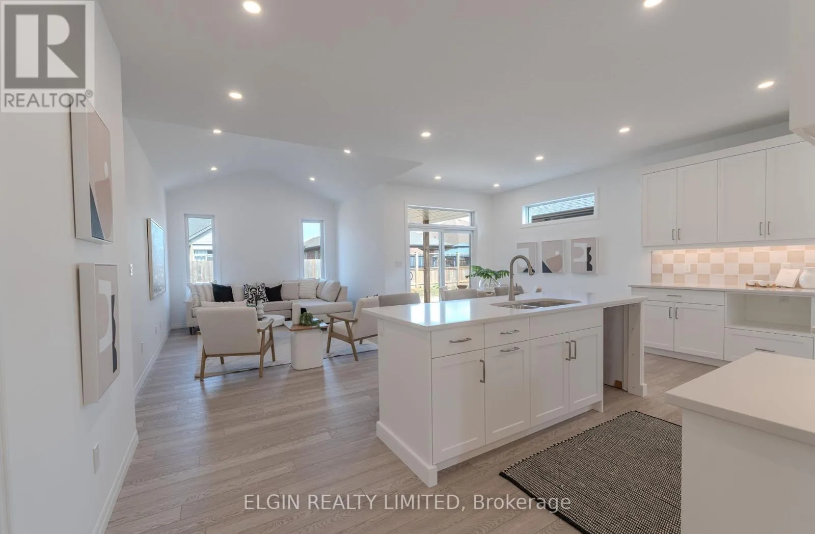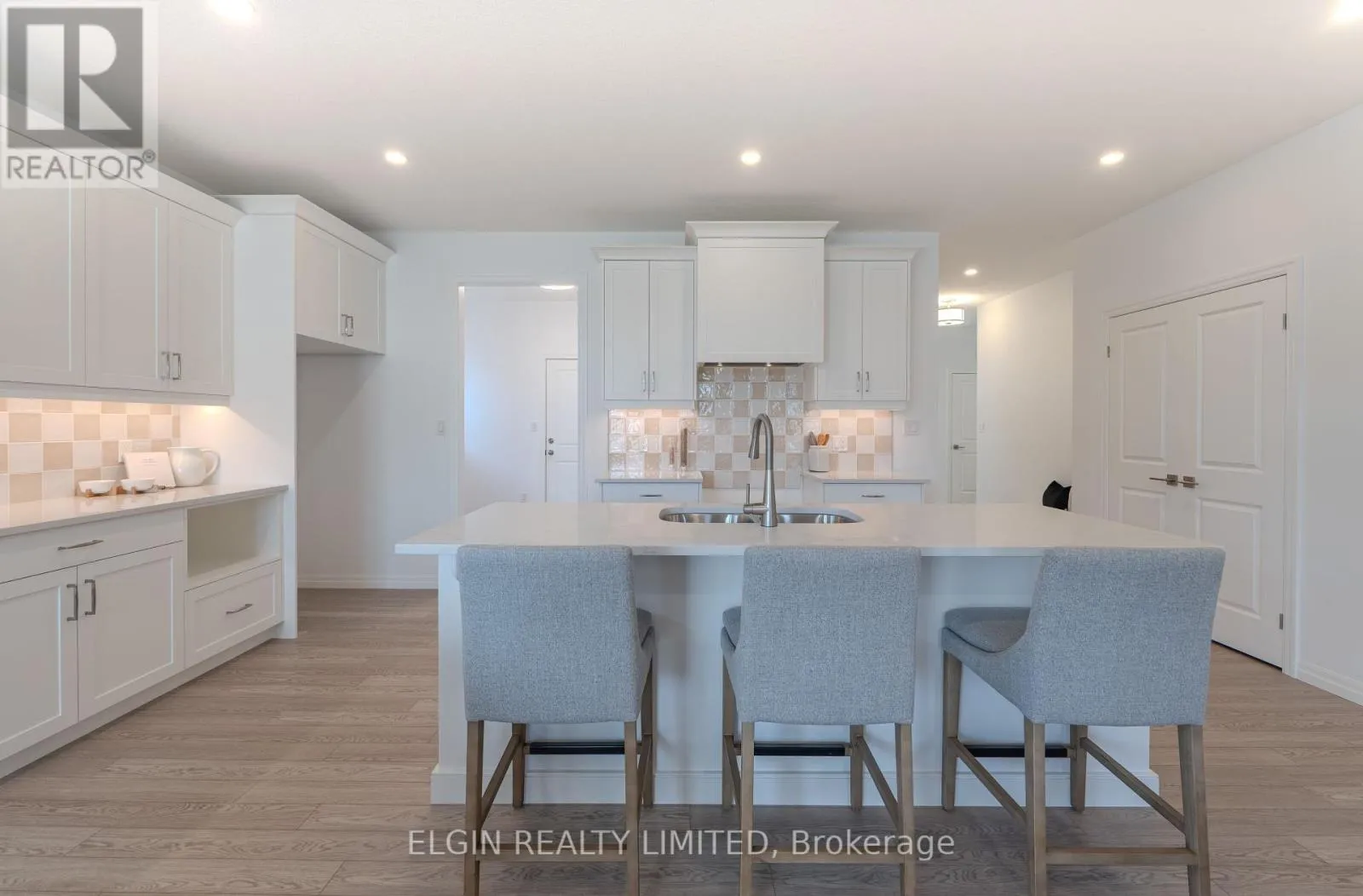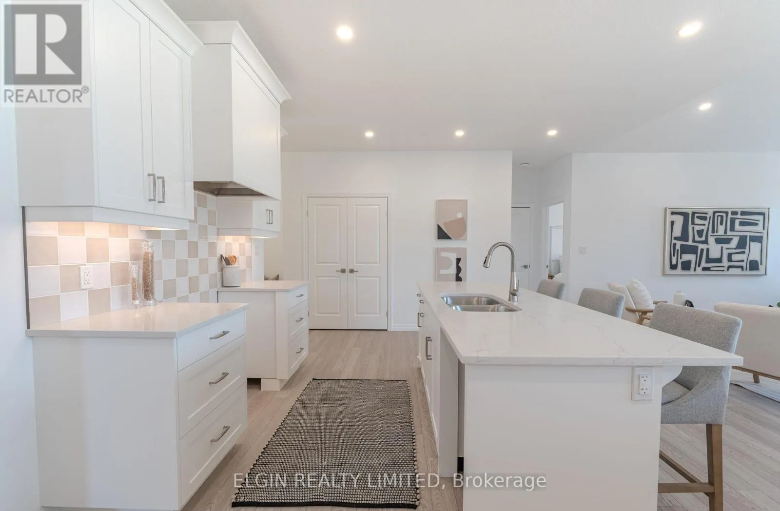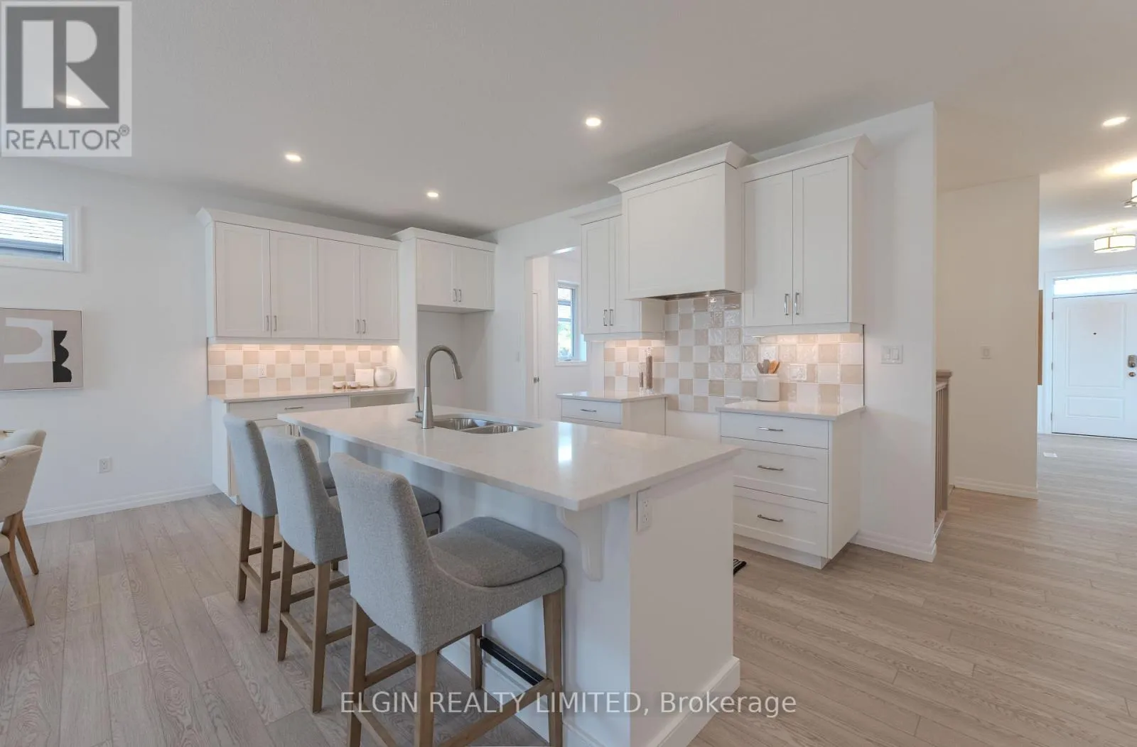 Cross Streets: Wellington Rd & McBain Line. ** Directions: Wellington Rd to McBain Line, right on Watson Cres., left on Freeman Line, left on McBain, house on left side at end - builder sign on. Move-in ready, the Kempston bungalow crafted by Hayhoe Homes offers stylish single-level living with 2 bedrooms, a main floor office, and 2 bathrooms, including a private 3-piece ensuite in the primary bedroom. The open-concept layout features a designer kitchen with quartz countertops, island, tile backsplash, and pantry, flowing into a spacious great room with cathedral ceilings, and dining area with patio doors leading to the rear deck. The unfinished basement offers excellent development potential for a future family room, additional bedrooms, and bathroom. Additional highlights include 9' main floor ceilings, luxury vinyl plank flooring (as per plan), convenient main floor laundry, BBQ gas line, double garage, and numerous upgrades throughout. Located in the desirable Lynhurst Heights community with easy access to London, highways, and just minutes from parks, grocery stores, and restaurants. Taxes to be assessed. (id:27476)