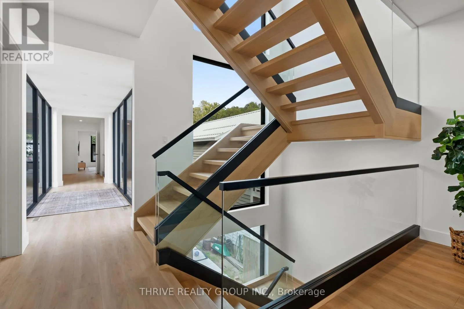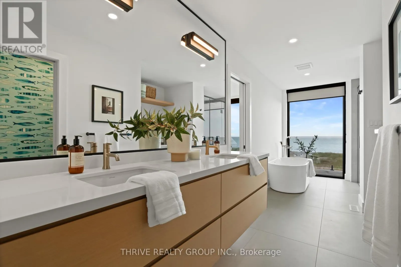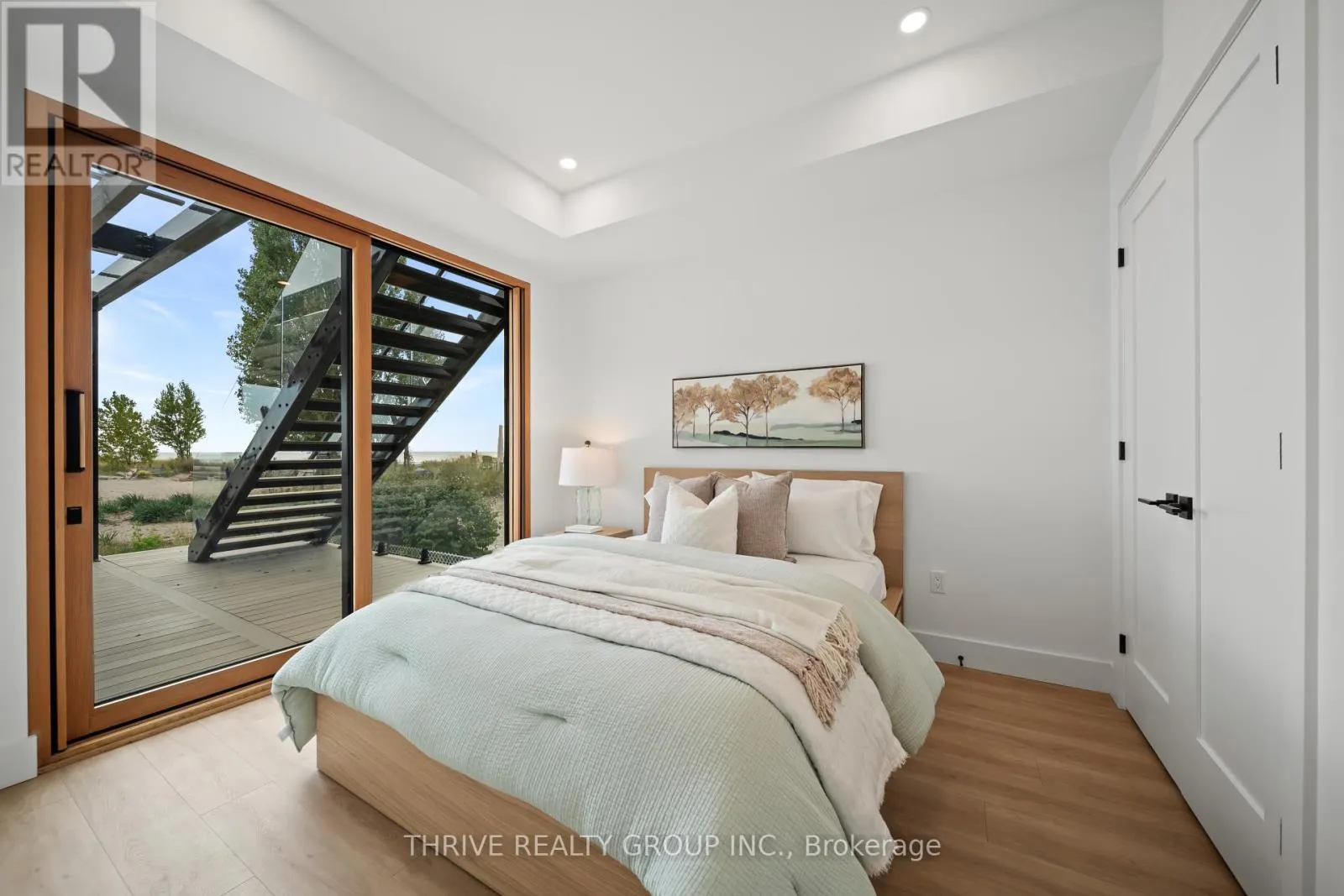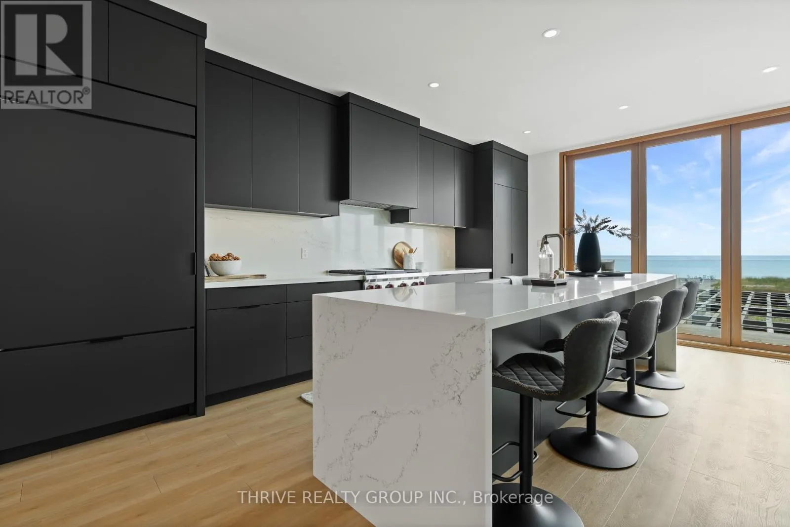 Cross Streets: William St/ Edith Cavell Blvd. ** Directions: From George St, Turn left onto Williams St, then a right onto Edith Cavell Blvd, 416 Edith Cavell Blvd found on the left hand side. Nestled on the sandy shores of Lake Erie, this newly built custom home offers a blend of modern luxury and cottage living. Just a short walk to downtown Port Stanley, with easy access to local shops, restaurants, and the vibrant beach town atmosphere while enjoying the privacy of your own lakefront retreat.This three-storey home spans over 3,500 square feet and features 5 spacious bedrooms, and 4.5 bath, including an primary suite with a 5-piece ensuite, walk-in closet, and wet-bar. The layout also offers in-law capability and multiple entertainment rooms, making it ideal for family gatherings or hosting guests. Floor-to-ceiling glass patio doors frame endless water views on every floor and open onto a private beachfront setting. A unique catwalk bridge connects the main spaces together, and leads to the kitchen, open concept living room, and dinette.With an attached garage perfect for storage, there is enough parking for 6 cars. Every detail of this home has been crafted to showcase the beauty of Port Stanley beach while offering comfort and privacy. (id:27476)