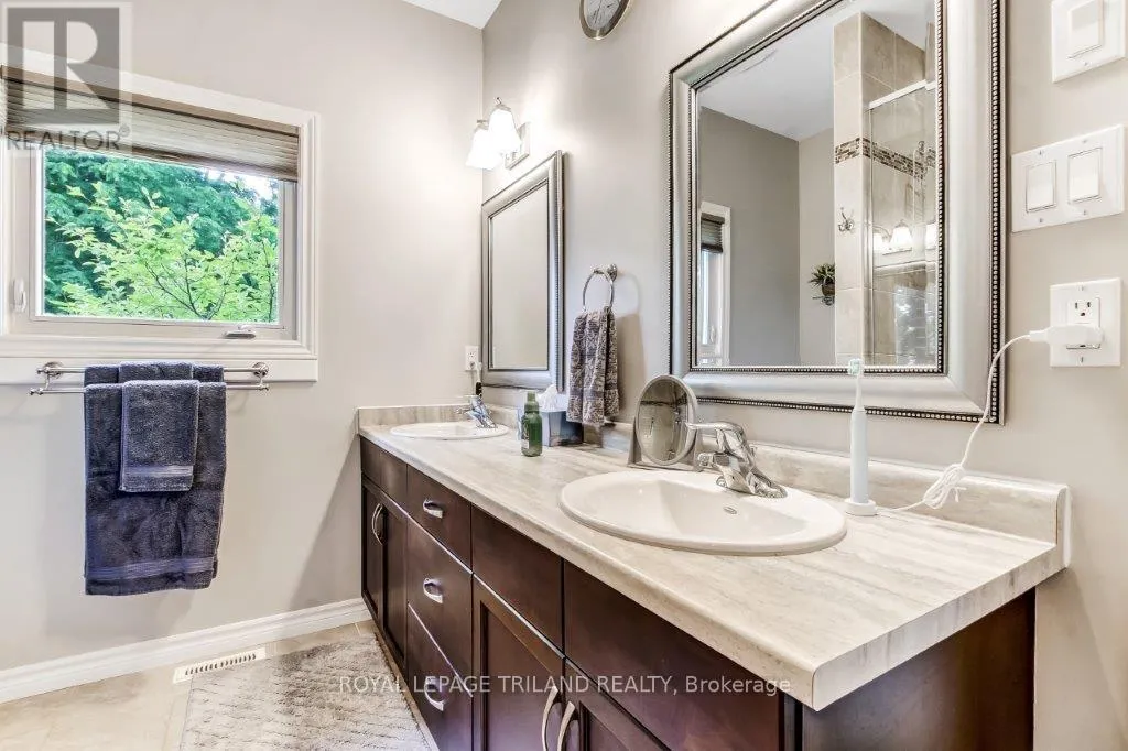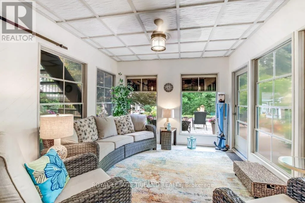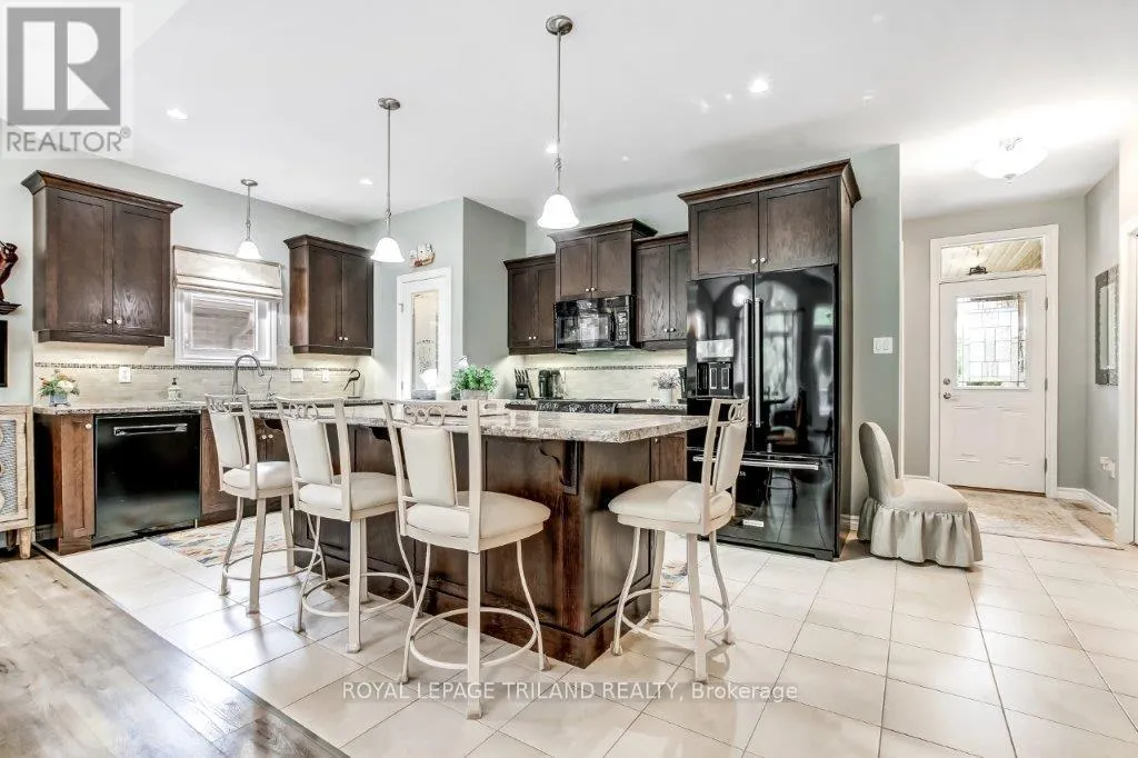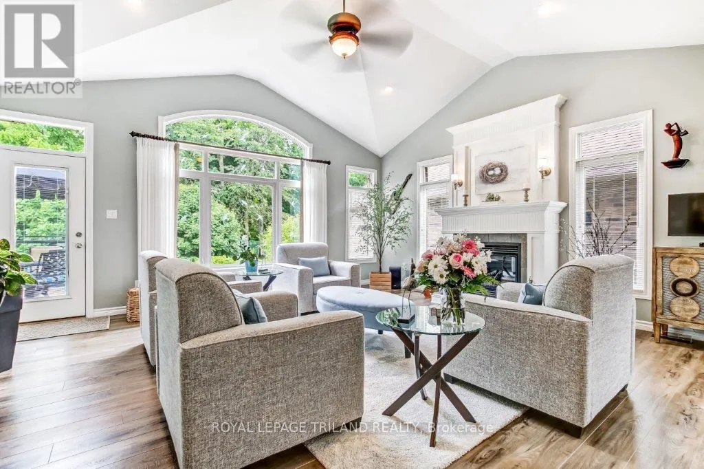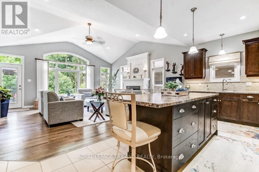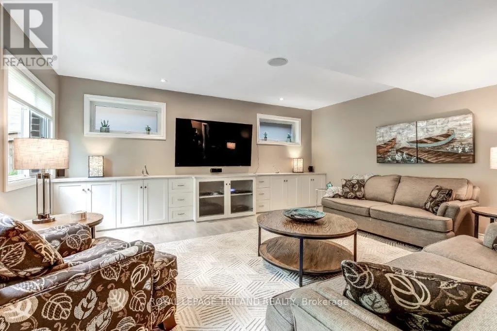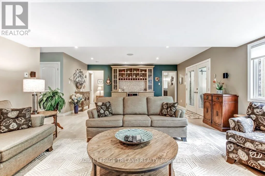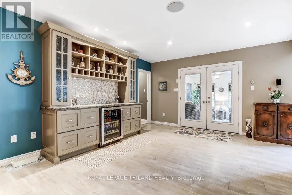 Cross Streets: OLD FIELD LANE. ** Directions: EAST RD TO OLD FIELD LANE TO ENSLEY PLACE. Welcome to Port Stanley! Executive custom built home located on a quiet cul-de-sac, backing onto a treed ravine. You will love this four bedroom brick bungalow with walk-out basement. Both front and rear yards are professionally landscaped and have irrigation. Oversized garage that will fit your pickup truck. Extra wide paver stone driveway, Paver stone walkway down the side of the house leading to totally fenced rear yard. Lots of area to enjoy the outdoors with your covered front porch, rear upper deck with stairs to lower paver stone patio, as well as a3 season room. Upon entering the foyer, you are welcomed into the open concept living area which features lots of natural light. Bright dining room with cathedral ceiling and transom windows add a great ambiance. Large kitchen island, pantry, stone backsplash and ceramic flooring. Great room with beautiful gas fireplace, large windows that overlook the treed lot. You can sit there and relax while enjoying all nature has to offer right there in your backyard. The primary bedroom entrance with double doors, walk in closet and 5 pc ensuite with soaker tub, walk in shower and double sinks. Second bedroom on the main floor as well as another 4pc bath, and main floor laundry/mud room. Lower level has heated floors and laminate flooring and could have amazing in-law potential or additional living space for your family. The spacious family/games room has built in cabinets/entertainment centre with quartz countertop, and a built in wet bar. There are 2 additional bedrooms on the lower level, one equipped with a Murphy bed, as it was used as on office, and another full bathroom. Other features include electrical surge protector, furnace humidifier, life breath system, new sump pump 2022, new rental water heater 2022 plus more. (id:27476)