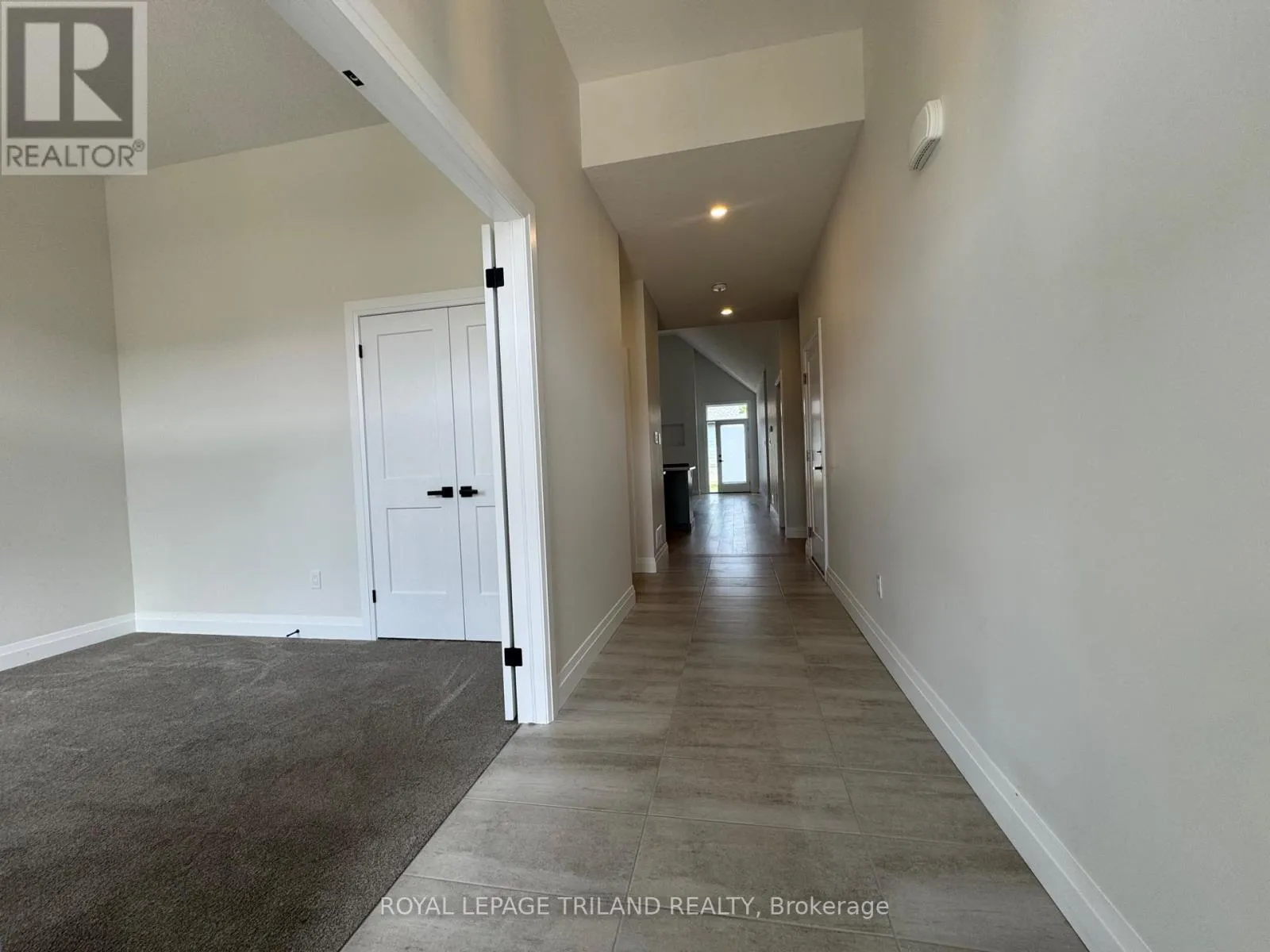 Cross Streets: East Rd. ** Directions: Turn West off East road onto Compass Trail. Welcome to this beautifully maintained 3-year-old condo in the heart of Port Stanley! Featuring a stunning stone front and inviting front porch, this home offers the perfect blend of comfort and coastal charm. Inside, you'll find 2 spacious bedrooms and 2 full bathrooms, including a bright, open-concept living space thats ideal for entertaining. The kitchen and living room flow seamlessly under soaring vaulted ceilings, anchored by warm hardwood flooring and a cozy gas fireplace. Tile flooring in the foyer and bathrooms adds a touch of durability and elegance. Step out onto the private back patio for peaceful outdoor living. This unit also includes a single-car garage and access to the complexs beautifully maintained outdoor pool perfect for summer relaxation. Located within walking distance to Little Beach, the village shops and restaurants, and close to scenic walking trails and a nearby park, this is Port Stanley living at its best. Available for lease don't miss this opportunity to live in one of Port Stanleys most desirable communities! (id:27476)