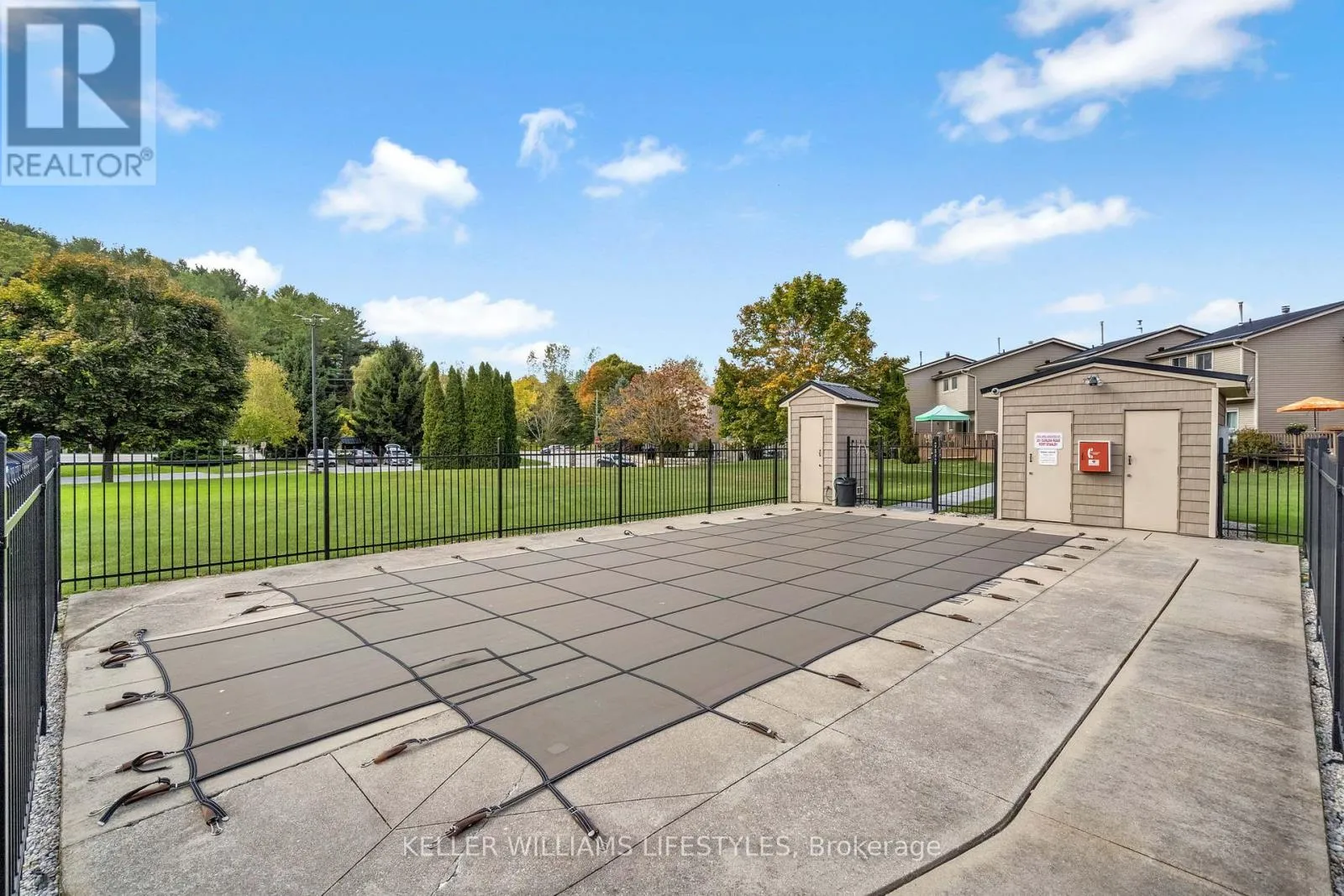 Cross Streets: Carlow Rd and Warren St. ** Directions: Take highway 4 south to Warren St, turn right, then turn left onto CarlowRd. Nestled in a prime location within the complex, this stunning home has been professionally renovated from top to bottom (2025) with modern, neutral finishes, stylish fixtures, and thoughtful details throughout. Every inch of this space has been refreshed from the baseboards and light fixtures to the window coverings creating a fresh look you'll love coming home to.The bright, open kitchen and dining area feature a patio door leading to a large deck with peaceful views of the green space and inground pool. The brand-new kitchen (2025) impresses with soft-close cabinetry, granite sink and modern lighting and ceiling fan. Energy-efficient GE Profile appliances included as well. Enjoy the abundant natural light from three skylights, one in the upper stairway and 2 in the living room (replaced in 2023 when the new metal roof was installed). The living room also boasts a gas fireplace and patio doors to a private rooftop deck overlooking the water. The spacious primary bedroom offers a walk-in closet, ceiling fan, and a large window with water views. The second bedroom is equally versatile, with ample space for a full bedroom set and desk area. The main bath features a rainhead shower for a spa-like touch.The finished lower level adds valuable living space, perfect for a den, office, gym, or guest room. The garage offers extra ceiling insulation, automatic opener, and room for your vehicle plus kayaks, bikes, and tools. Exterior updates include patio doors, exterior door, garage door, and rooftop balcony. Flooring throughout is a tasteful blend of ceramic tile, vinyl, and all-natural bamboo fibre carpet with cork underlay, providing both comfort and durability. Energy efficient furnace (2024) and central air (2018). Beautifully updated, bright, and move-in ready, this exceptional condo combines modern style, thoughtful upgrades, and a serene natural setting. (id:27476)