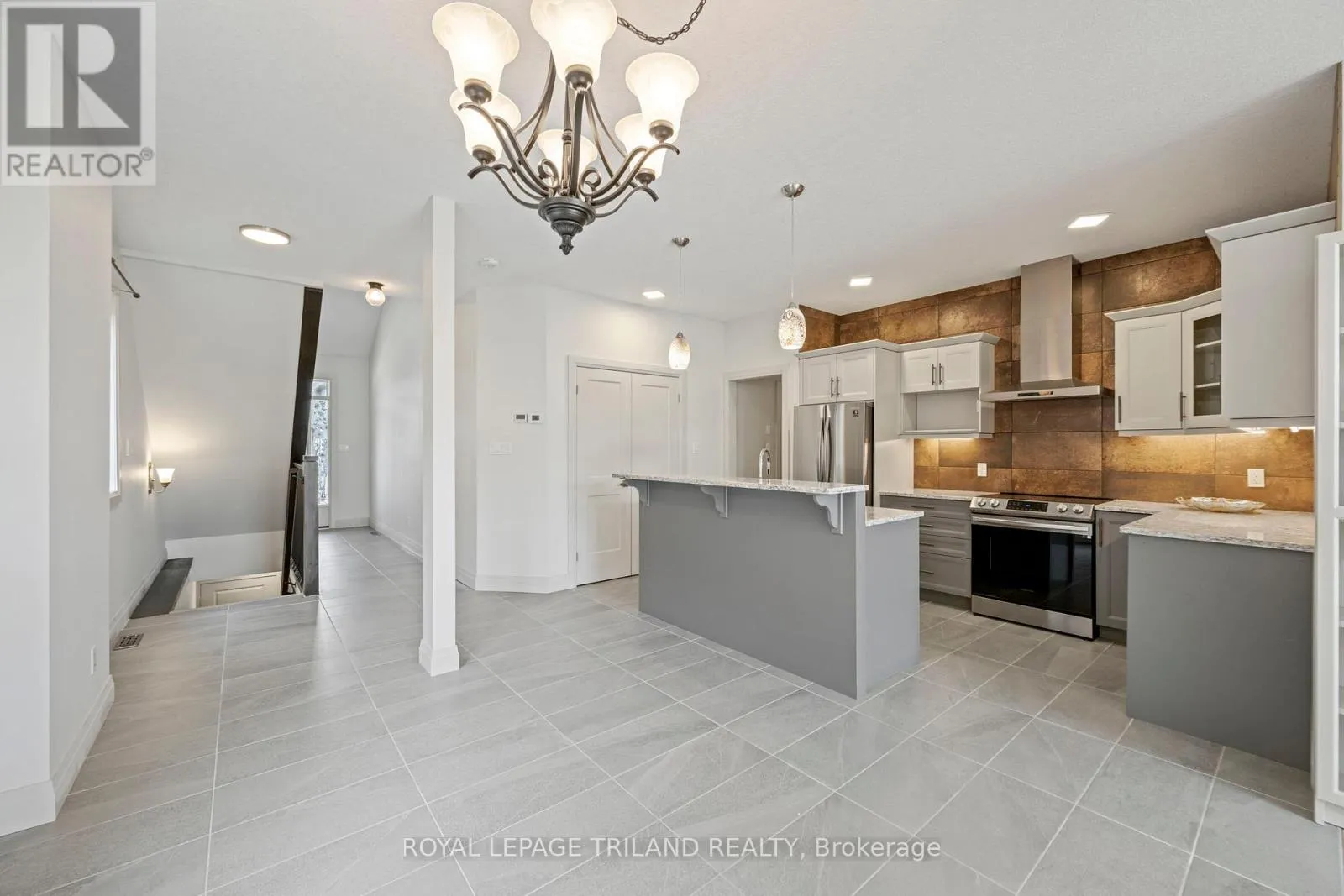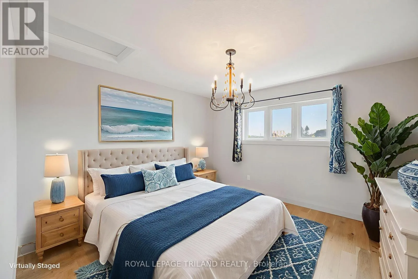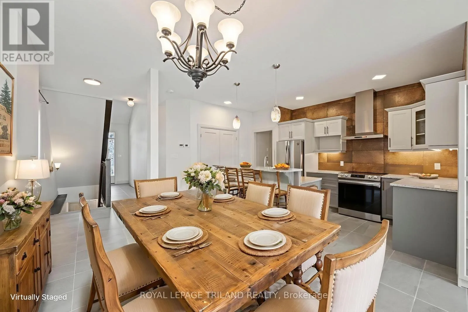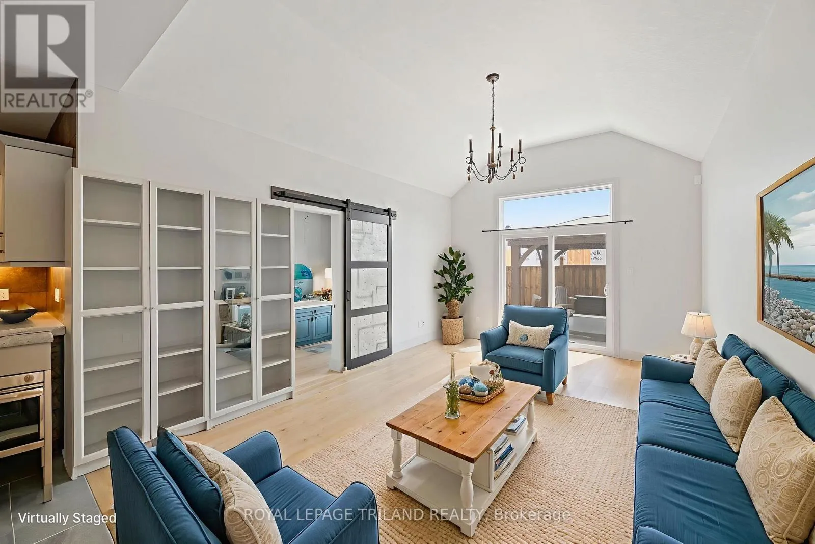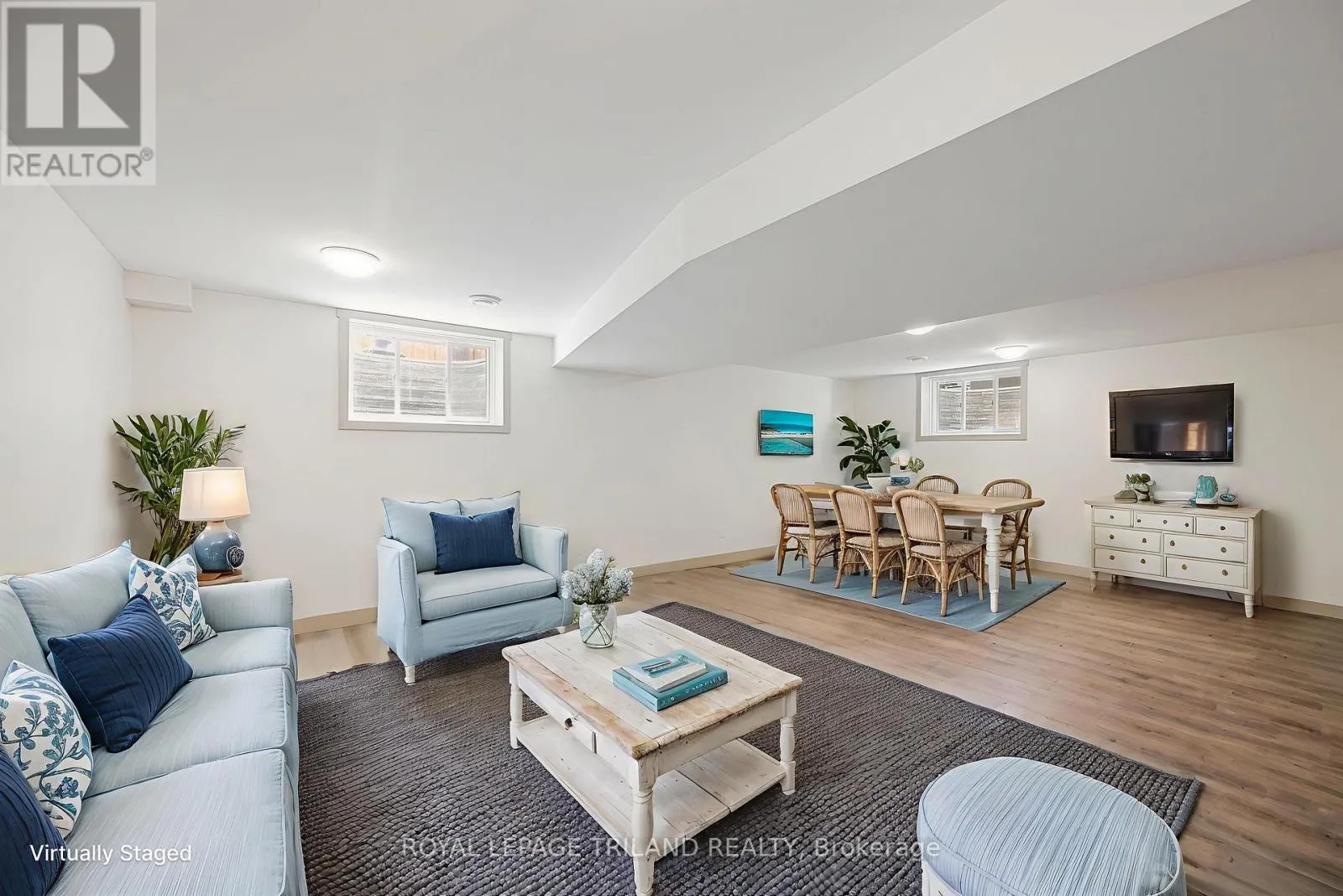Cross Streets: East Road and Compass Traill. ** Directions: SUNSET TO EAST RD TO COMPASS TRAIL. Relaxed Coastal Living in Beautiful Port Stanley! Welcome to 54 Compass Trail where your next chapter begins in style! This beautifully finished, freshly painted semi-detached home is nestled in one of Port Stanley's most desirable neighbourhoods, just steps from the beach, marina, and charming shops and patios. Designed for easy, elegant living, the bright open-concept main floor features soaring vaulted ceilings, engineered hardwood, and a sun-soaked living and dining space that flows effortlessly into the upgraded kitchen complete with quartz counters, porcelain backsplash, ceramic floors, and a walk-in pantry.The spacious main-floor primary suite is a peaceful retreat, offering a walk-in closet with custom barn door, hardwood floors, and a private 3-piece ensuite. Upstairs, you'll find two more bedrooms (perfect for visiting grandkids or guests!), a full bathroom, and a sunny reading or office nook. Downstairs, the finished rec room is ready for entertaining: think game nights, movie marathons, or weekend visits from friends and family. There's also a 2-piece bath and large laundry/storage area for added convenience. Enjoy morning coffee or sunset cocktails in your private landscaped yard, or stroll down to the beach for an afternoon in the sun. With a double garage, stone paver driveway, and low-maintenance living, this home is made for those who want to slow down without settling down. Life at 54 Compass Trail isn't just about where you live, it's how you live. And in Port Stanley, you live well. Vitual staging used for some photos (id:27476)