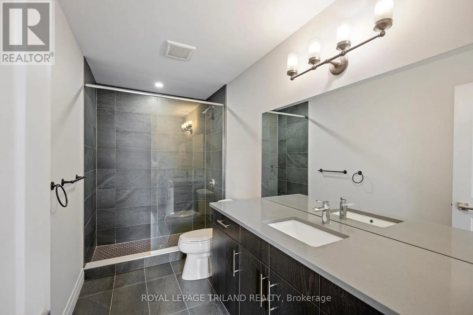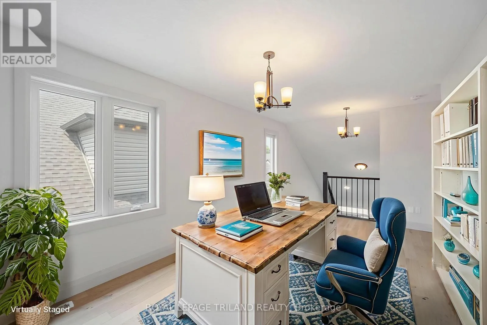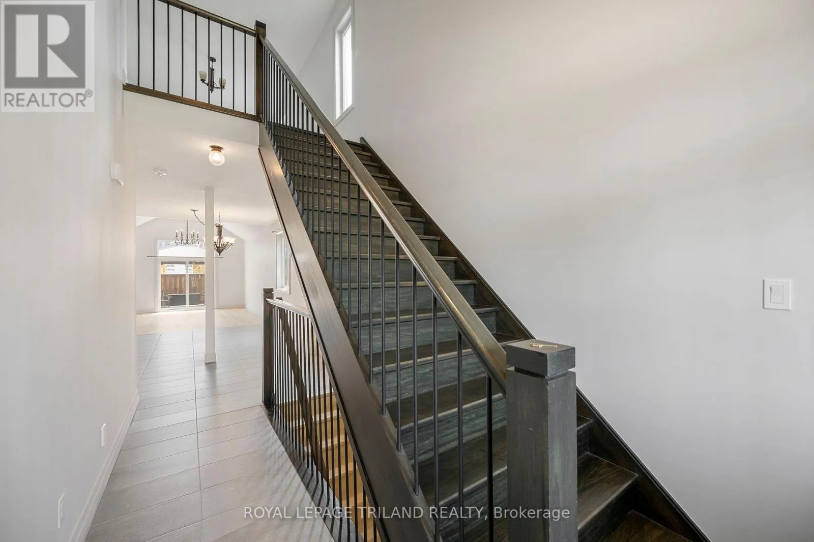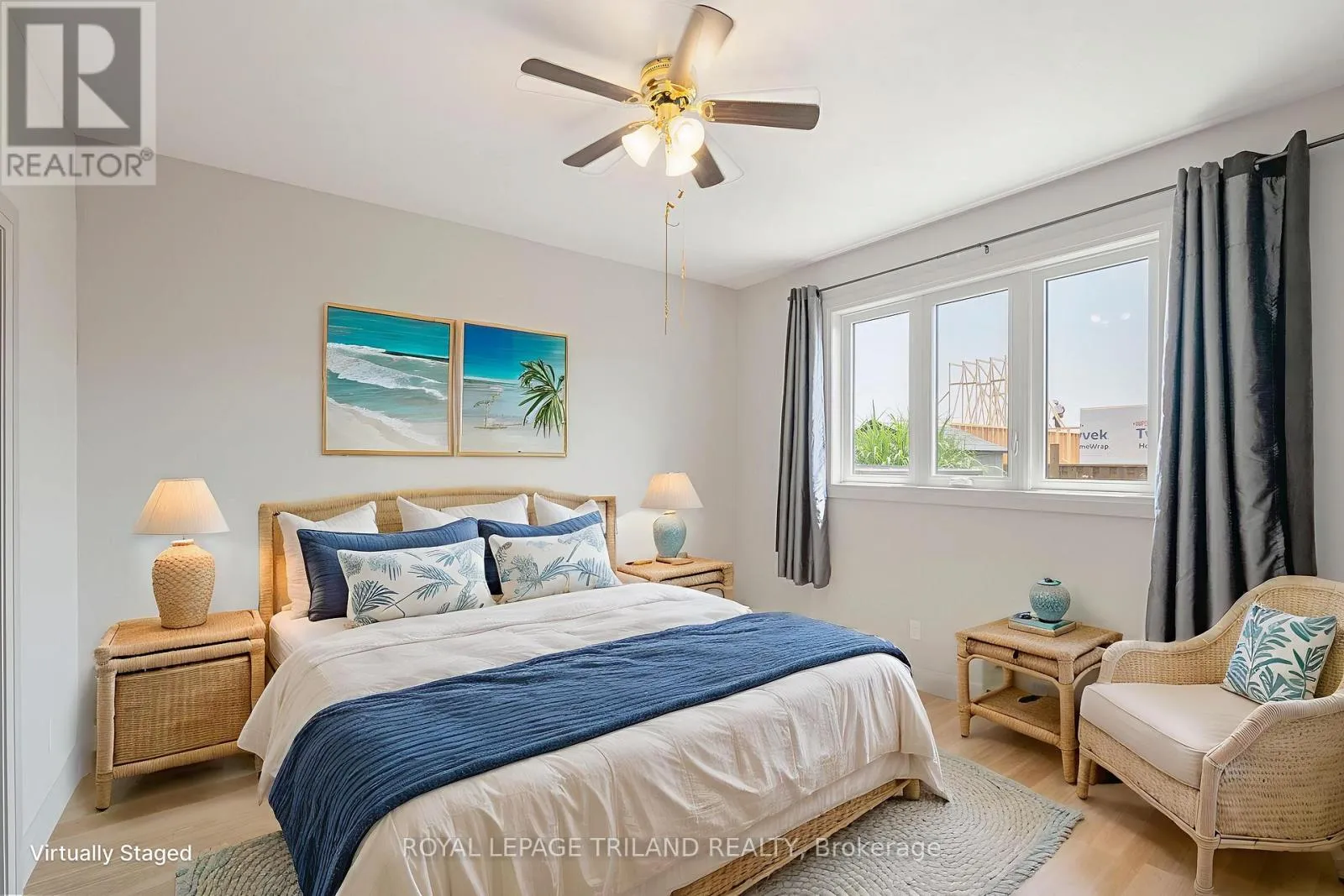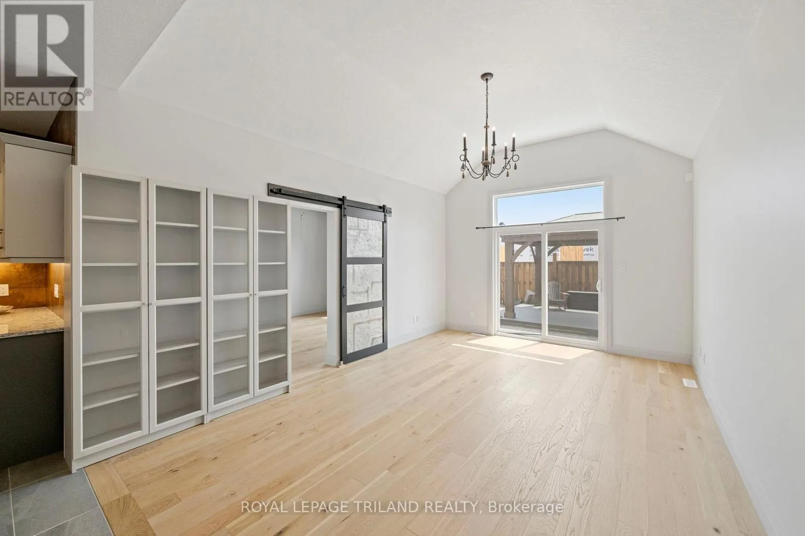 Cross Streets: East Road and Compass Traill. ** Directions: SUNSET TO EAST RD TO COMPASS TRAIL. Relaxed Coastal Living in Beautiful Port Stanley! Welcome to 54 Compass Trail where your next chapter begins in style! This beautifully finished, freshly painted semi-detached home is nestled in one of Port Stanley's most desirable neighbourhoods, just steps from the beach, marina, and charming shops and patios. Designed for easy, elegant living, the bright open-concept main floor features soaring vaulted ceilings, engineered hardwood, and a sun-soaked living and dining space that flows effortlessly into the upgraded kitchen complete with quartz counters, porcelain backsplash, ceramic floors, and a walk-in pantry.The spacious main-floor primary suite is a peaceful retreat, offering a walk-in closet with custom barn door, hardwood floors, and a private 3-piece ensuite. Upstairs, you'll find two more bedrooms (perfect for visiting grandkids or guests!), a full bathroom, and a sunny reading or office nook. Downstairs, the finished rec room is ready for entertaining: think game nights, movie marathons, or weekend visits from friends and family. There's also a 2-piece bath and large laundry/storage area for added convenience. Enjoy morning coffee or sunset cocktails in your private landscaped yard, or stroll down to the beach for an afternoon in the sun. With a double garage, stone paver driveway, and low-maintenance living, this home is made for those who want to slow down without settling down. Life at 54 Compass Trail isn't just about where you live, it's how you live. And in Port Stanley, you live well. Vitual staging used for some photos (id:27476)