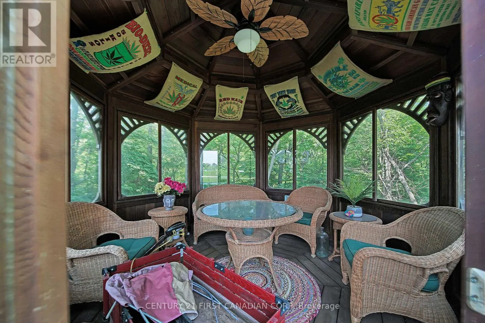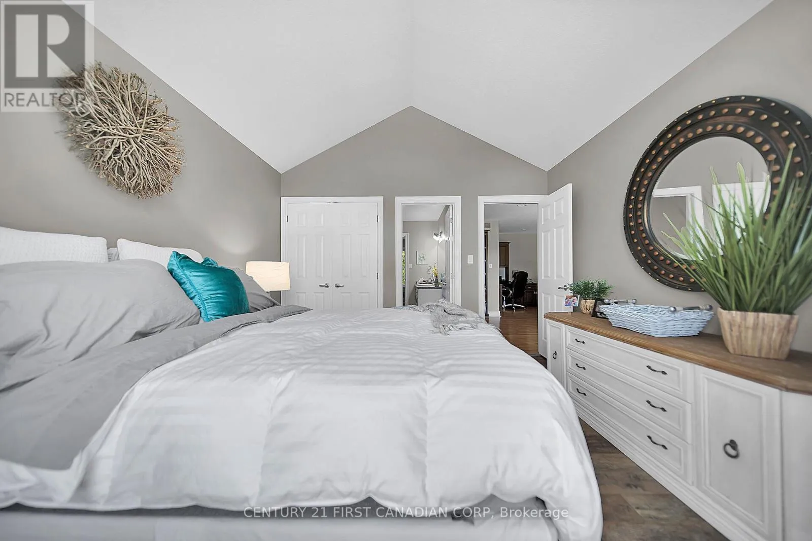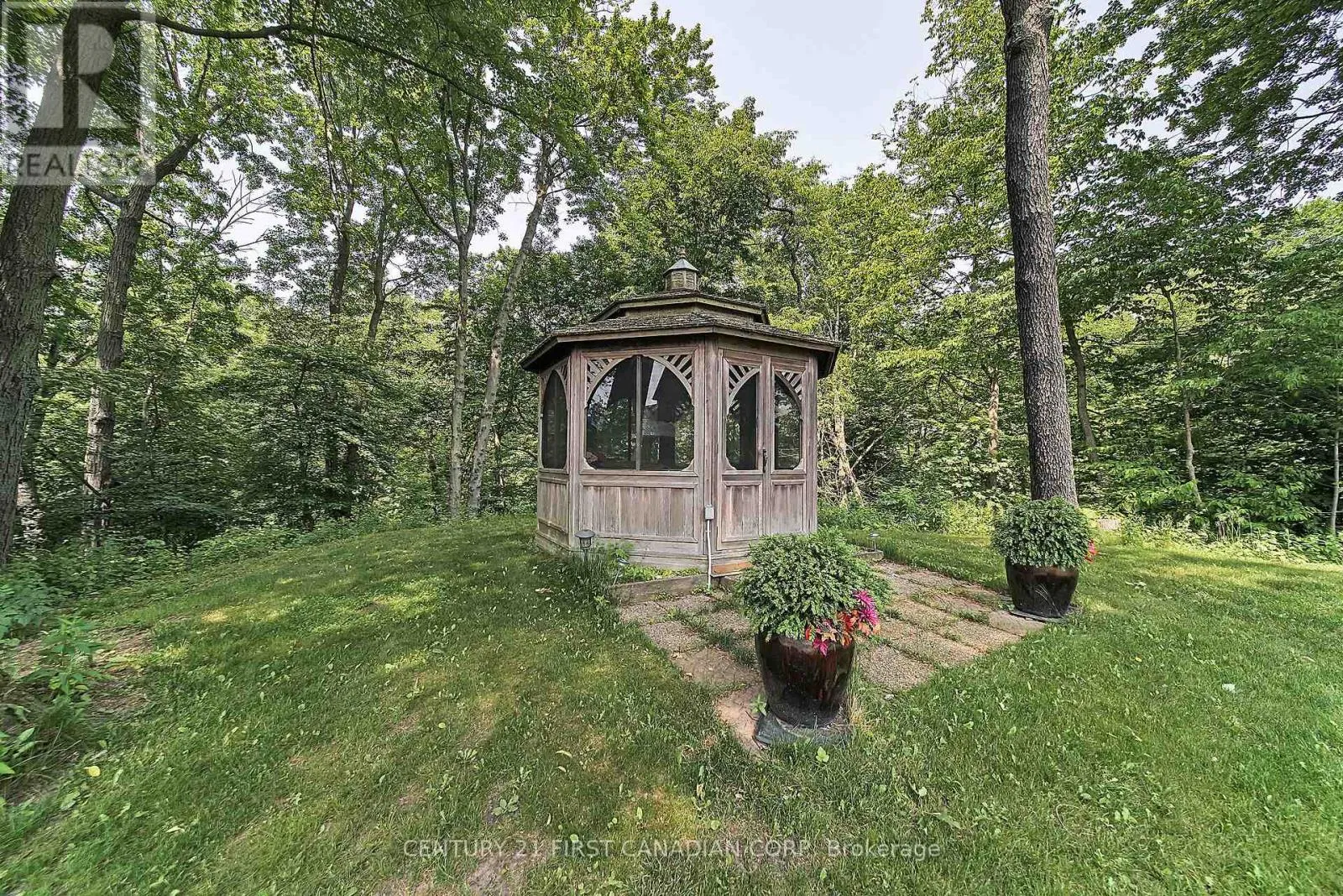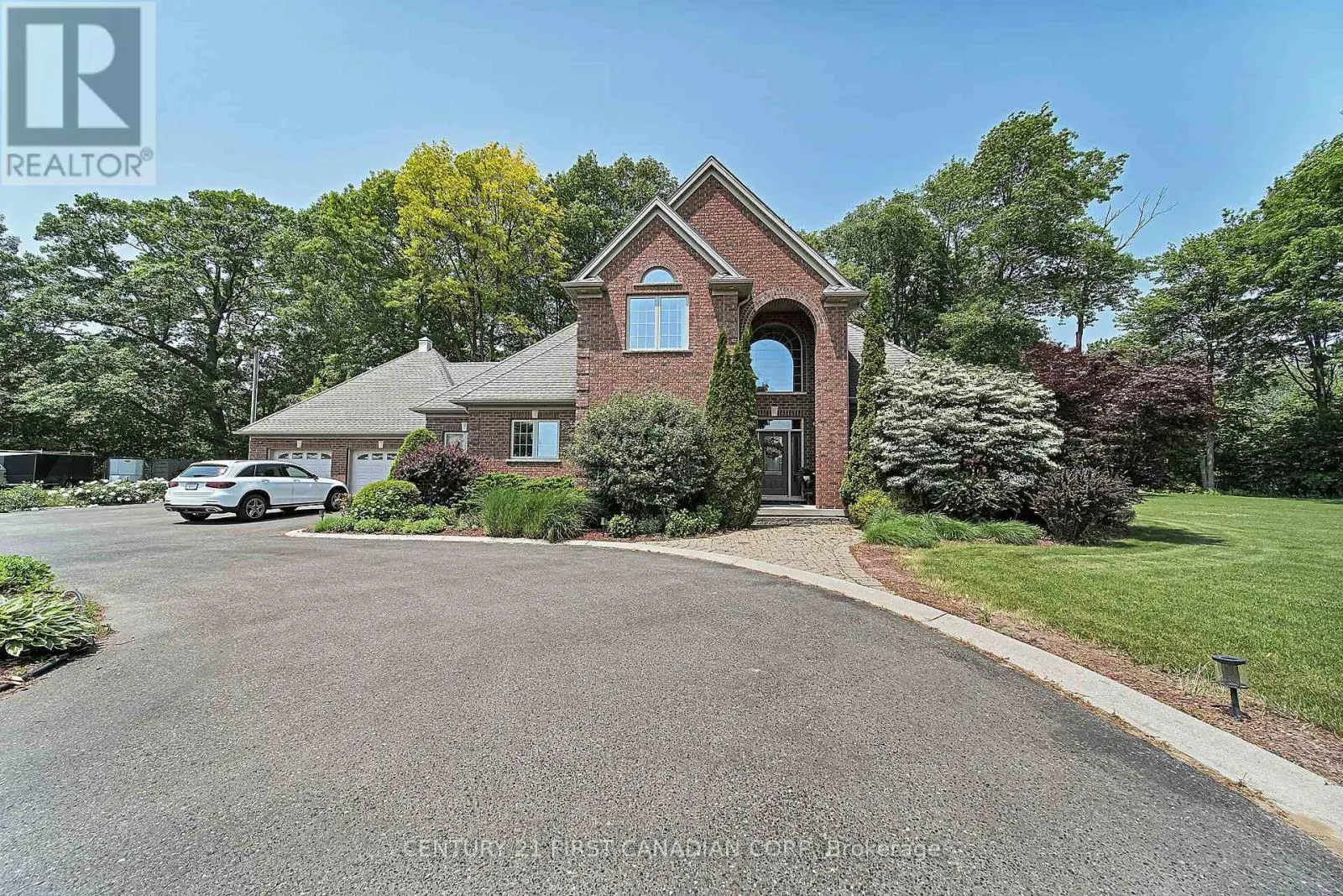 Cross Streets: Sunset Drive & Roberts Line. ** Directions: From London head South on Wellington Street to St. Thomas; at roundabout between Talbot Street and Sunset Road, continue South on Sunset Drive to Roberts Line; located on the NW corner of Roberts Line & Sunset Drive. NEW PRICE!!! This beautiful 1.4 acre country estate is located 5 minutes from the Port Stanley Beach and all amenities with a quick commute to St. Thomas and easy drive to London. Many improvements done to this well built custom brick 3 bedroom, 2.5 bathroom home that features a circular paved driveway, professionally landscaped and over-sized insulated 2-car garage with separate entrance to the basement. The main floor boasts an impressive open concept design with new engineered HW flooring (2022) in the living room & family room separated by a double-sided gas fireplace. Also there is a formal dining room, a kitchen with granite counter tops, back-splash, under-cabinet lighting, stainless steel appliances (2022), an island that seats 4, breakfast nook, pantry closet & accent lighting. Ideally located next to the kitchen is a separate entrance with ceramic tile floors, a coat closet and 2-piece bathroom with new washer and dryer (2022). The family room has sliding doors that lead to a newly constructed covered patio (2023) with lights, fans, heater and speakers that is a great area for entertaining. The primary bedroom is also conveniently located on the main floor that includes a 5 piece ensuite with heated ceramic tile flooring, jetted tub, tiled shower, walk-in closet and access to the covered patio. Heading up to the second level, you will find a newly added stair lift (2023), a loft for an office space and 2 more large bedrooms with new engineered HW flooring (2022) and a Jack 'n Jill 4-piece bathroom. The lower level with separate garage backdoor walk up has been drywalled with electrical and flooring done (2025) creating a granny/in-law suite that potentially includes 3 bedrooms, recreation room, 3 piece washroom and kitchen creating exceptional value. In addition to a gazebo with hydro, there is a custom built fire-pit in the backyard (2023). The home comes with a Generac generator & water filtration system! (id:27476)