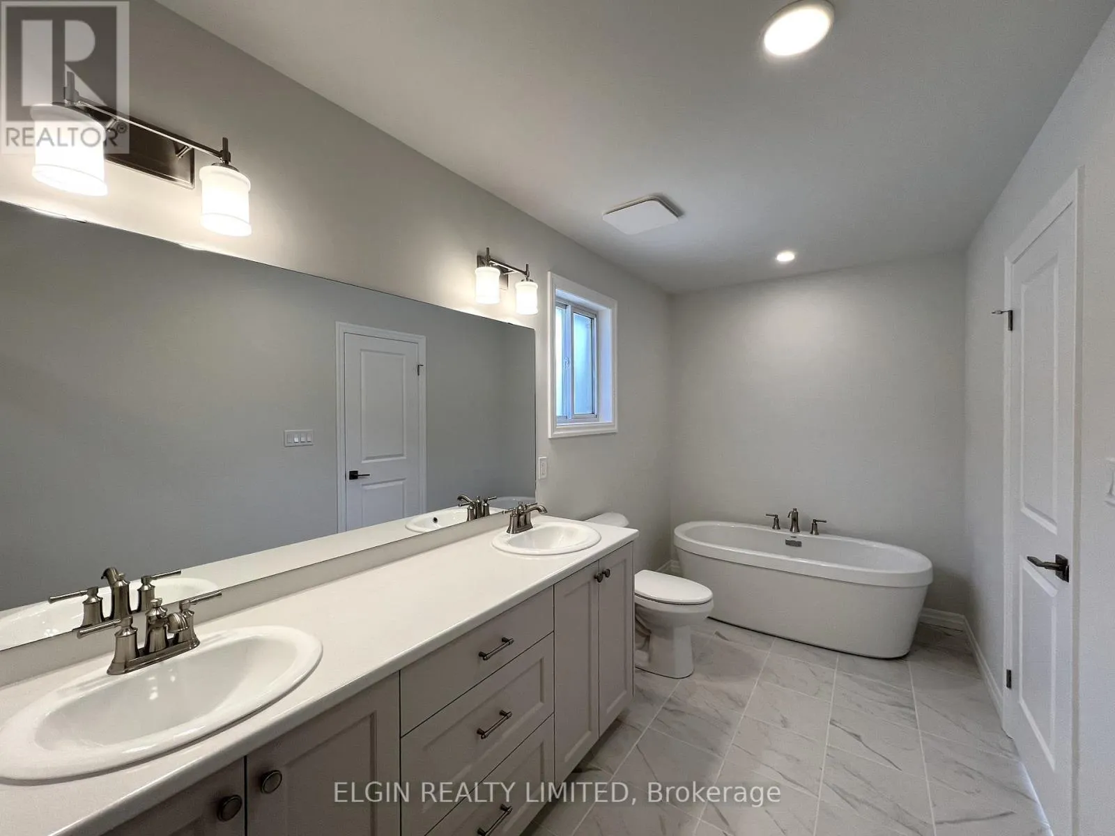 Cross Streets: Wellington Rd & McBain Line. ** Directions: Wellington Rd to McBain Line, right on Watson Cres., left on Freeman Line, left on McBain, house on left side - builder sign on. Located in the desirable Lynhurst Heights community, this move-in ready 'Wallingford' 2-storey home by Hayhoe Homes offers 4 bedrooms, 2.5 bathrooms, and a double car garage with convenient access to St. Thomas amenities and an easy drive to London and Highway 401. A striking two storey foyer welcomes you into the open concept main floor, featuring 9 foot ceilings, hardwood and ceramic tile flooring, and a designer kitchen with quartz countertops, tile backsplash, and a central island that flows into the eating area and great room with a fireplace and patio door leading to the rear covered deck with a barbecue gas line. Upstairs, the spacious primary suite features TWO walk in closets and a private five piece ensuite with a freestanding soaker tub, walk-in shower, and double sinks, along with three additional bedrooms and a full bathroom. The basement includes a finished vestibule at the bottom of the stairs and offers excellent development potential for a future family room, 5th bedroom, and bathroom. Additional highlights include a covered front porch, a hardwood staircase, convenient main floor laundry, Tarion New Home Warranty, and numerous upgrades throughout. Taxes to be assessed. (id:27476)