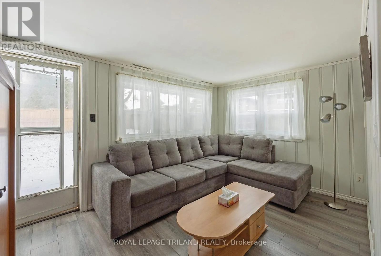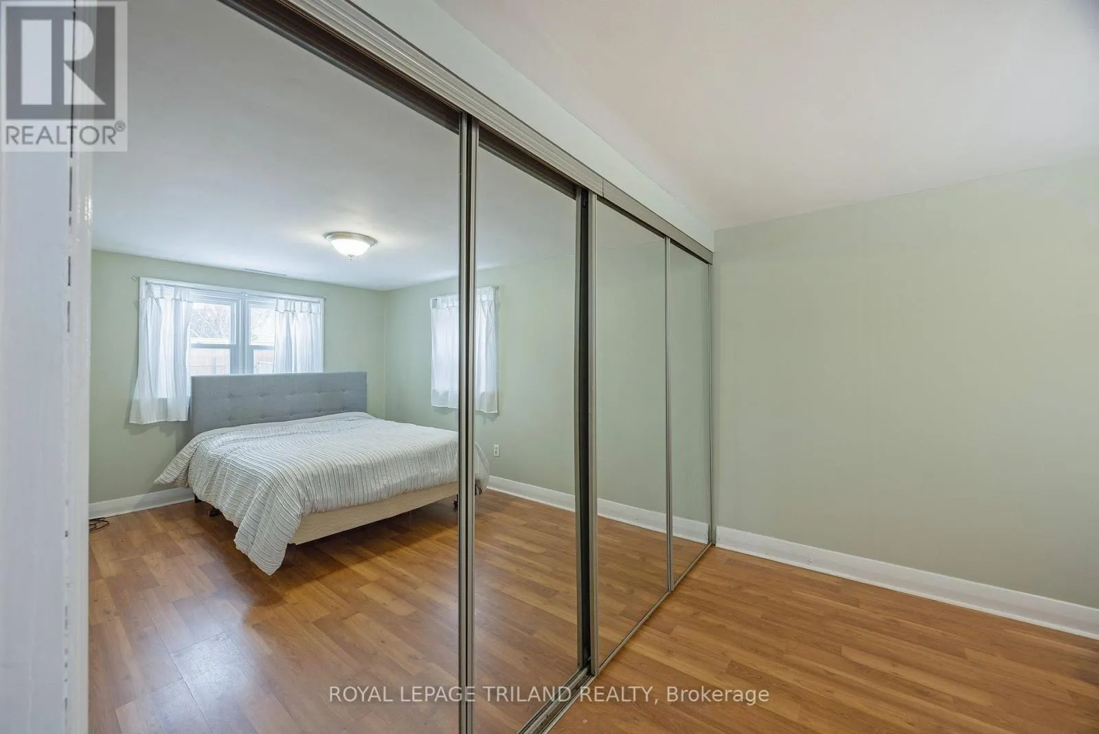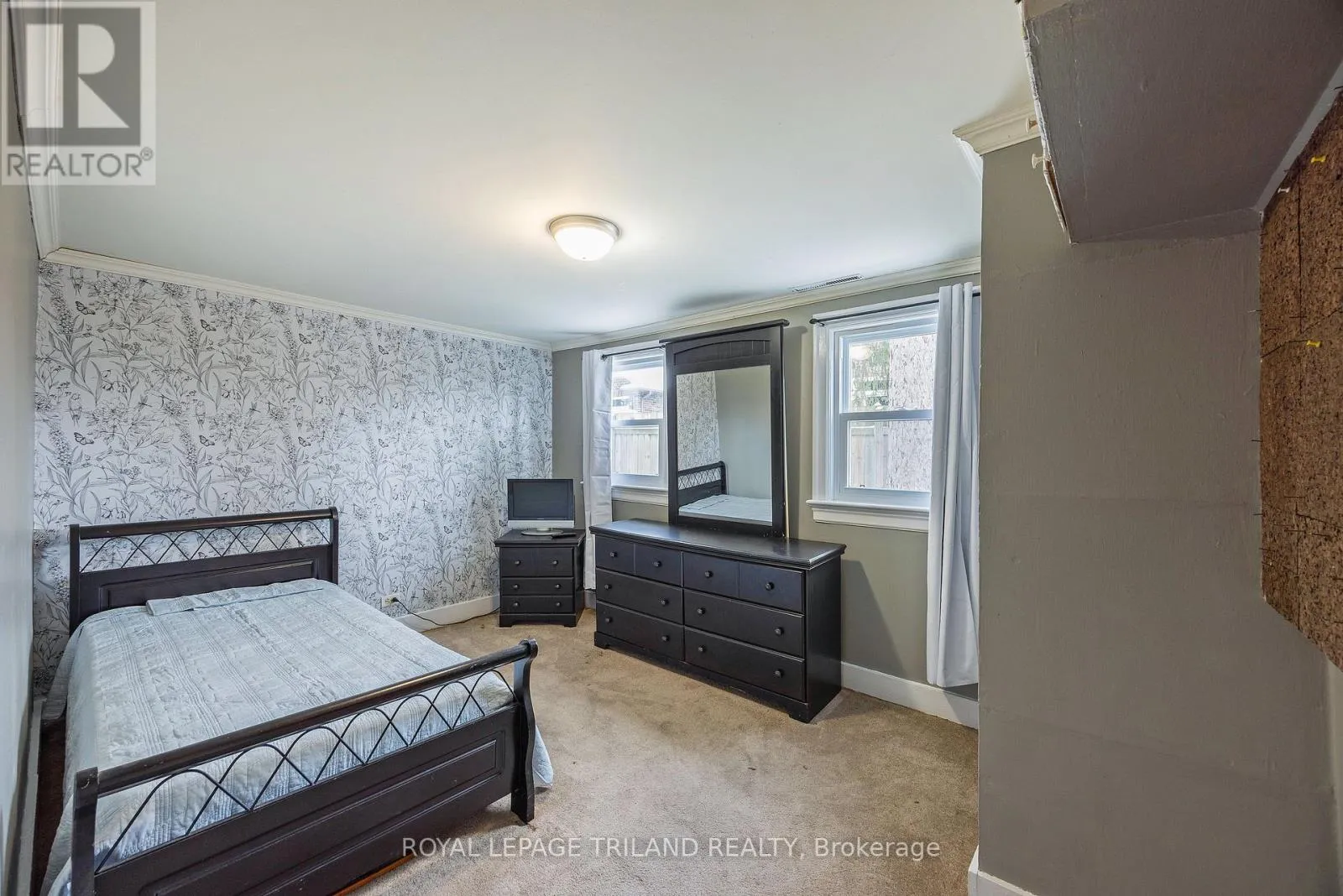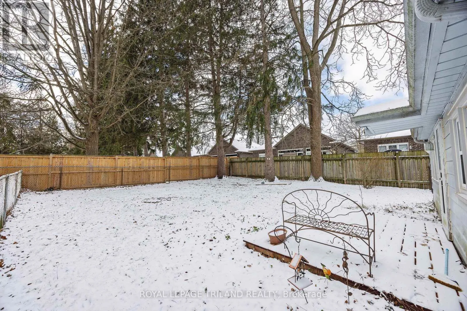 Cross Streets: Nathan. ** Directions: Wellington Rd to St. George. This inviting 3-bedroom, 1-bath bungalow presents a perfect opportunity for first-time home buyers, those looking to downsize, or investors seeking a promising property. The home is nestled quietly among mature trees, set far back from the road, and is situated on a generously sized lot that offers plenty of outdoor space. Three comfortable bedrooms provide ample space for family, guests, or a home office. A good-sized eat-in kitchen serves as the heart of the home, perfect for casual dining and family gatherings. The living room offers direct access to the backyard, making it easy to enjoy outdoor living and entertain guests. 3-piece bathroom combines laundry facilities for added convenience. With its cozy layout and spacious lot, this bungalow provides an excellent canvas for you to add your personal touches and truly make the home your own. (id:27476)