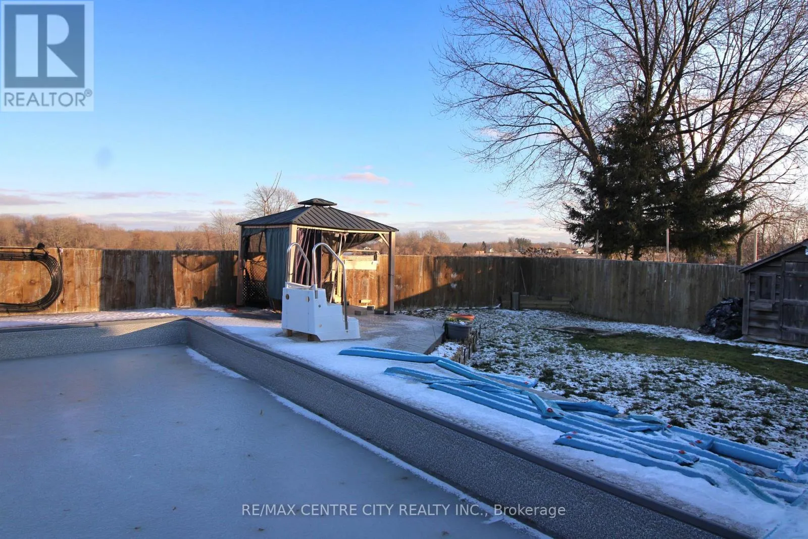 Cross Streets: WELLINGTON AND CENTENNIAL. ** Directions: FROM TALBOT STREET TURN SOUTH ONTO CENTENNIAL, HOME IS ON THE EAST SIDE. Discover a rare blend of privacy, natural beauty, and comfortable living at 200 Centennial Avenue in Central Elgin. This home offers stunning farmland views, where every morning greets you with a breathtaking sunrise over open fields-a serene backdrop that brings a sense of calm and connection to the outdoors. The backyard is designed for both relaxation and entertaining, featuring a saltwater pool (liner replaced three years ago), a charming gazebo, and a cozy fire pit, creating the perfect setting for summer gatherings or quiet evenings outdoors. Inside, the layout is thoughtfully designed with abundant natural light and versatile spaces that can adapt to a variety of lifestyles. Featuring three bedrooms on the main floor and a bonus room in the basement, it's the perfect forever home for your family. Located in an established neighborhood with easy access to St. Thomas, schools, and everyday amenities, this property combines the tranquility of rural vistas with the convenience of town living. With its unique setting, exceptional outdoor features, and lifestyle appeal, 200 Centennial Avenue is a distinctive opportunity for buyers seeking a home that truly stands out (id:27476)