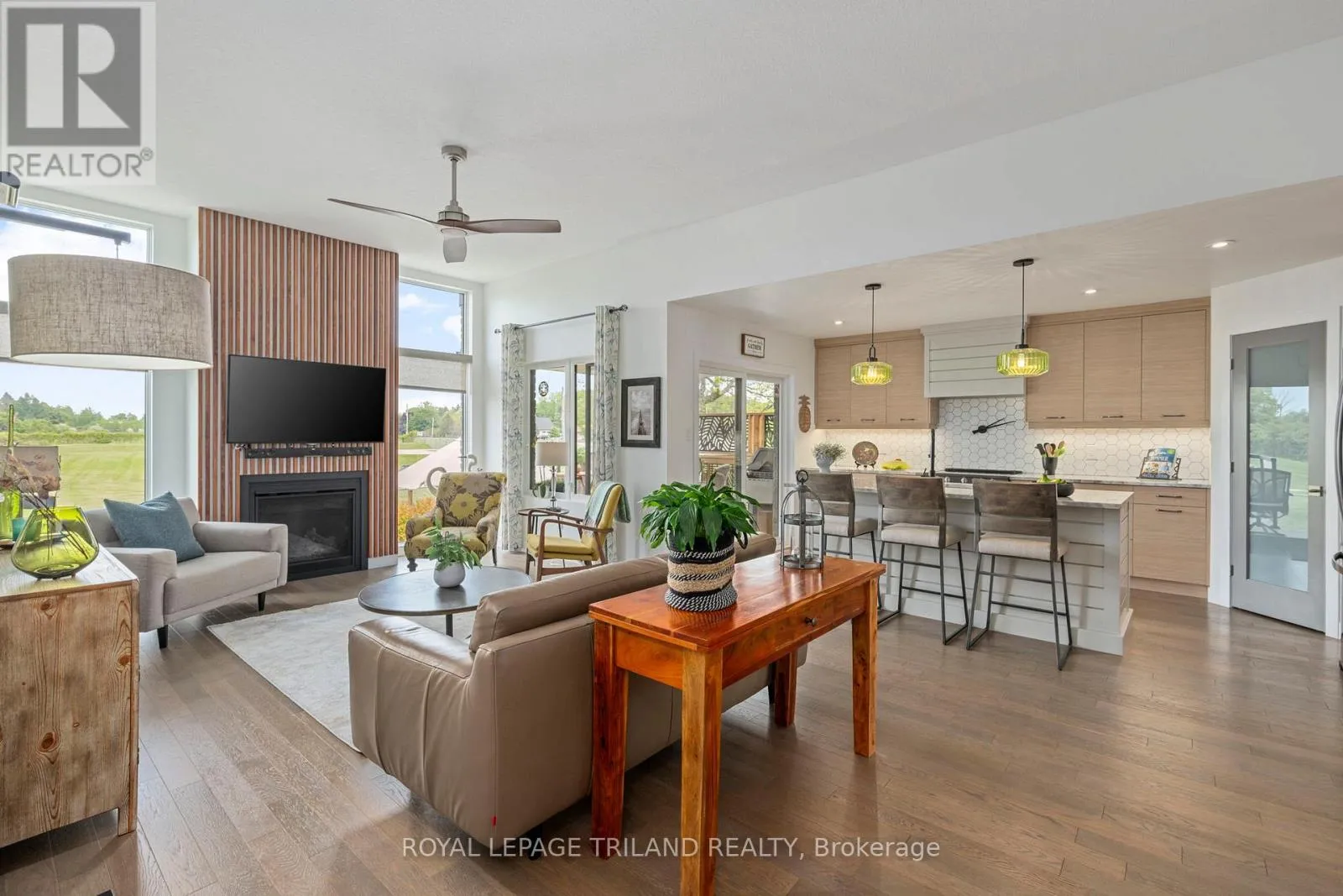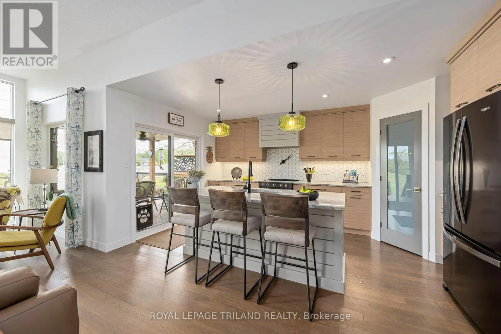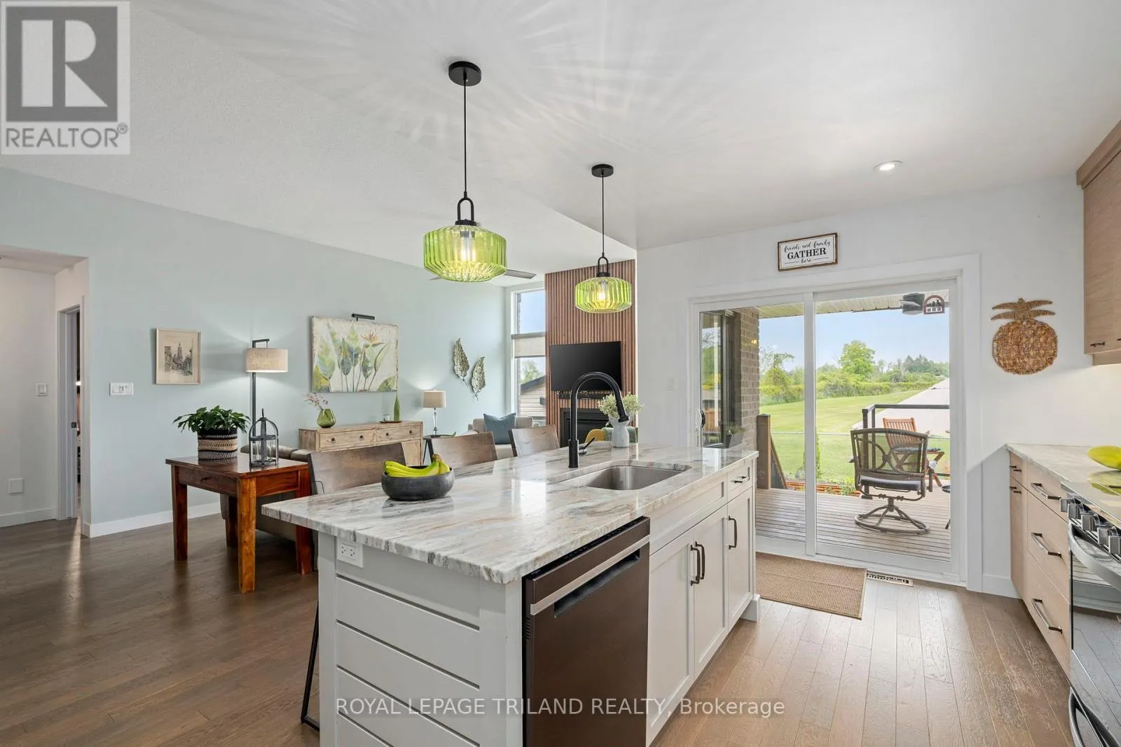 Cross Streets: East x Hill. ** Directions: East Rd to Hill to Larry to Emery. Situated on a quiet street with no rear neighbours, your new home is a 2019 built Don West bungalow that strikes the perfect balance between form and function. With its smart floor plan, carefully selected finishes, and beautifully manicured grounds, this home is anything but ordinary. Inside, the main level features 10 ft ceilings, hardwood flooring throughout, two spacious bedrooms, and a brand new custom-designed kitchen that has barely had time to see a splash of tomato sauce. The open-concept living and dining area is anchored by a stunning gas fireplace, while the primary suite impresses with a five-piece ensuite and an oversized walk-in closet built for real wardrobes, not just seasonal coats and regret purchases. Downstairs, the fully finished lower level offers high ceilings throughout, a large rec room, additional bedroom, full bath, and ample storage perfect for guests, hobbies, or a very lucky teenager. Outside, the attention to detail continues: perfectly curated landscaping including specially selected ornamental trees, a covered rear deck with glass railing, garden shed, and extensive concrete work including triple-wide parking and side steps. The fully fenced yard completes the package, offering privacy without the maintenance headaches. Built just a few years ago and immaculately kept, this home offers turnkey living in one of Port Stanley's most desirable enclaves: close to the lake, yet comfortably tucked away from the noise. (id:27476)